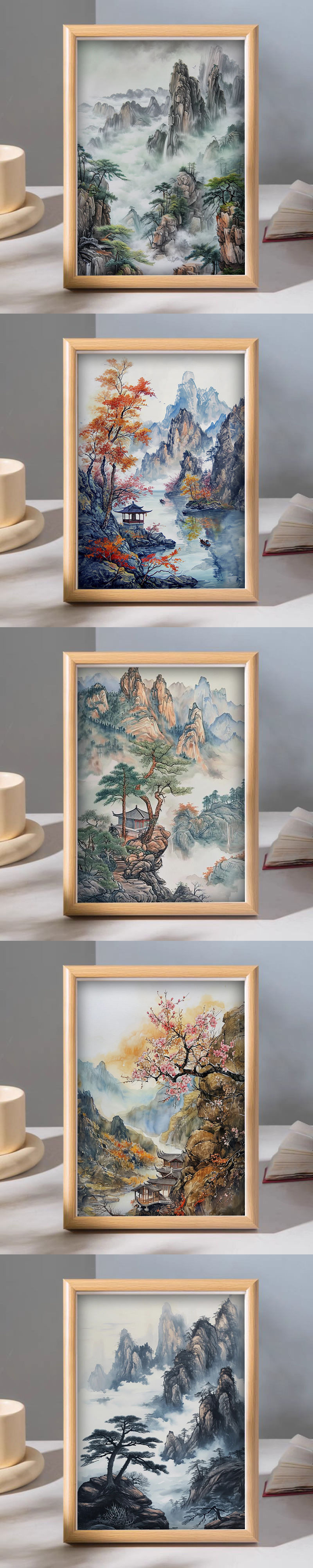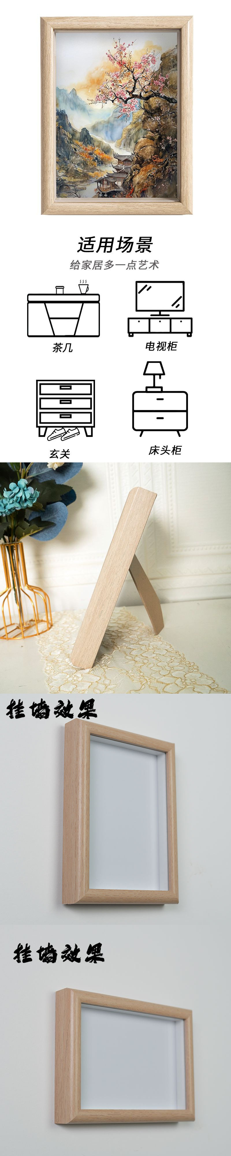 Chinese Style Ink Painting Desktop Ornaments Wooden Photo Frame Freehand Landscape Decoration Gift