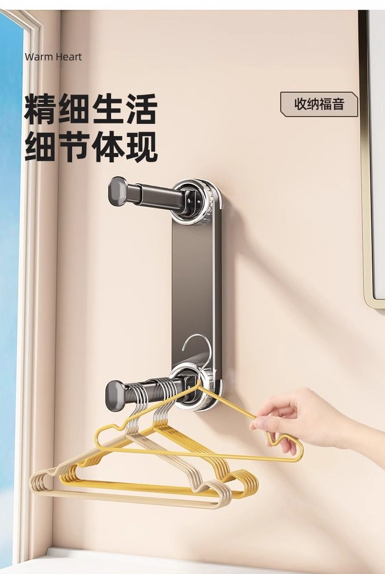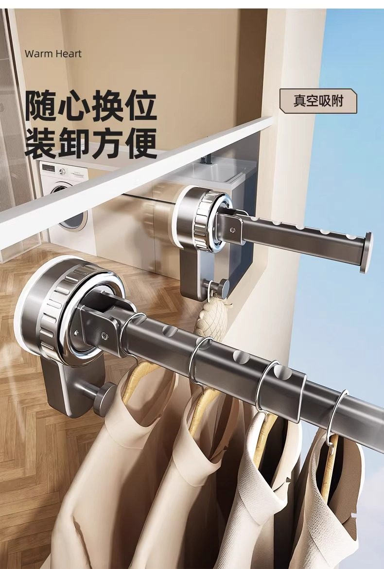 Suction Cup Clothes Hanger Storage Household Clothes Hanger Punch-Free Storage Rack Balcony Wall Wall-Mounted Telescopic Hanging Rod Plastic