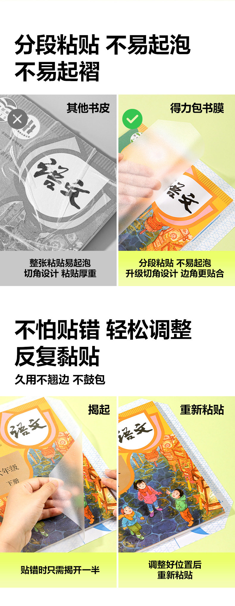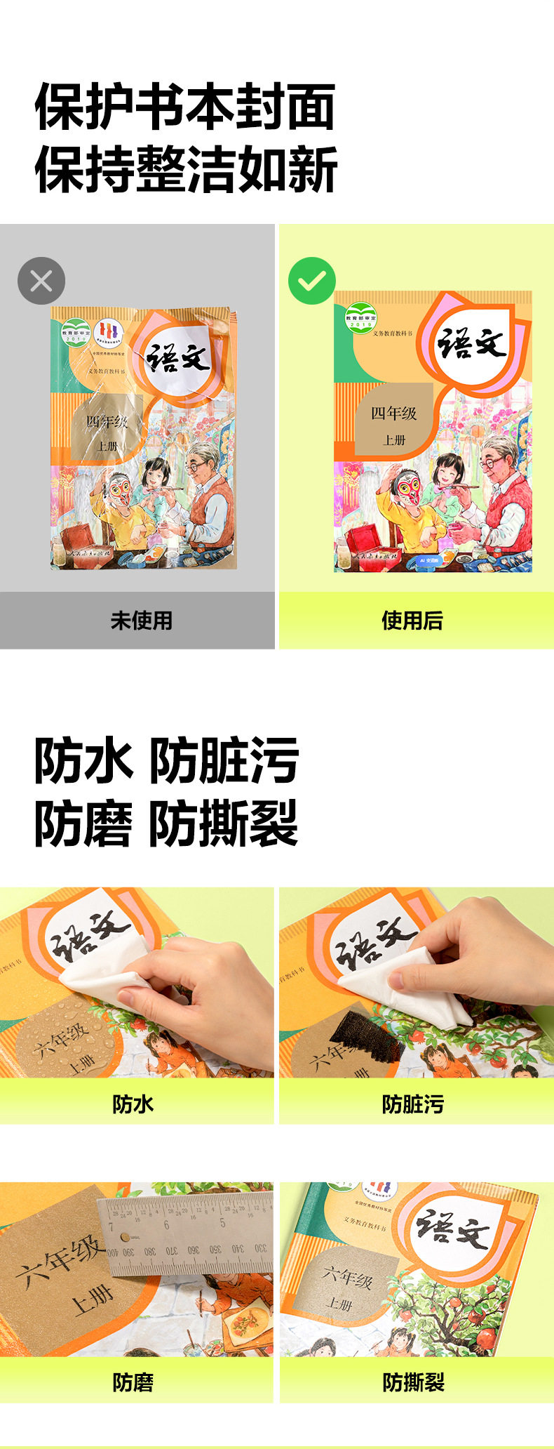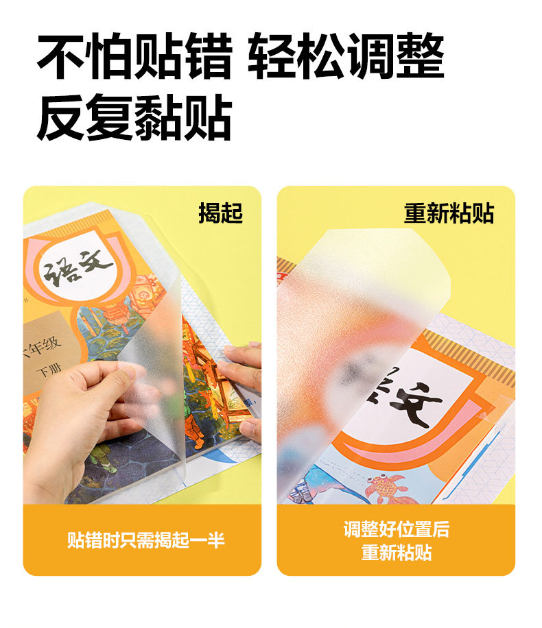 | Book wrapping film, essential for starting school | Transparent frosted high-definition segmented book cover, self-adhesive book cover, protective book cover, book corner anti-curling, wrinkle-proof, tear-proof, waterproof and dirt-proof, primary school students, student supplies |
