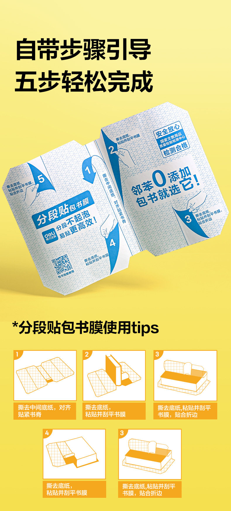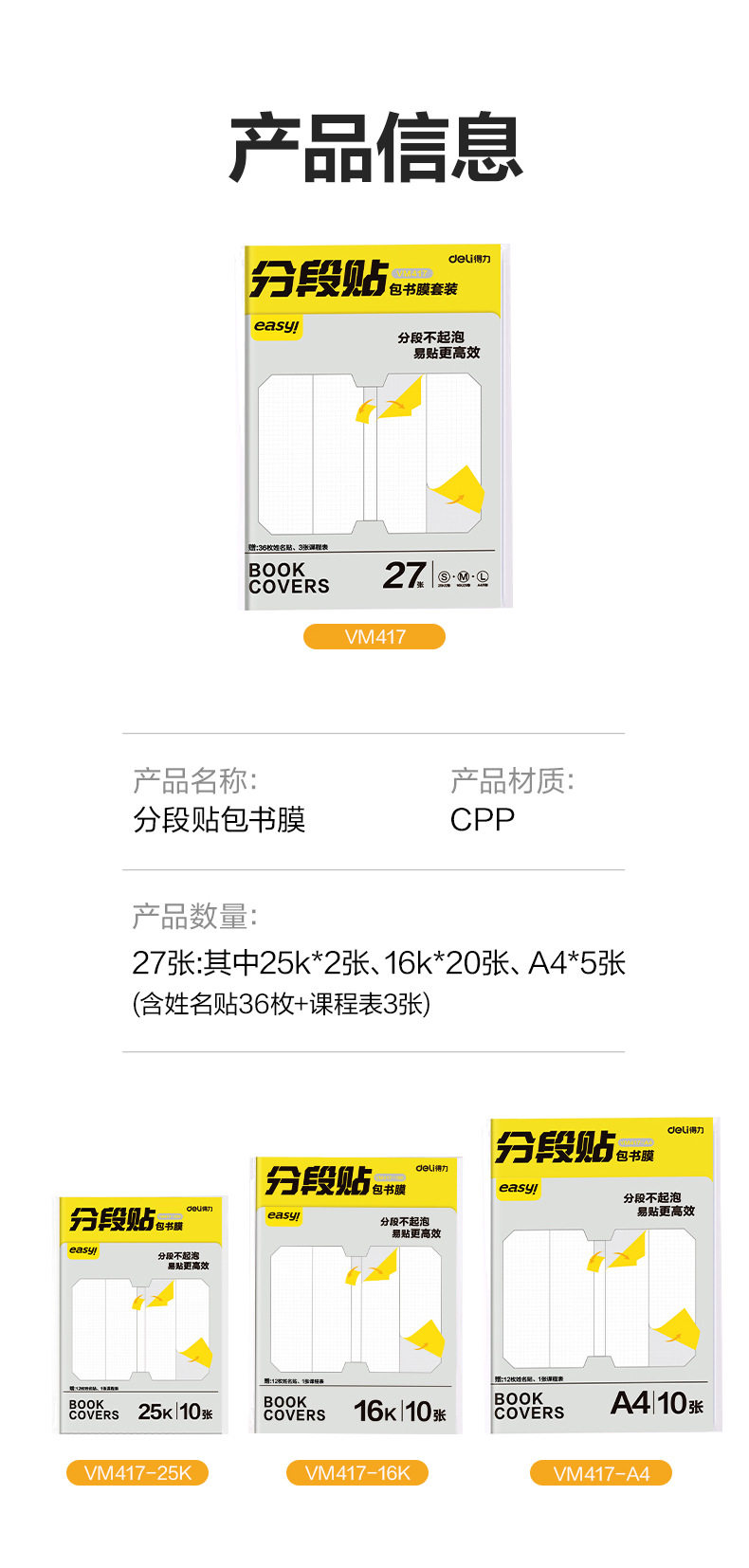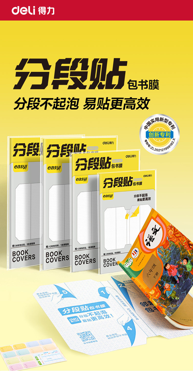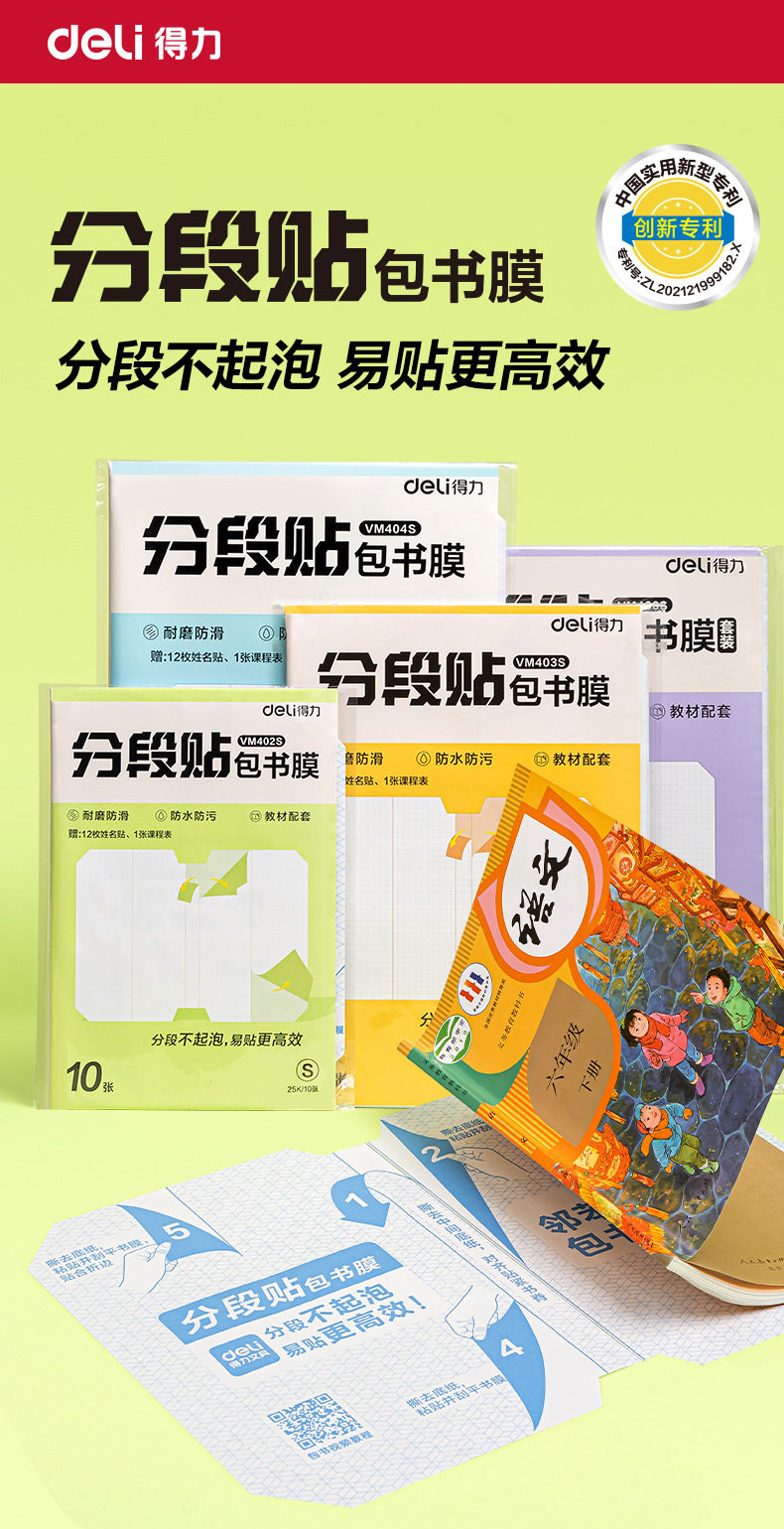 Deli Segmented Book Cover, Book Film, Book Cover Protective Cover, Self-Adhesive Book Cover, Waterproof and Anti-Dirty 25K/16K/A4