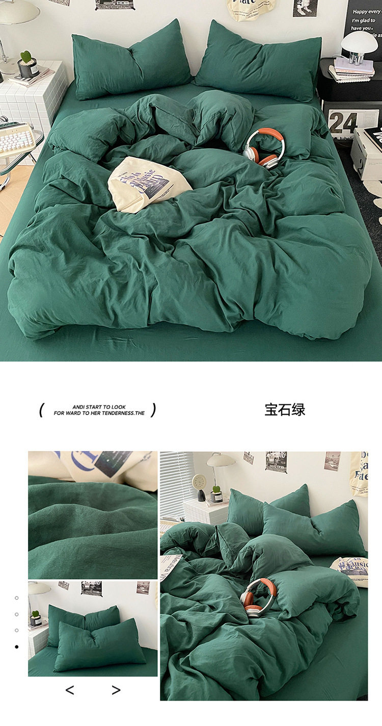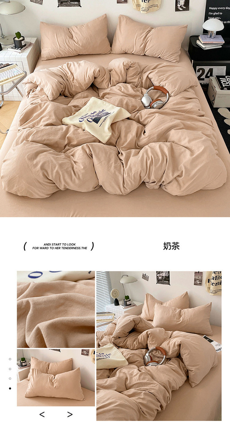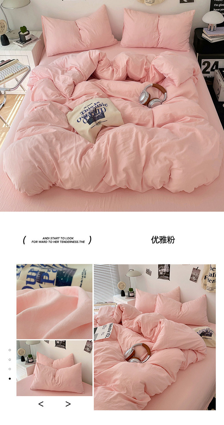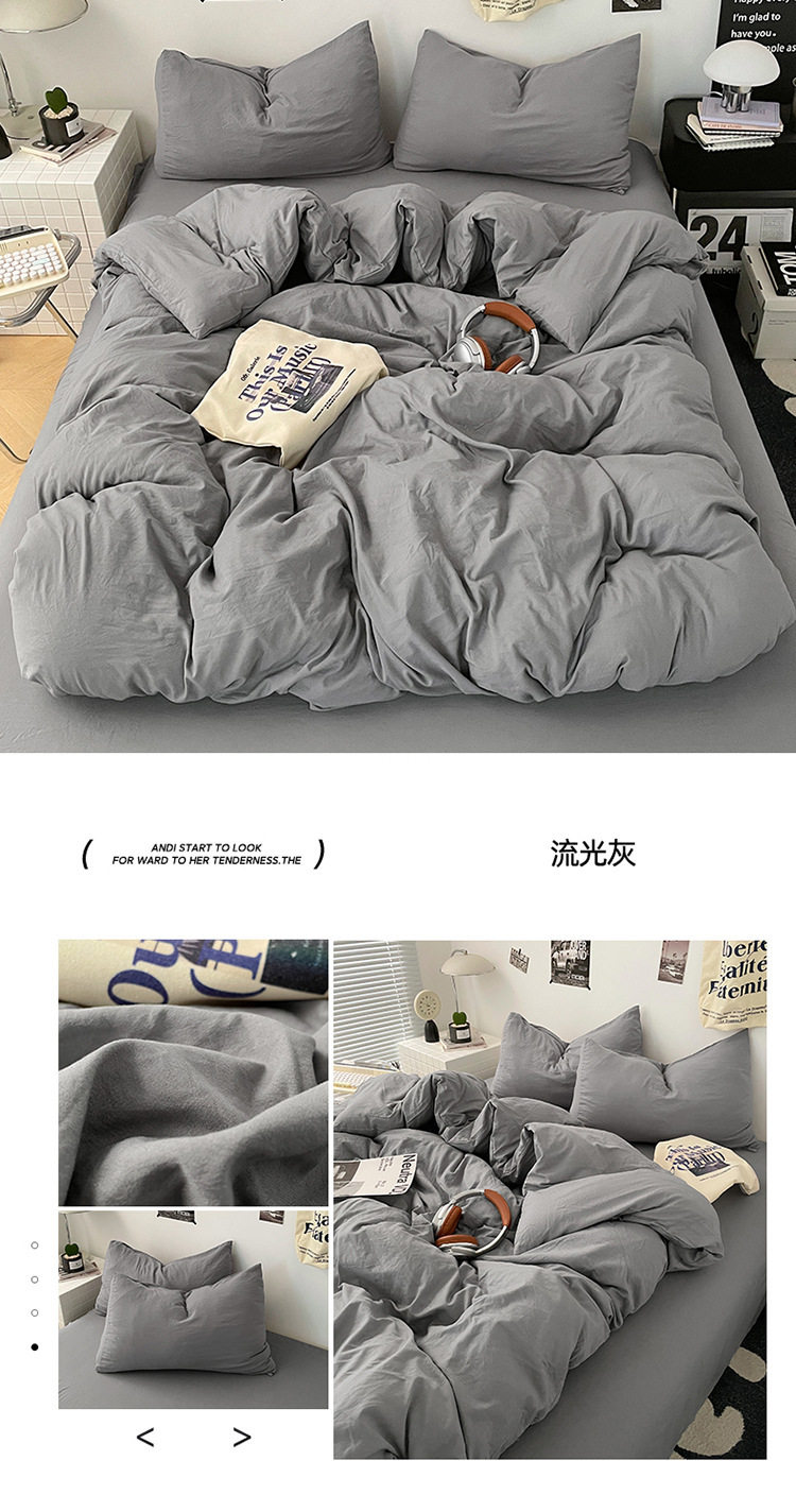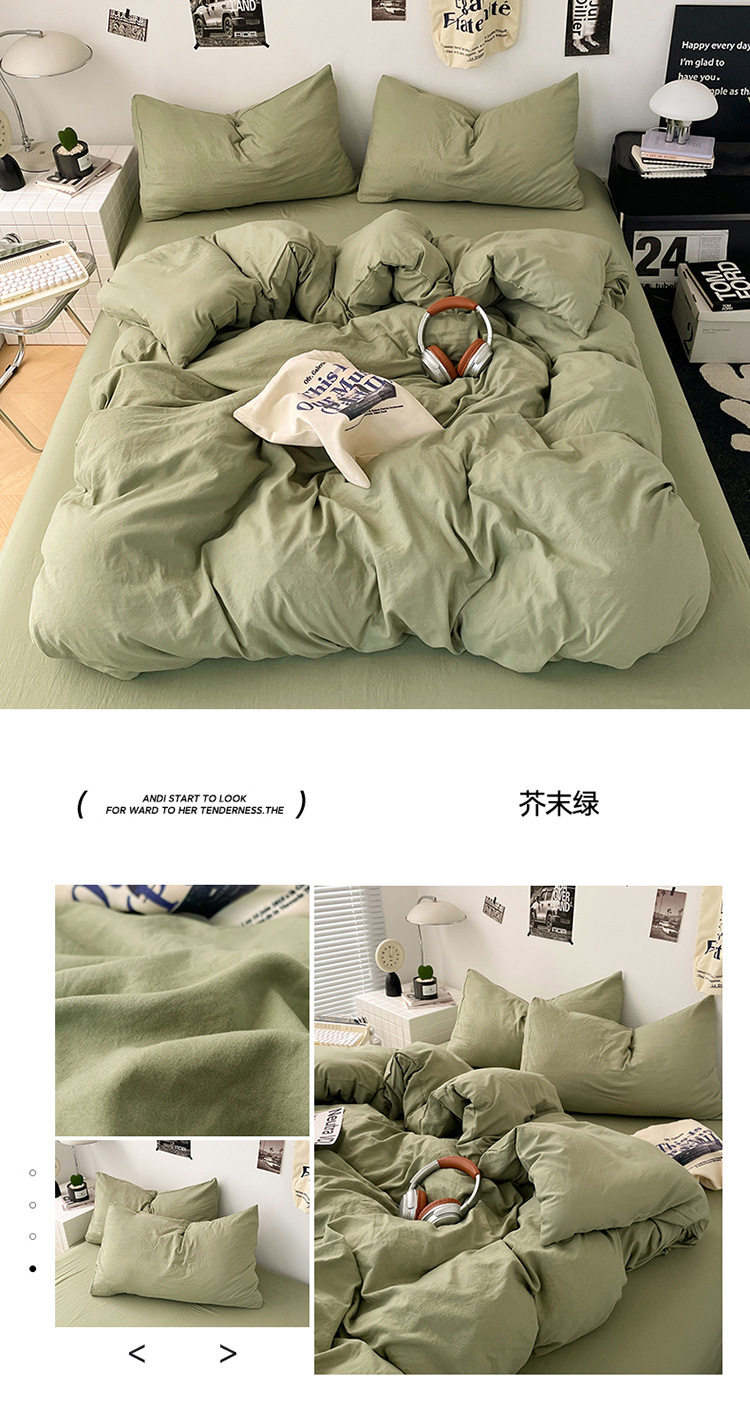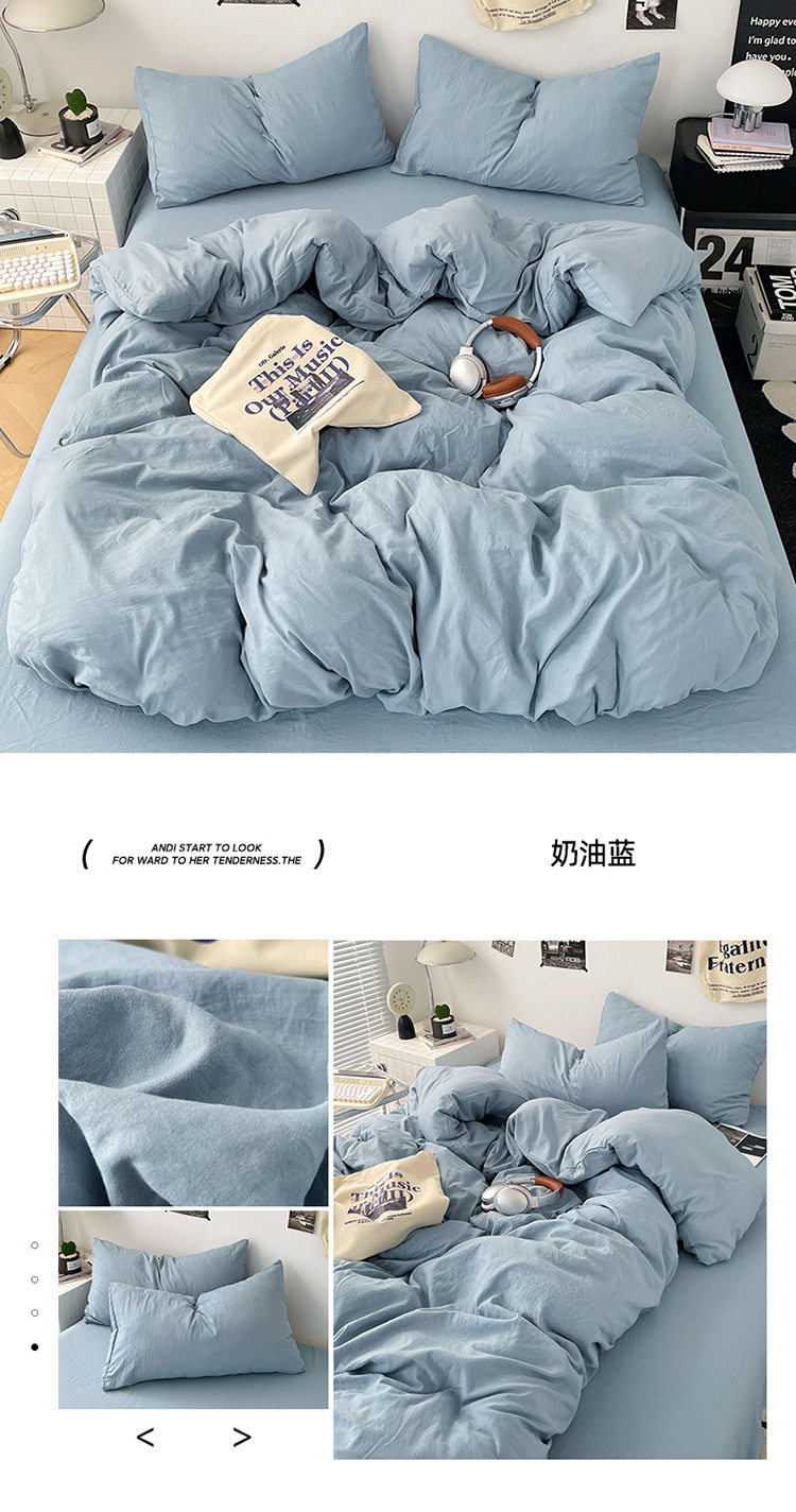 Ins Style Naked Sleeping Pure Cotton Four-Piece Set Class a Washed Cotton Pure Color Double Quilt Cover Bed Sheet Student Dormitory Three-Piece Set