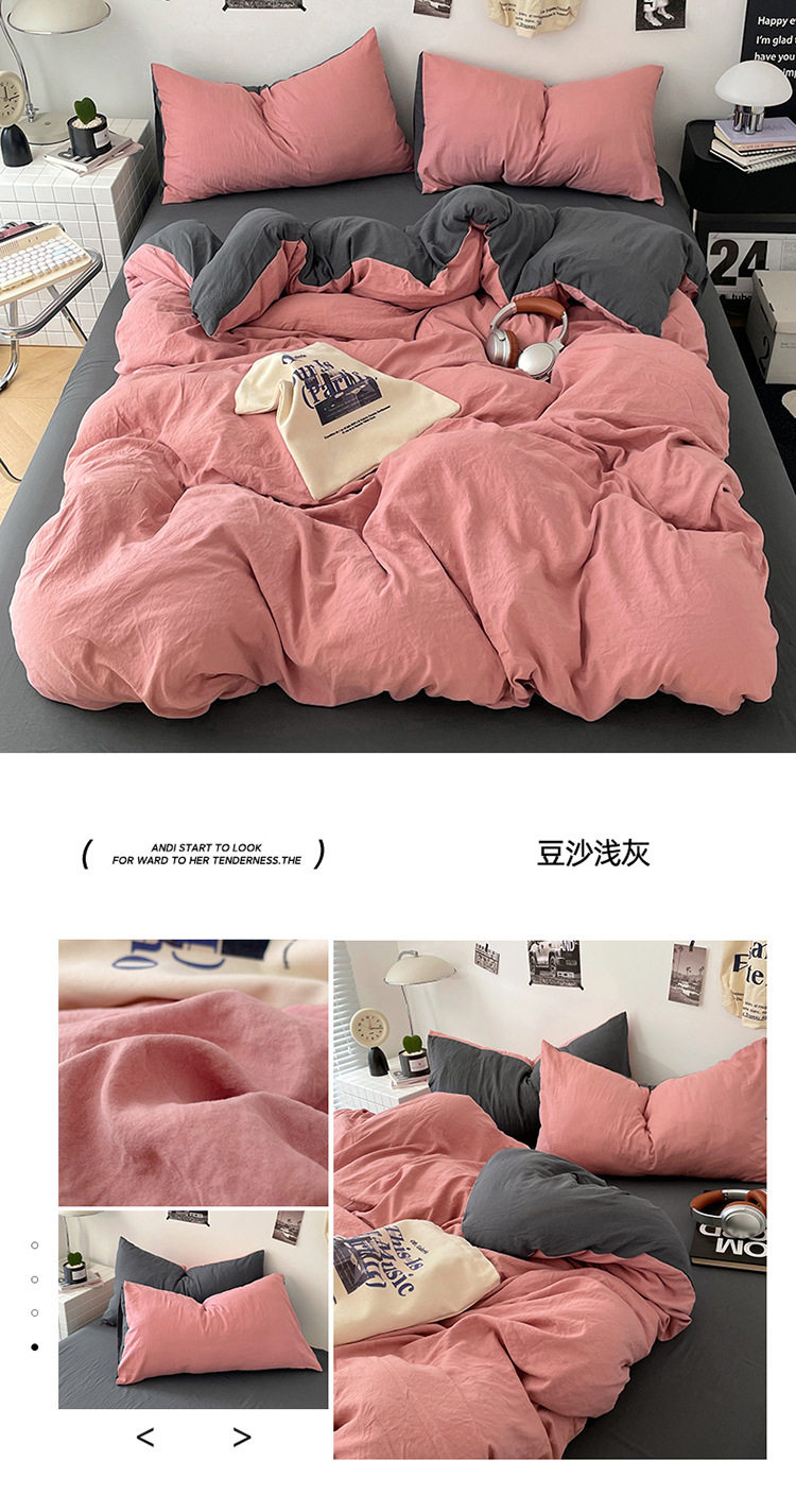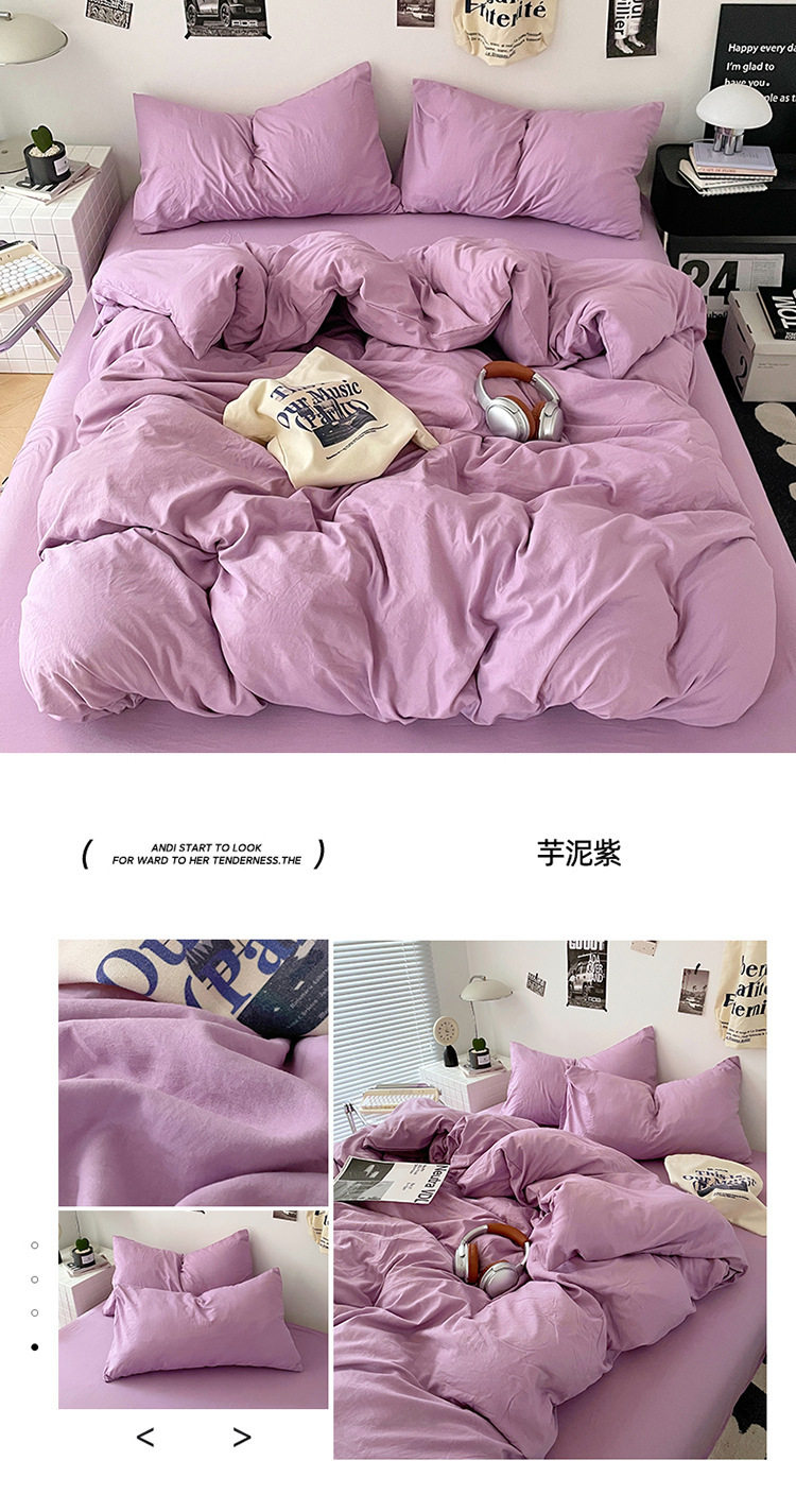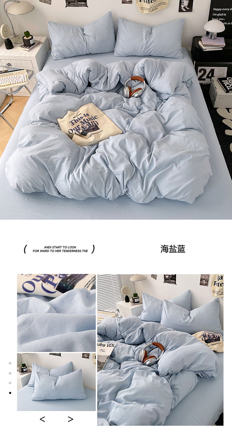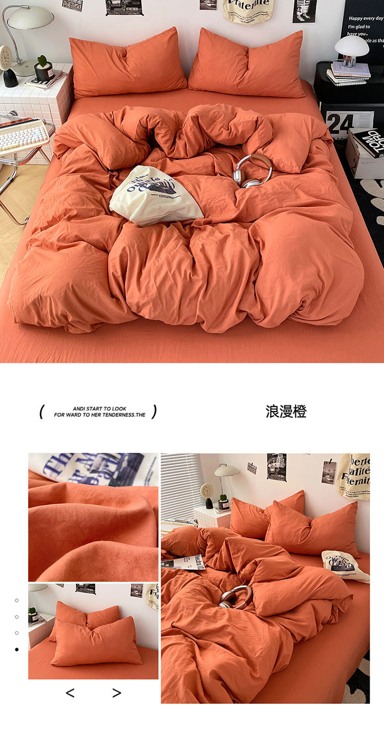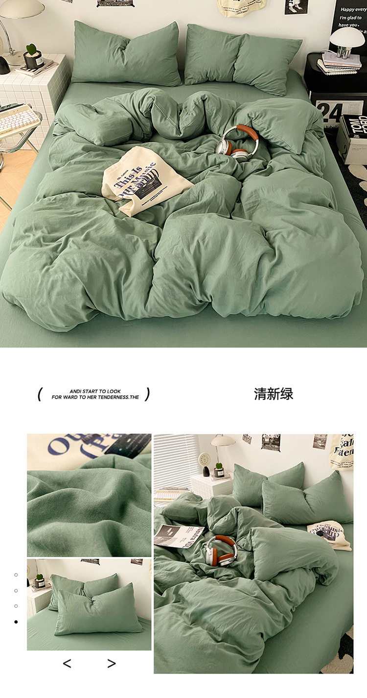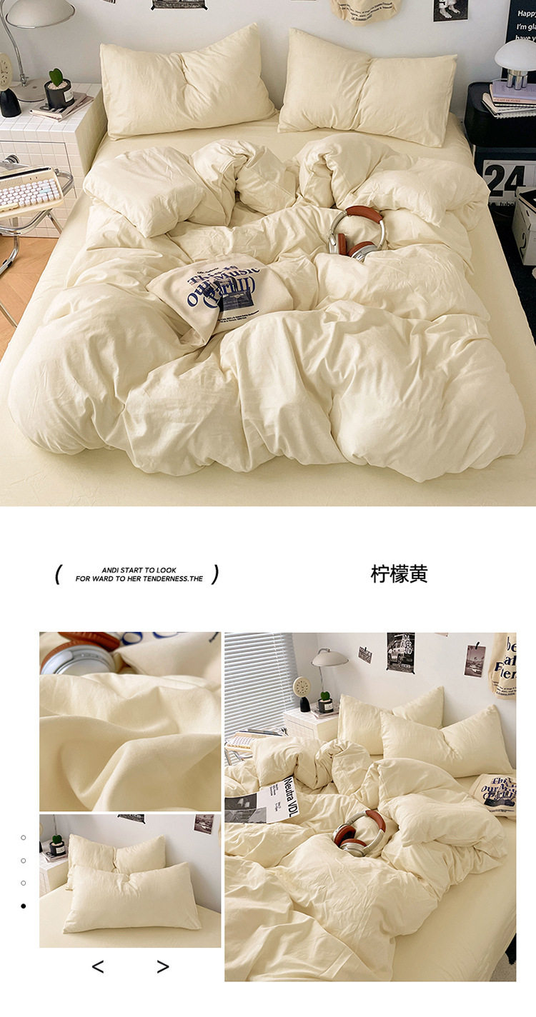 Ins Style Naked Sleeping Pure Cotton Four-Piece Set Class a Washed Cotton Pure Color Double Quilt Cover Bed Sheet Student Dormitory Three-Piece Set