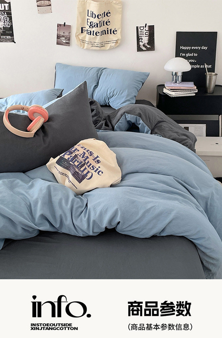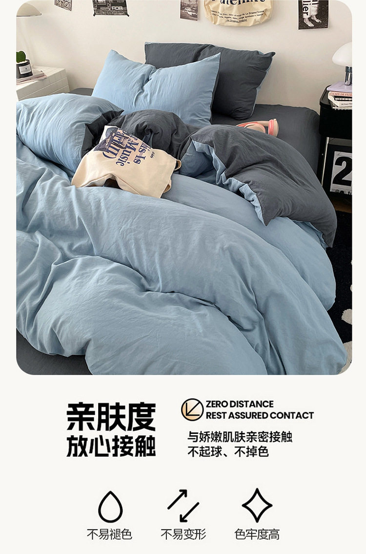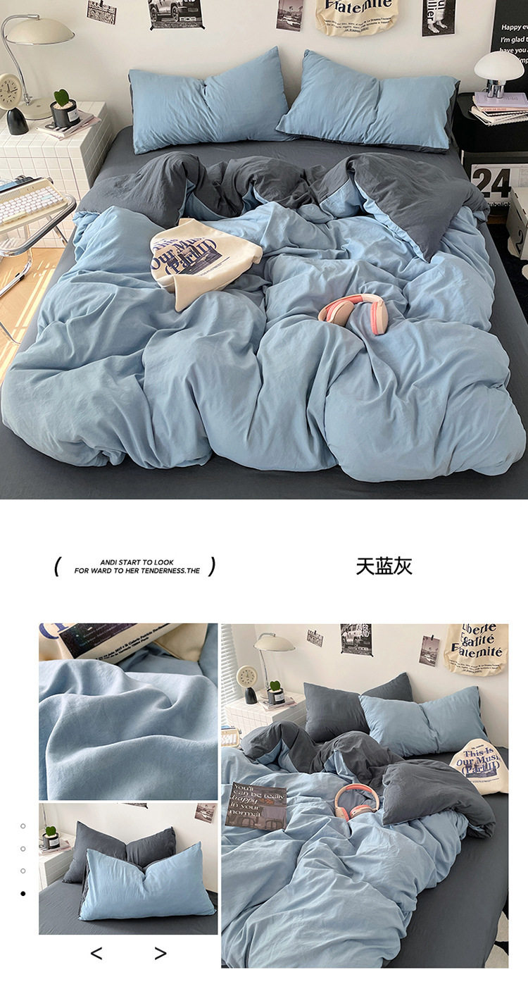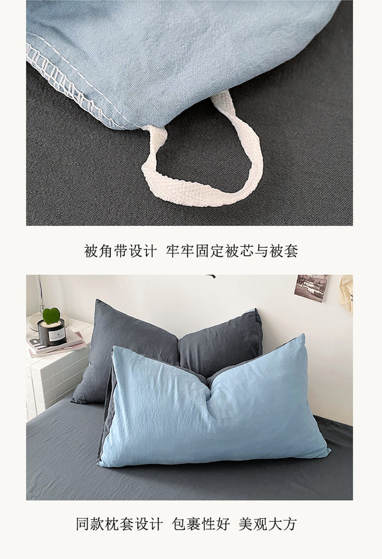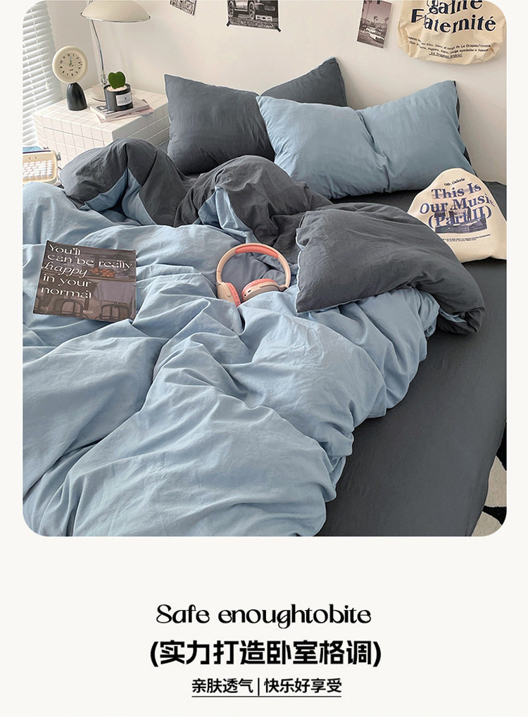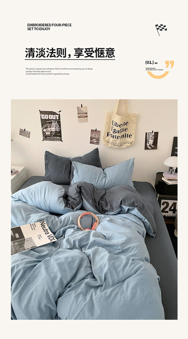 Ins Style Naked Sleeping Pure Cotton Four-Piece Set Class a Washed Cotton Pure Color Double Quilt Cover Bed Sheet Student Dormitory Three-Piece Set