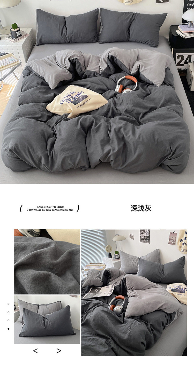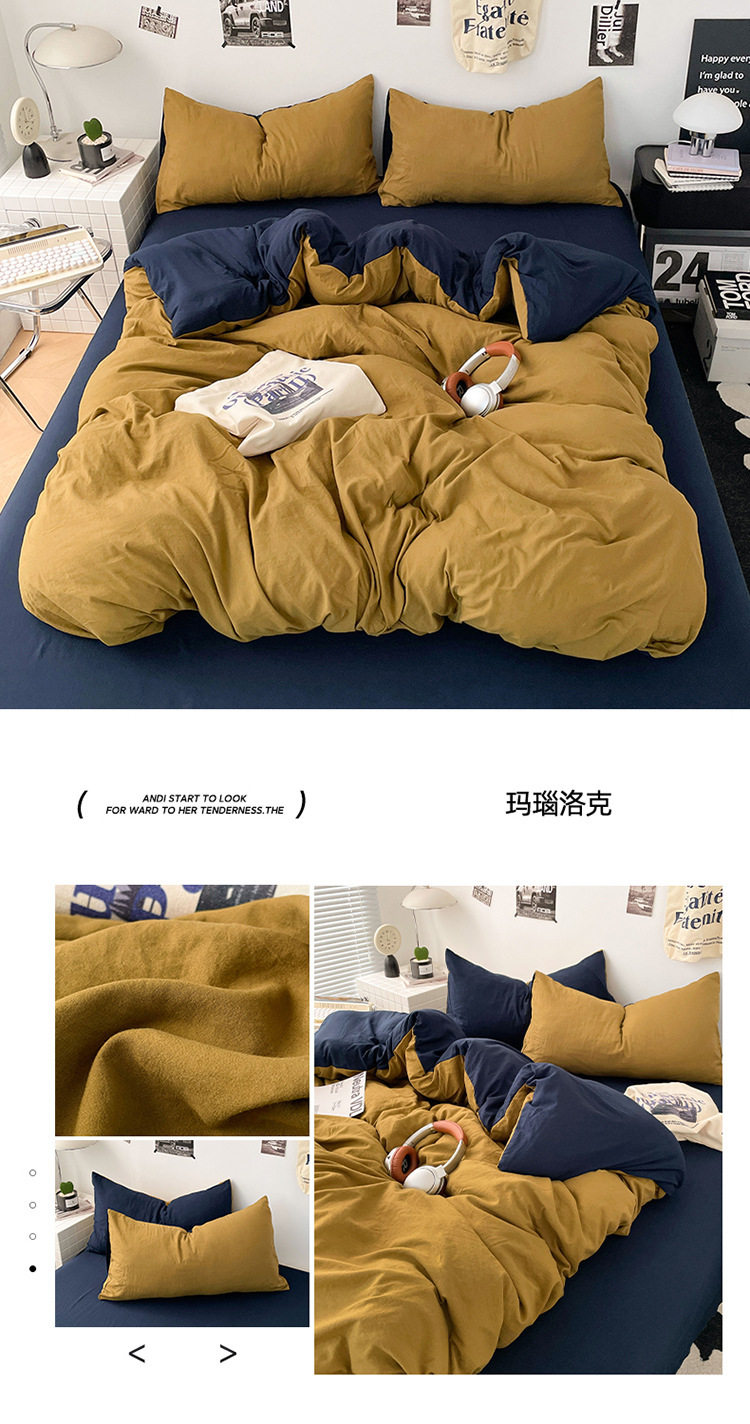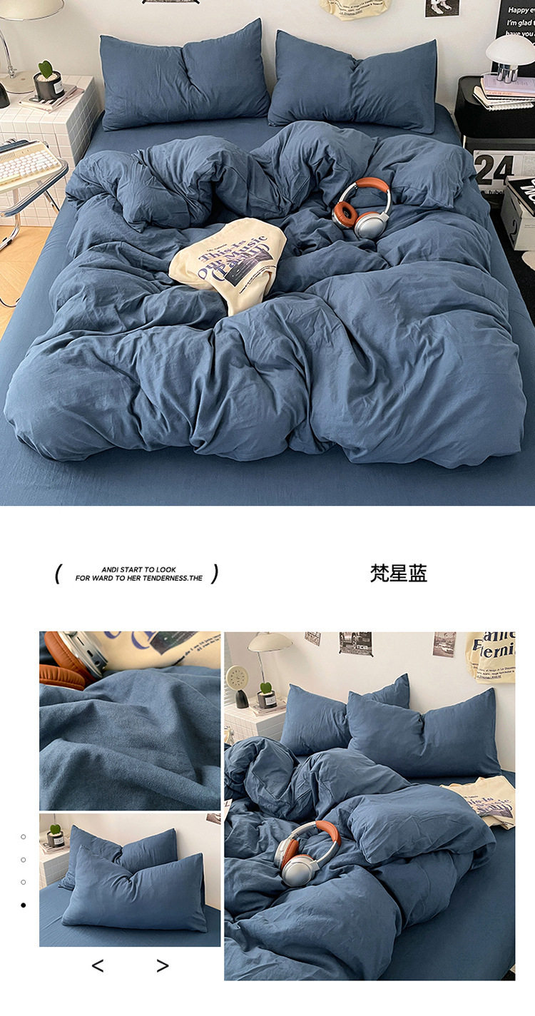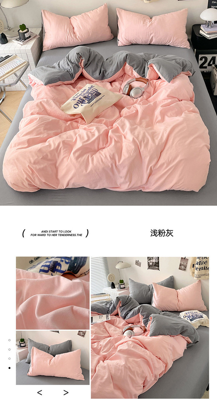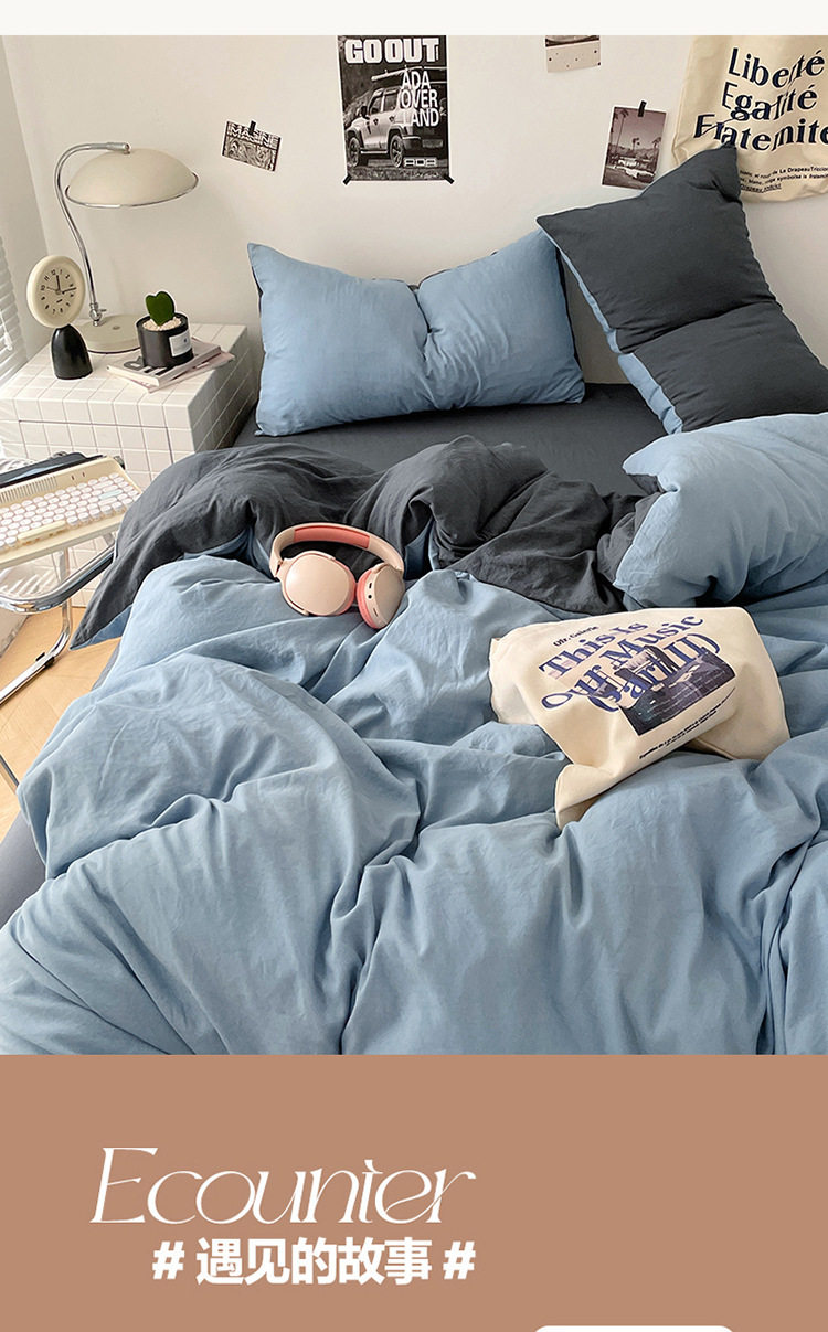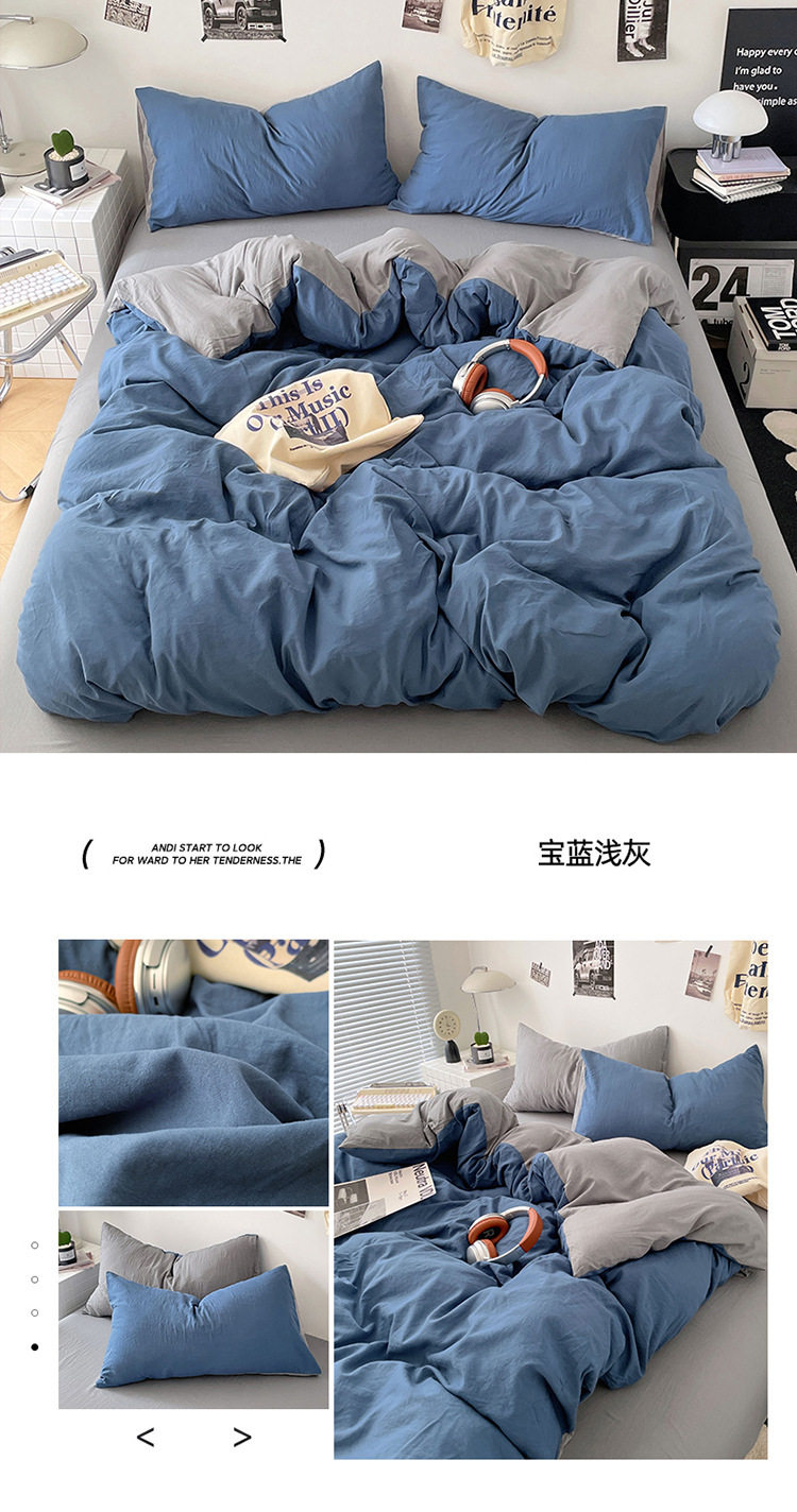 Ins Style Naked Sleeping Pure Cotton Four-Piece Set Class a Washed Cotton Pure Color Double Quilt Cover Bed Sheet Student Dormitory Three-Piece Set