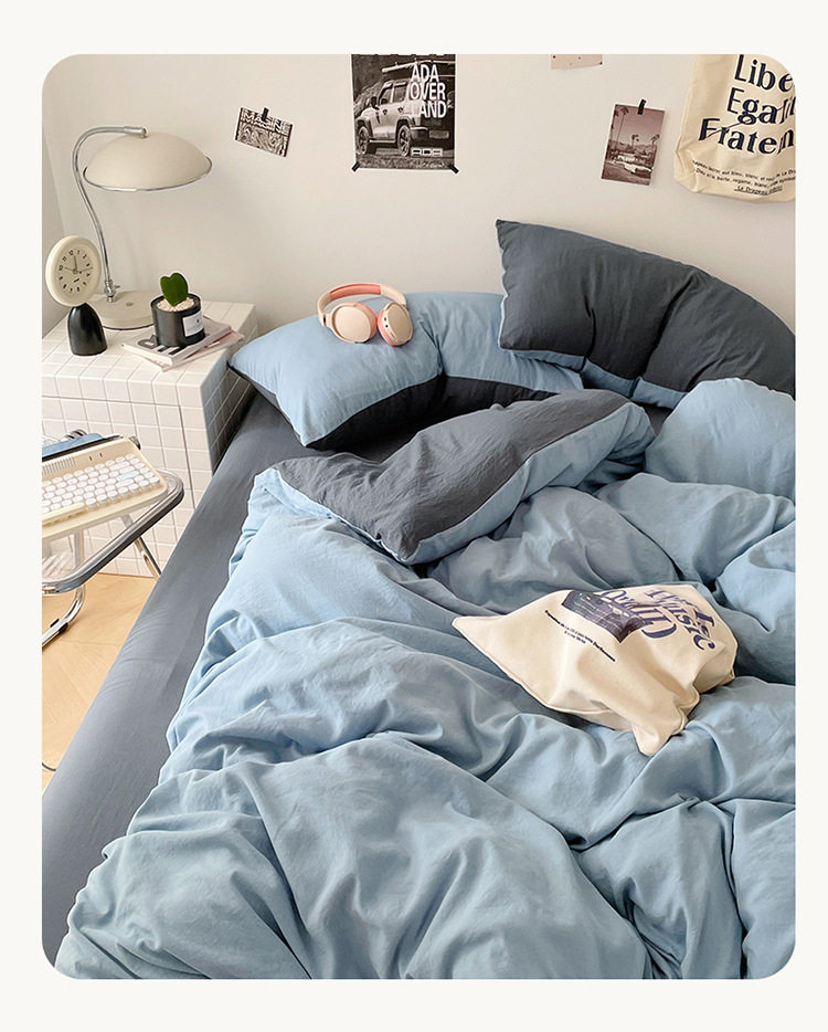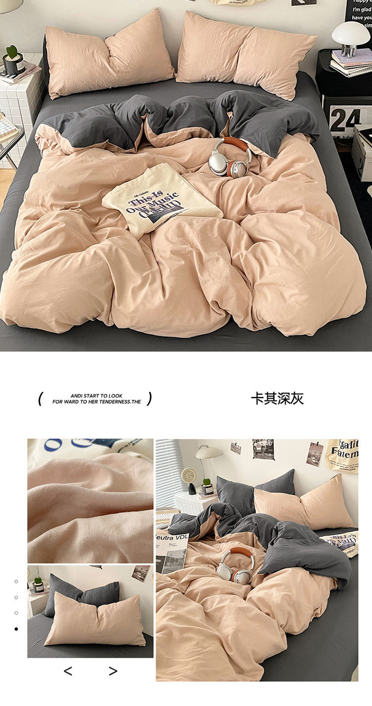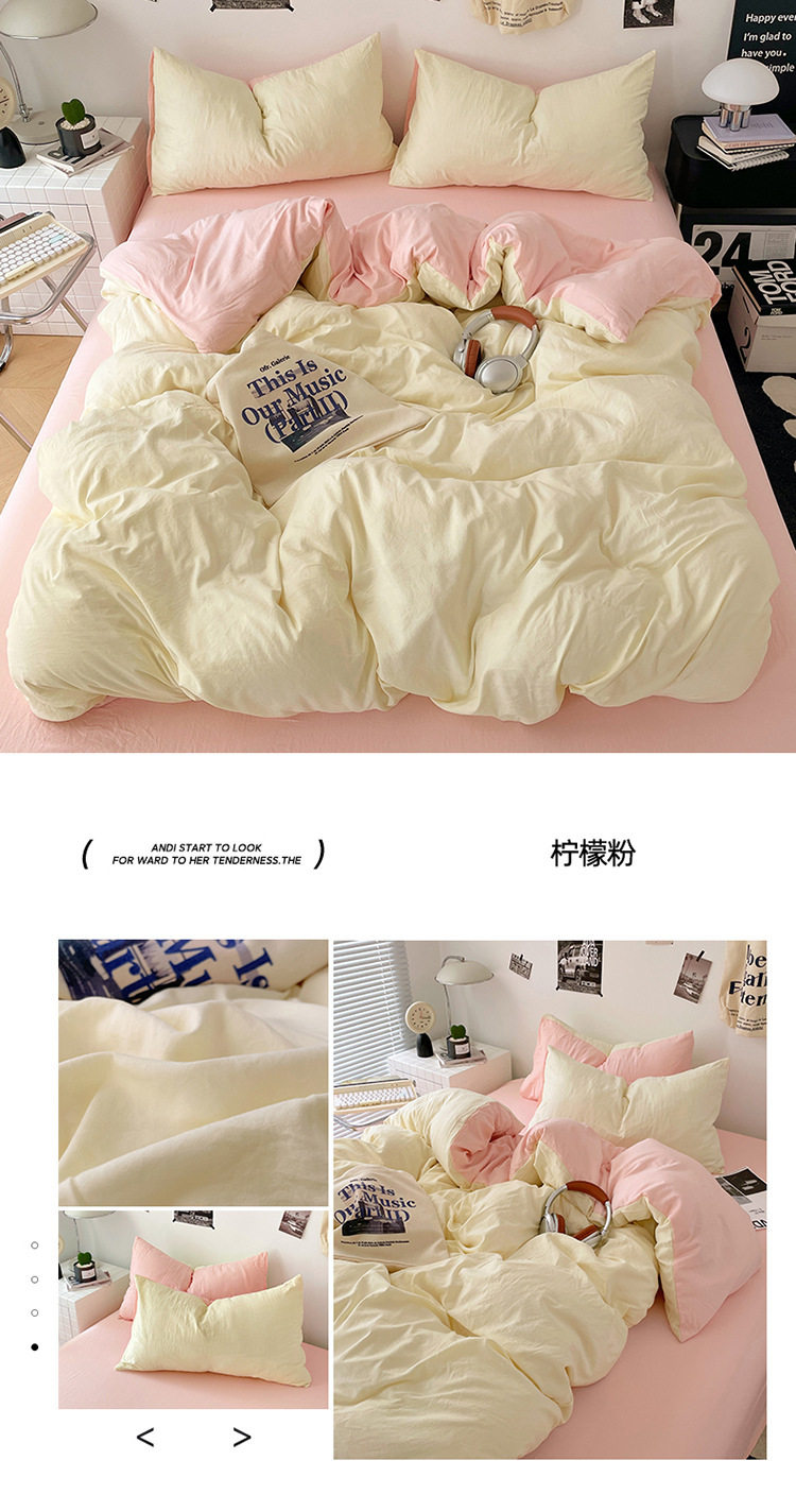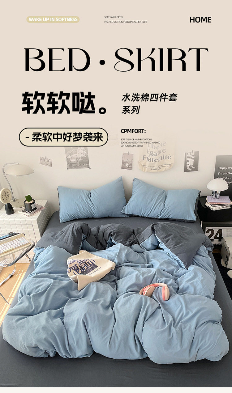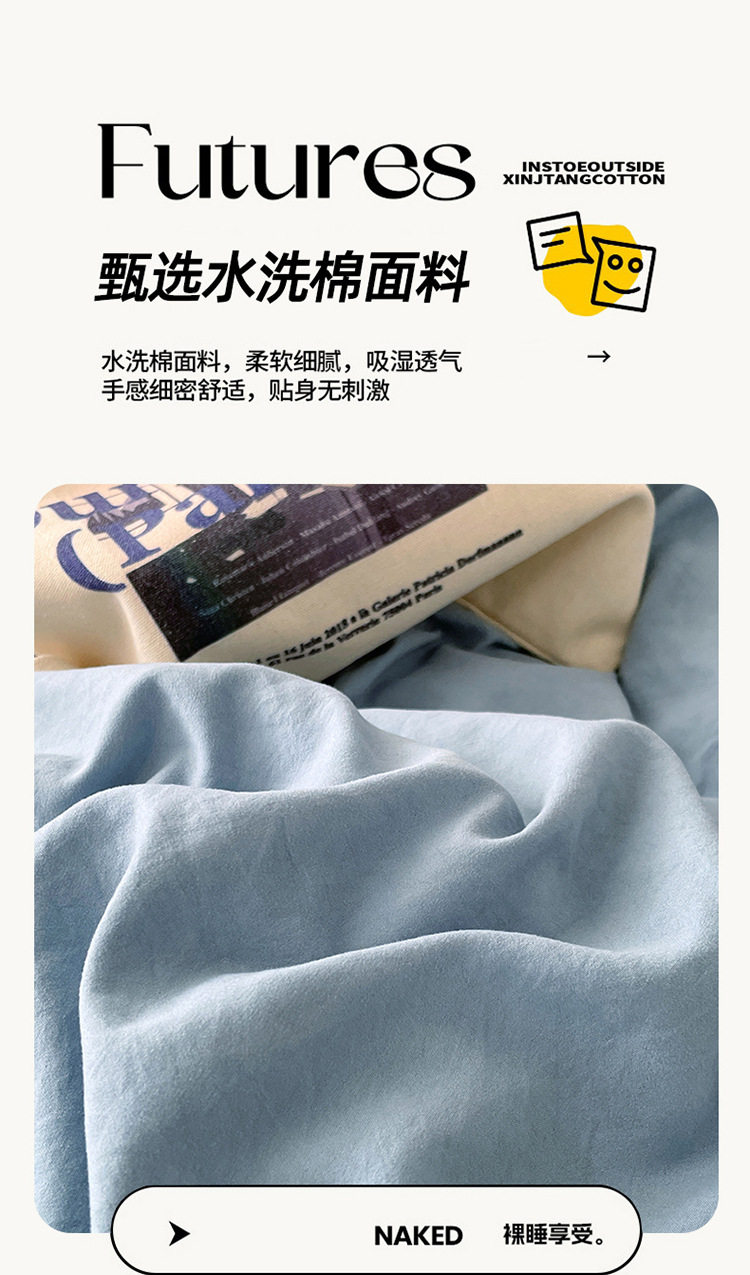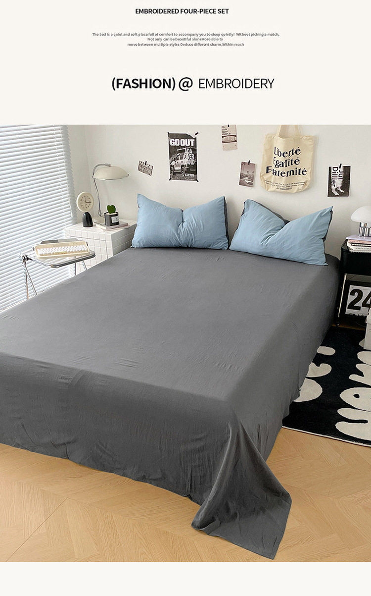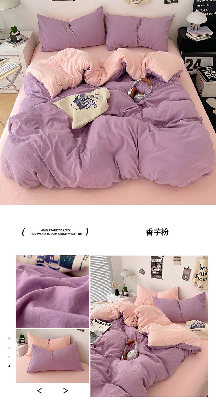 Ins Style Naked Sleeping Pure Cotton Four-Piece Set Class a Washed Cotton Pure Color Double Quilt Cover Bed Sheet Student Dormitory Three-Piece Set