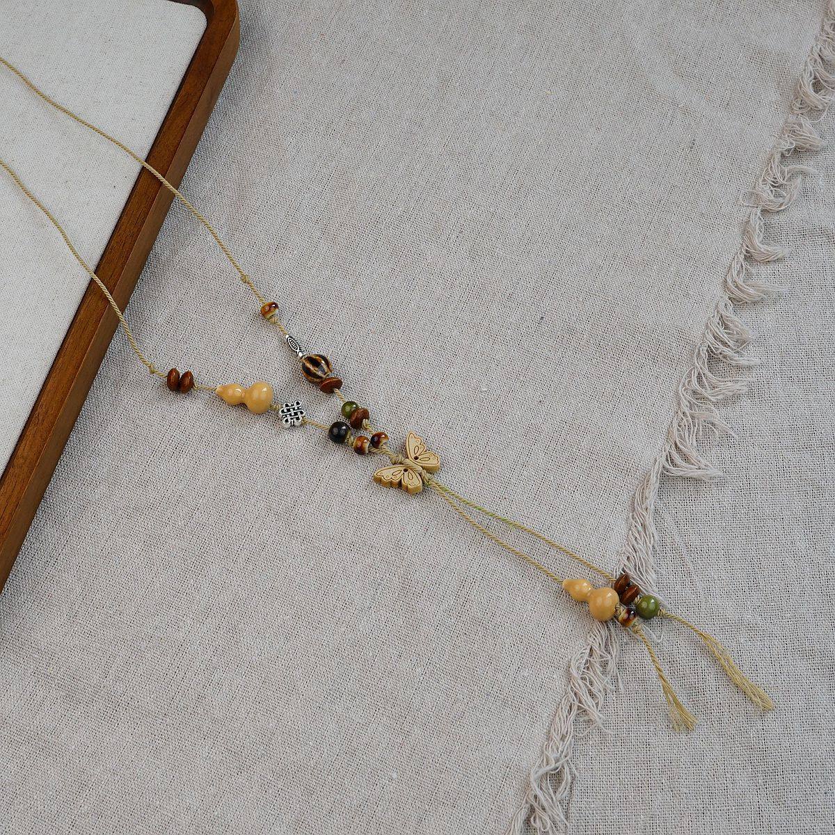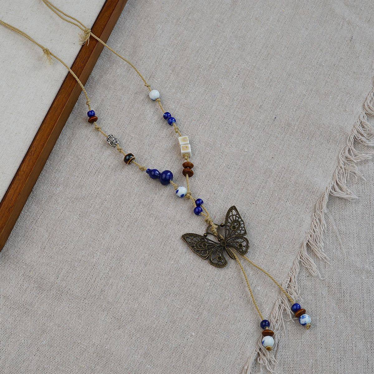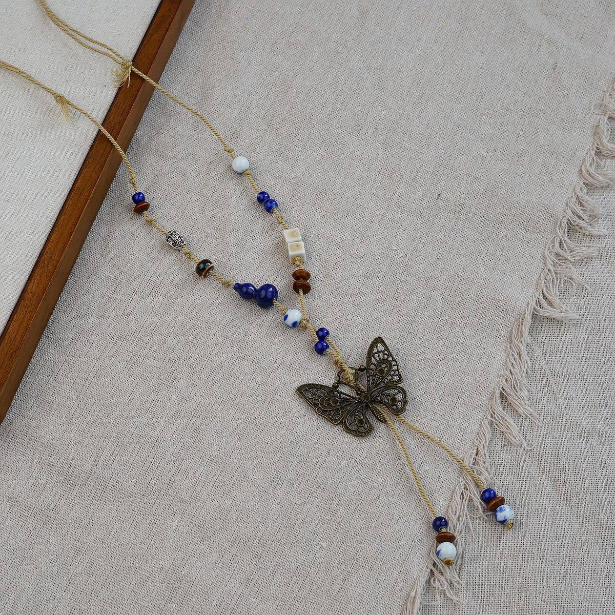 Jingdezhen Ceramic Necklace Ethnic Style Butterfly Style Antique Style Clavicle Chain Accessories Retro Matchinging Long Style Wholesale