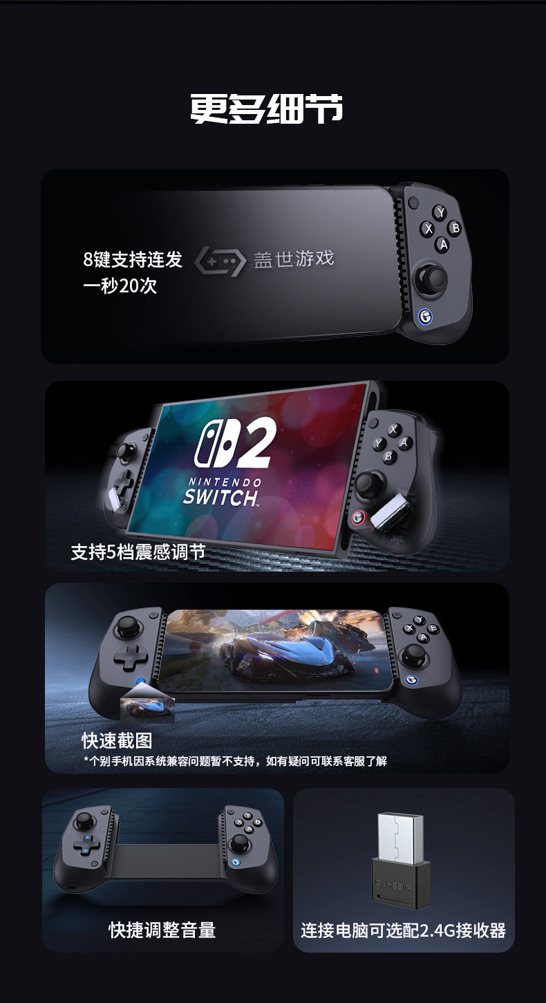 Unparalleled Little Chicken X5S Stretchable Game Controller Hd Vibration Hall Joystick Trigger Bluetooth Android Multi-Platform Compatible