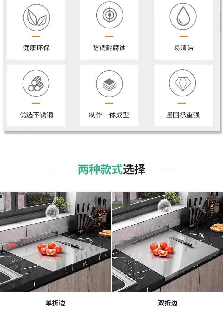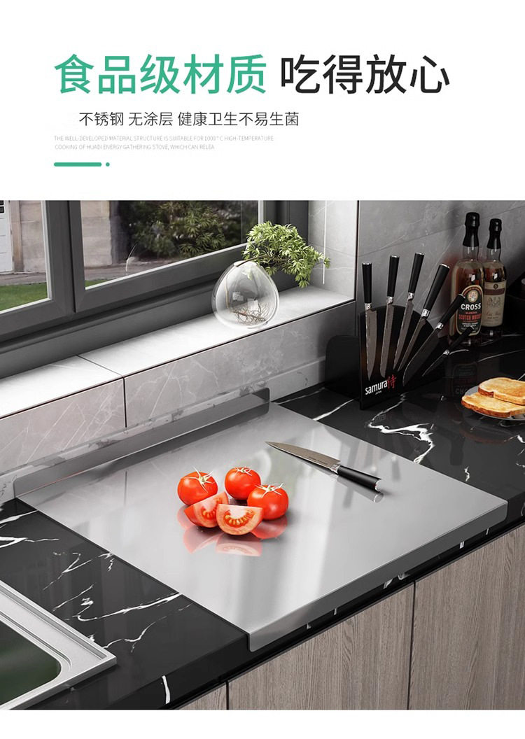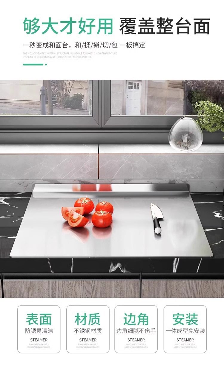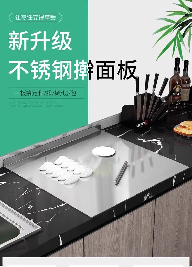 Stainless Steel Panel Cutting Board and Dough Rolling Panel Household Kitchen Cutting Board Fruit Chopping Board Antibacterial Thick Chopping Board