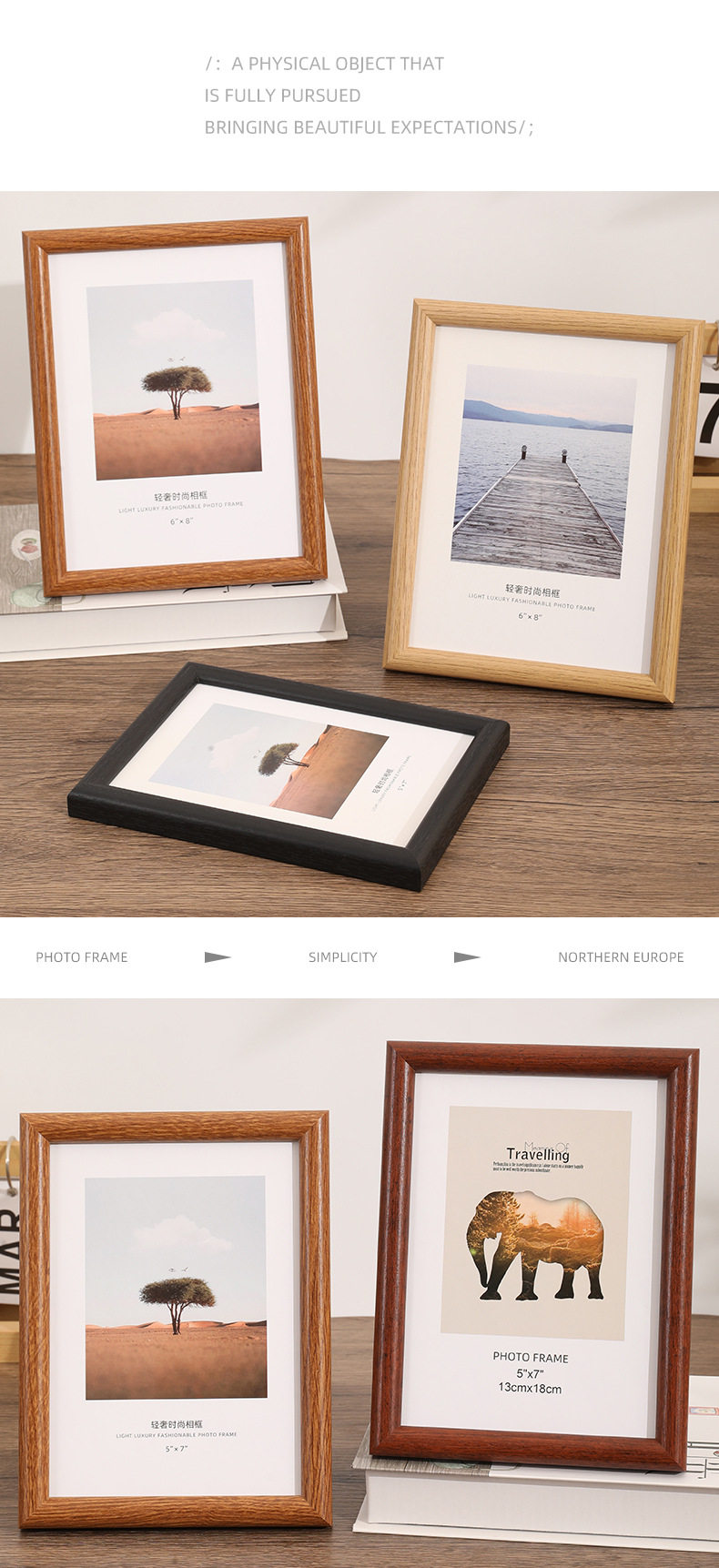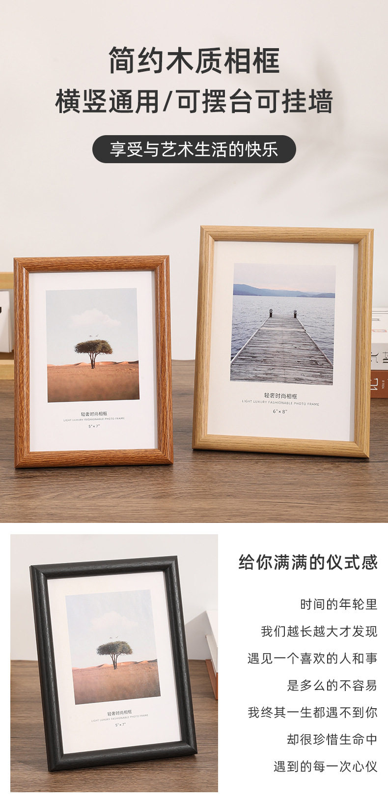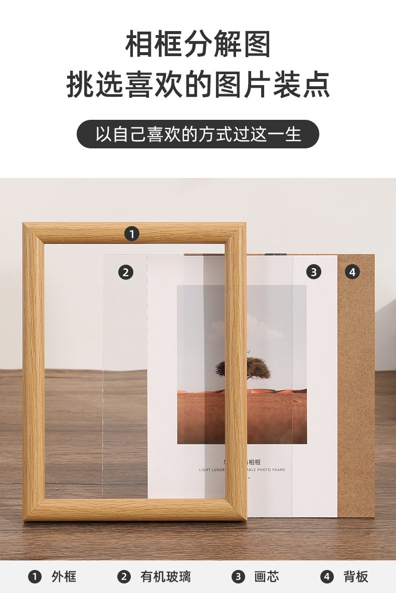 Photo Frame 6inch Empty Frame Display Stand with a High-End Feel 10inch A4 Creative Simple Arc-Shaped Wooden Puzzle Picture Frame