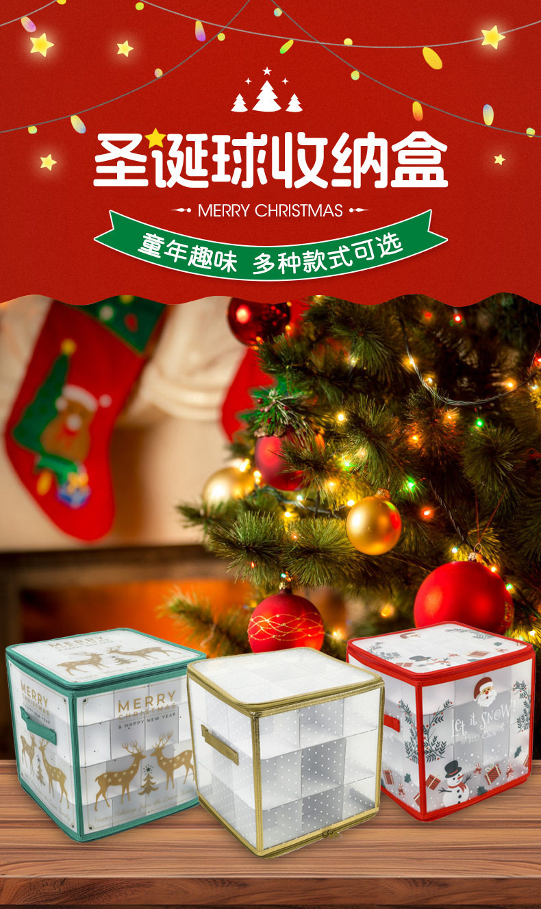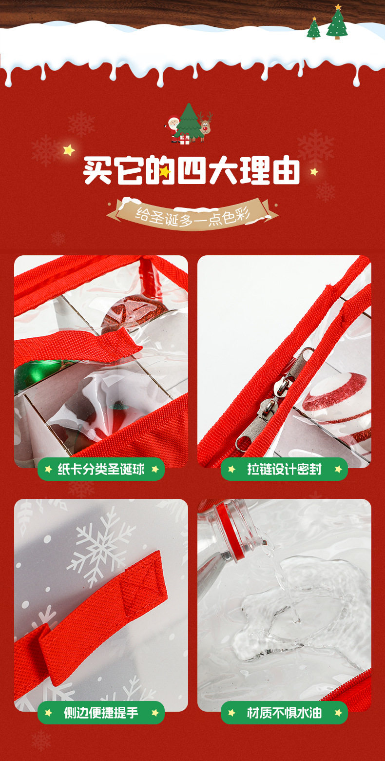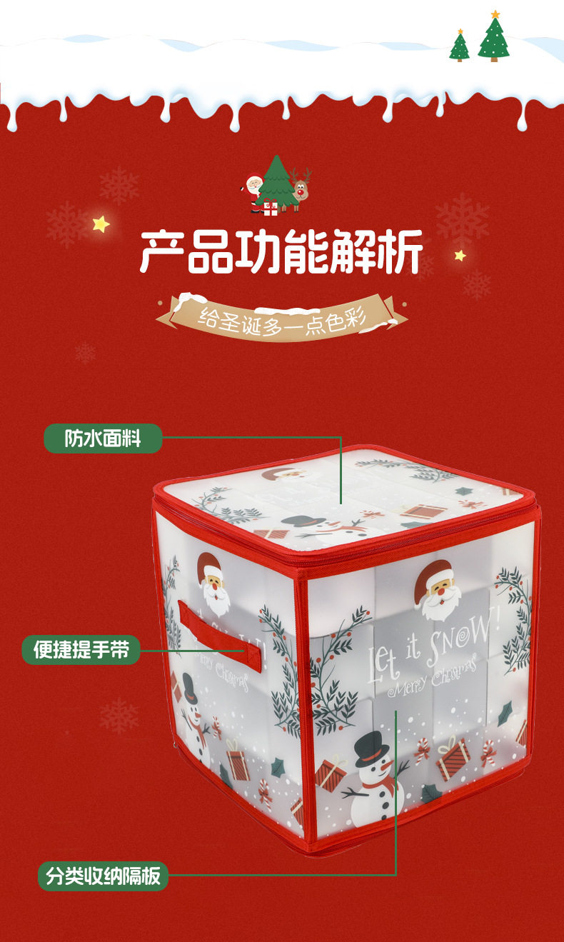 Christmas Ball Storage Box with Zipper Closure 64 Compartments Christmas Decoration Storage Box Red Storage Bag