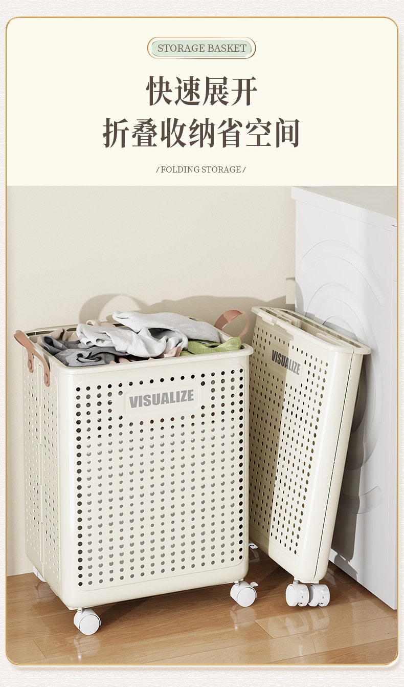 Foldable Dirty Clothes Basket Cart Storage Dirty Clothes Basket Large Capacity Household Bathroom Bathroom Dirty Clothes Storage Basket