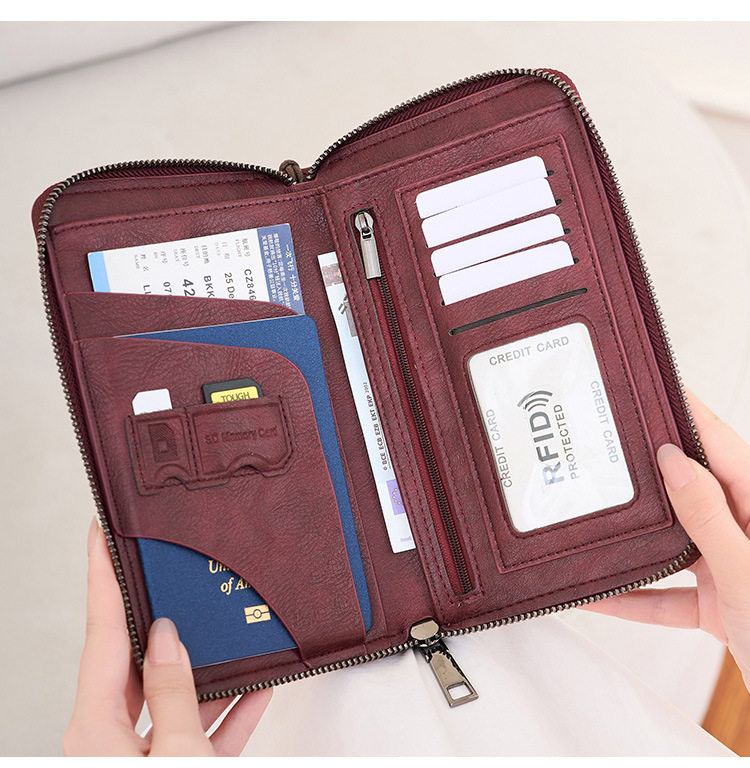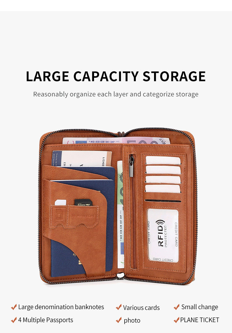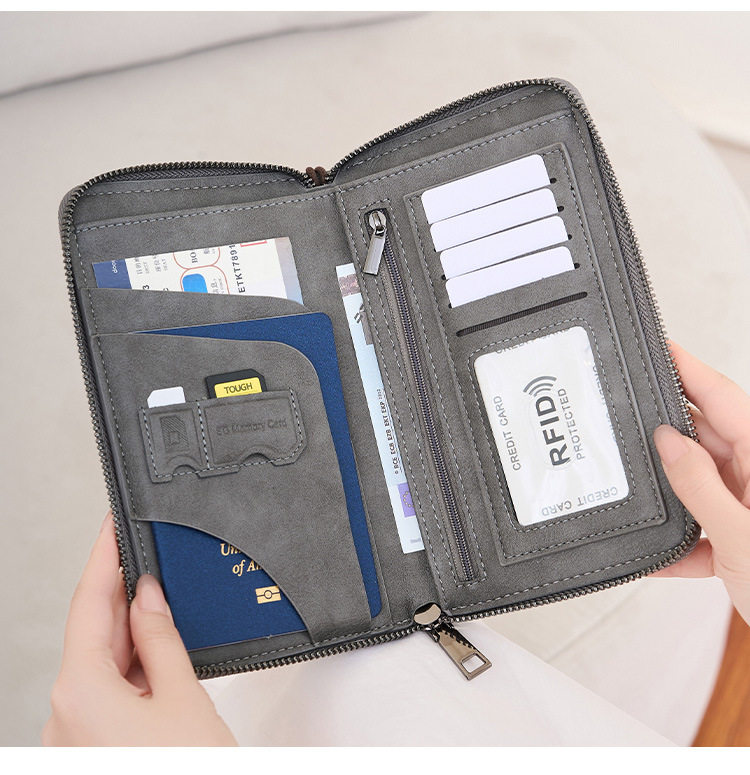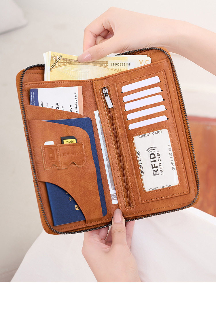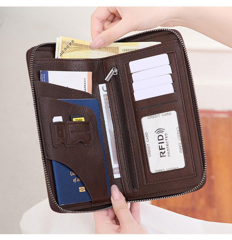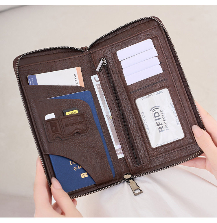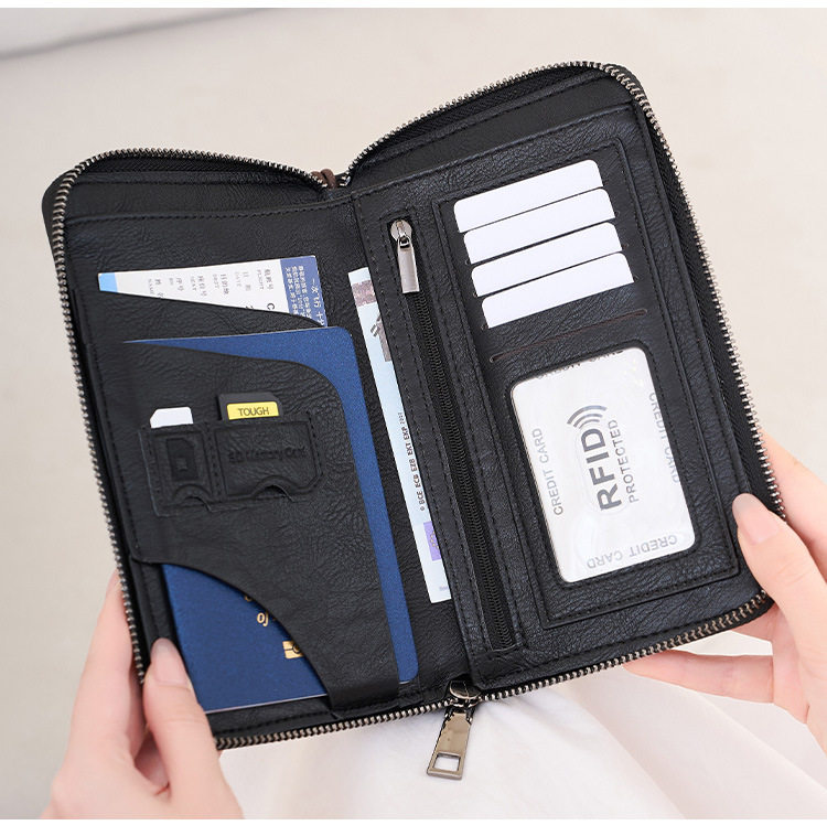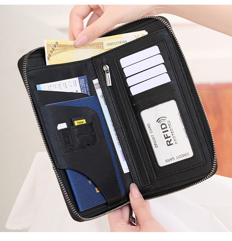 Cross-Border New Rfid Passport Bag Large Capacity Long Zipper Passport Wallet Multi-Functional Travel Storage Document Bag