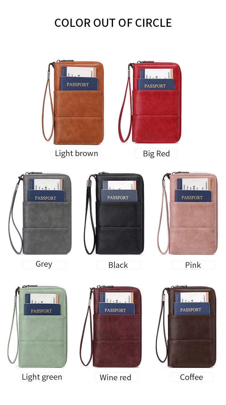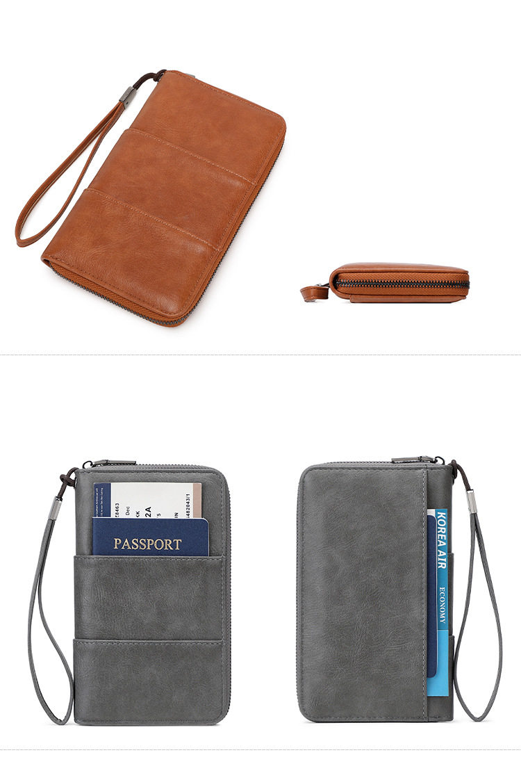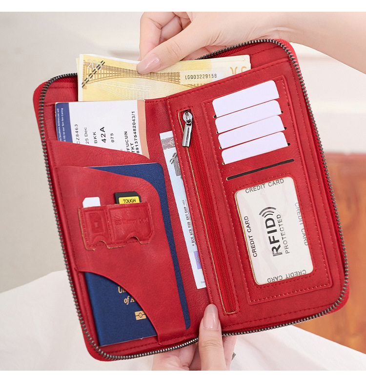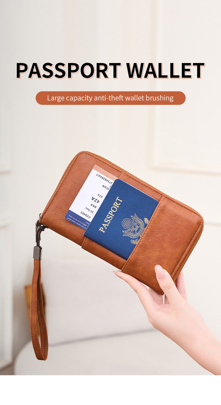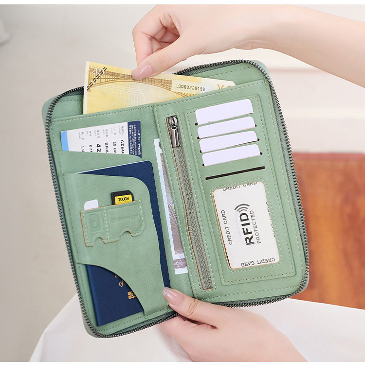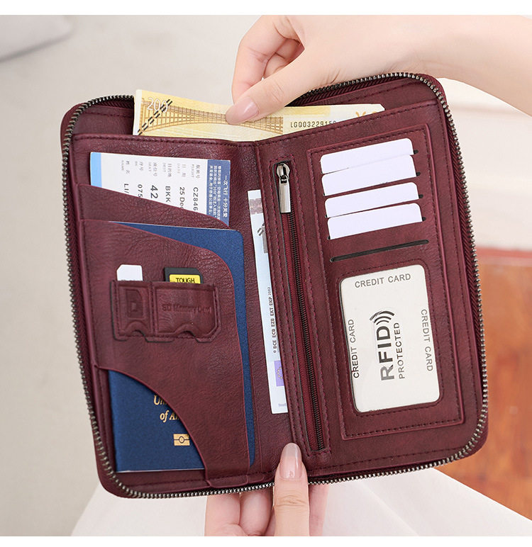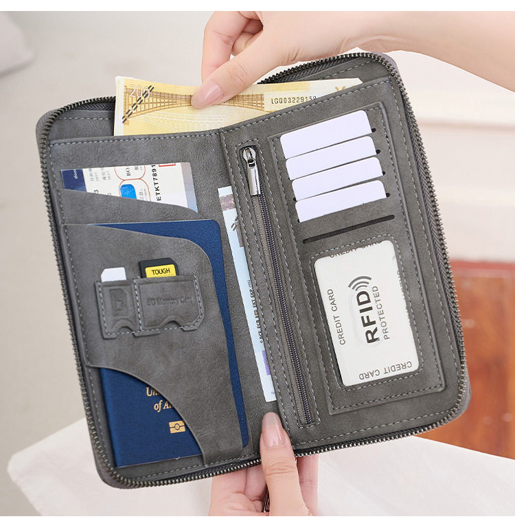Cross-Border New Rfid Passport Bag Large Capacity Long Zipper Passport Wallet Multi-Functional Travel Storage Document Bag