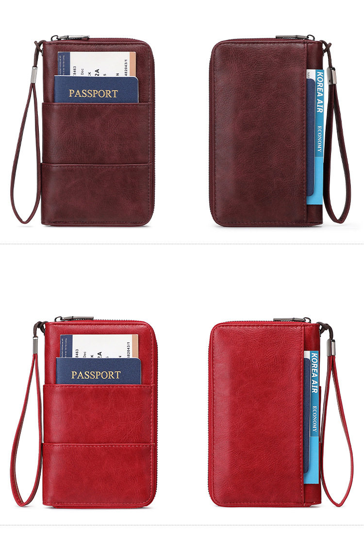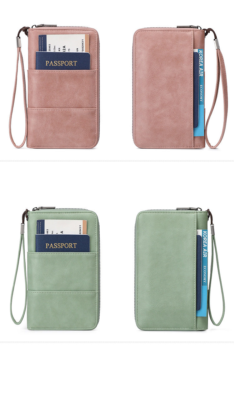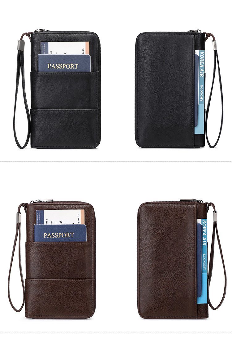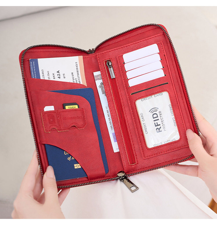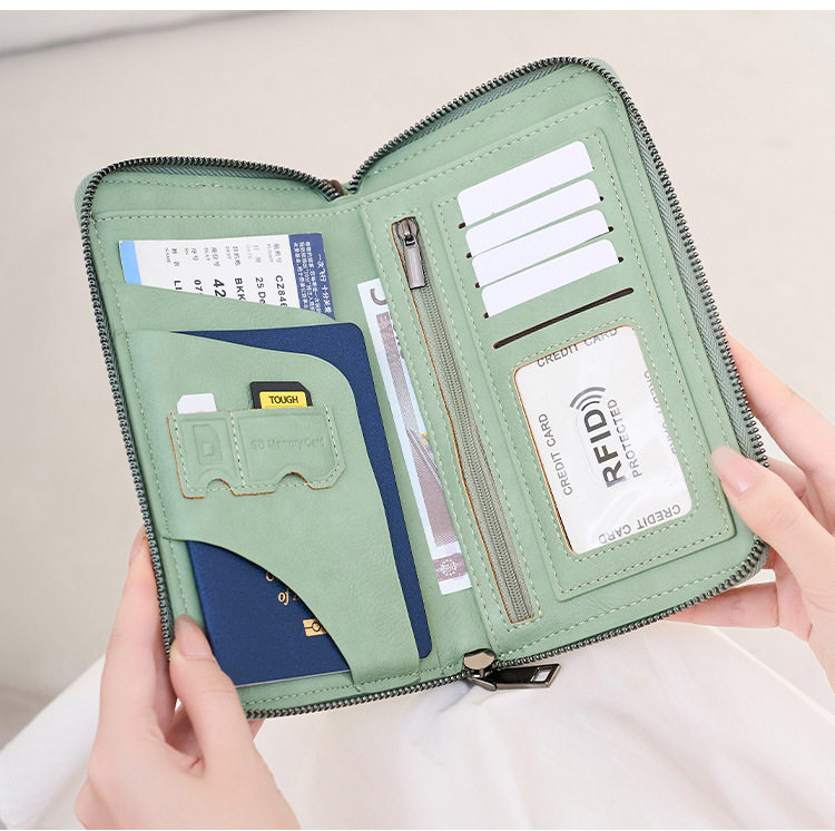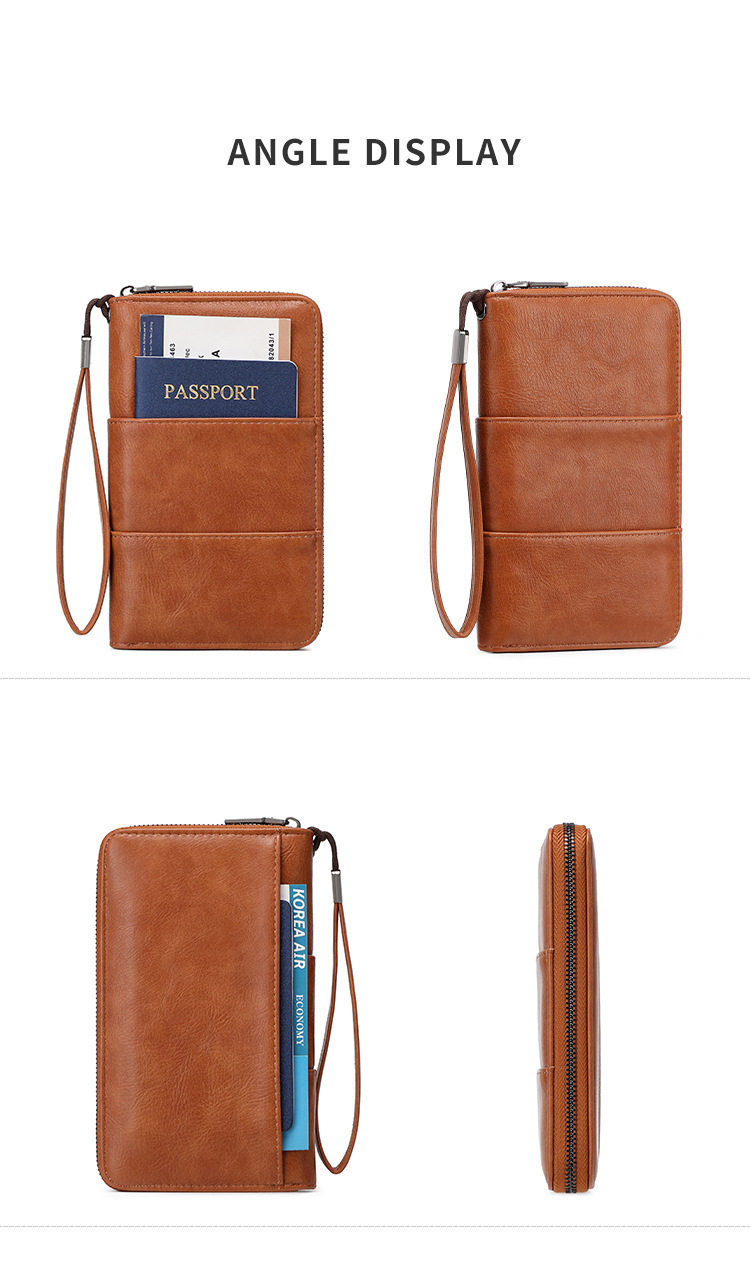 Cross-Border New Rfid Passport Bag Large Capacity Long Zipper Passport Wallet Multi-Functional Travel Storage Document Bag
