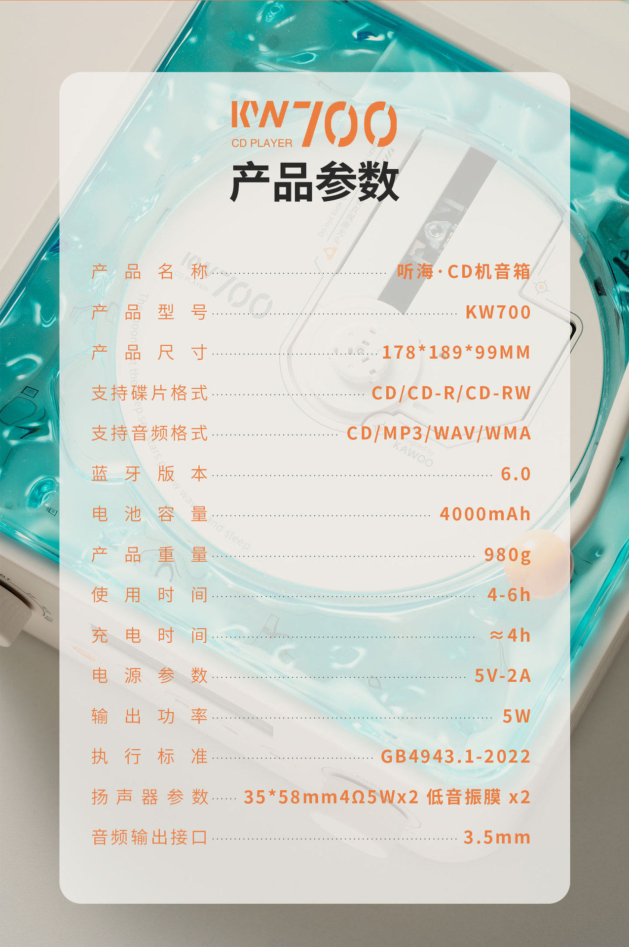 Customizable Tinghai Kw-700Cd Player Record Player Album Player Disc Disc Bluetooth Audio Cross-Border