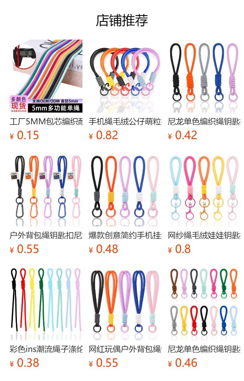 Factory 5mm Core-Spun Braided Wear-Resistant Polyester Round Rope Solid Color Japanese-Style Core-Spun Rope Phone Lanyard Nylon Rope Accessory
