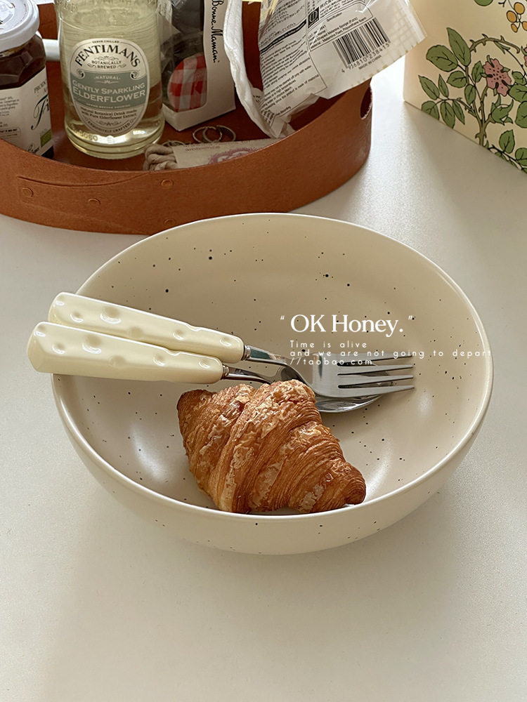| Color | 8.6inch deep mouth large soup plate with splashed ink,Affordable pack of two,Affordable three-piece set for one person,Large round rice plate with splash ink dots,4.75inch ceramic splash ink bowl (off-white,8inch ceramic splash-ink steak plate (off-white,Splashed ink irregular matte flat plate,9inch matte splash ink round triangular plate,12inch oval splash-ink fish plate |