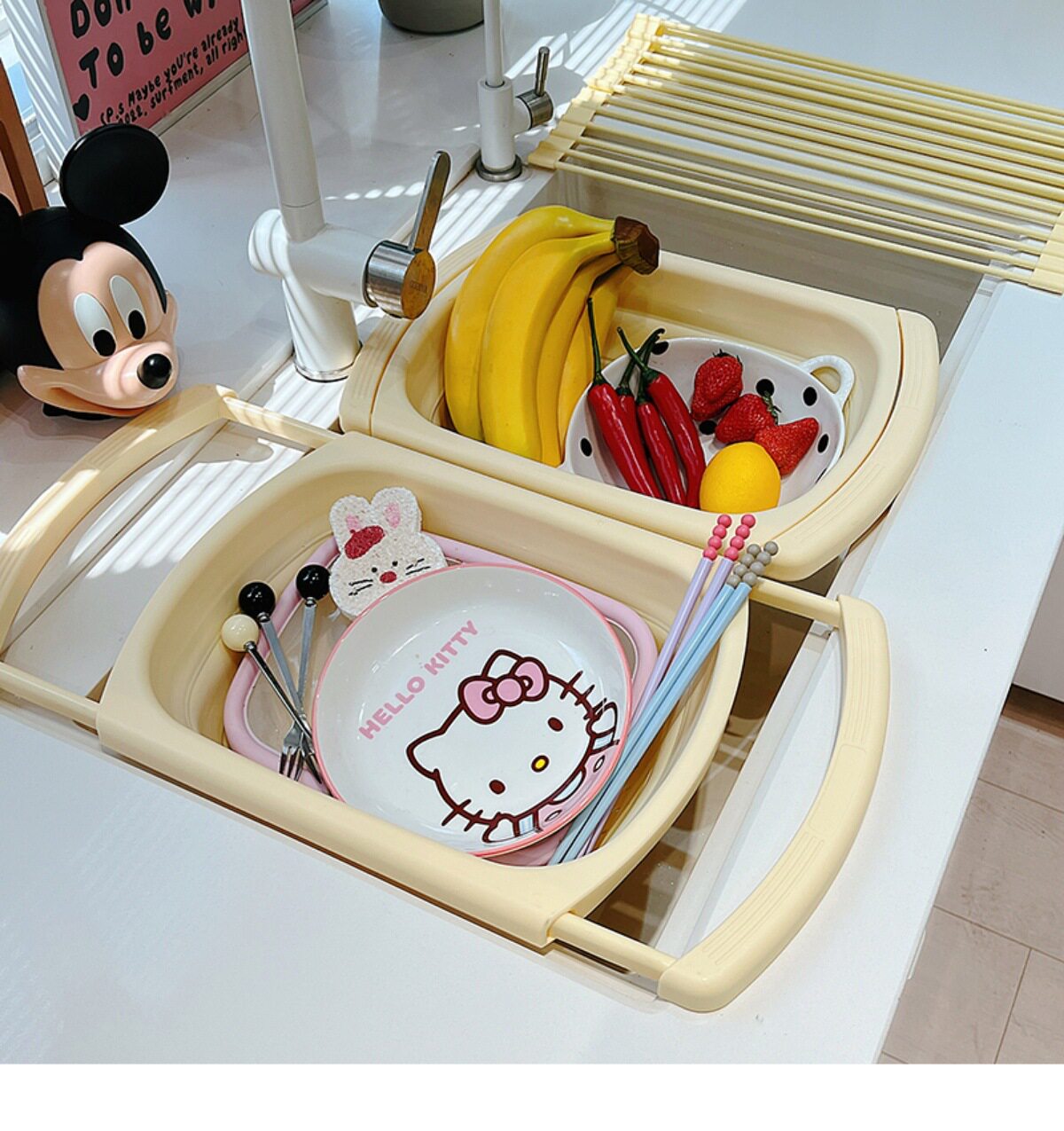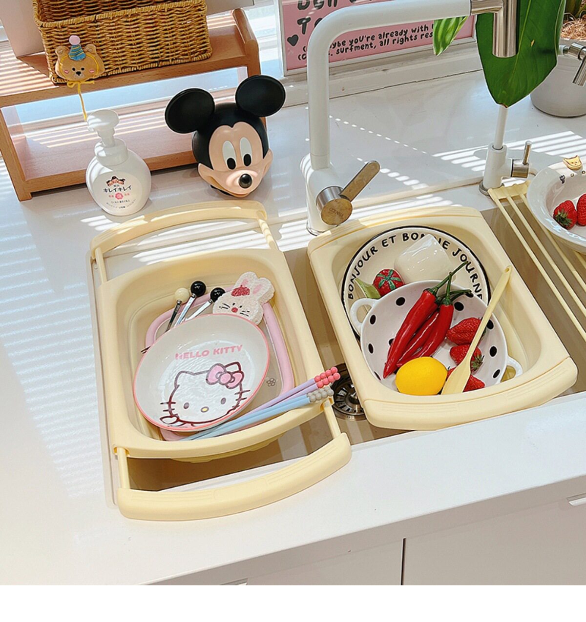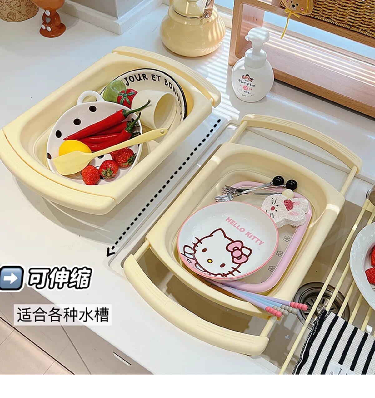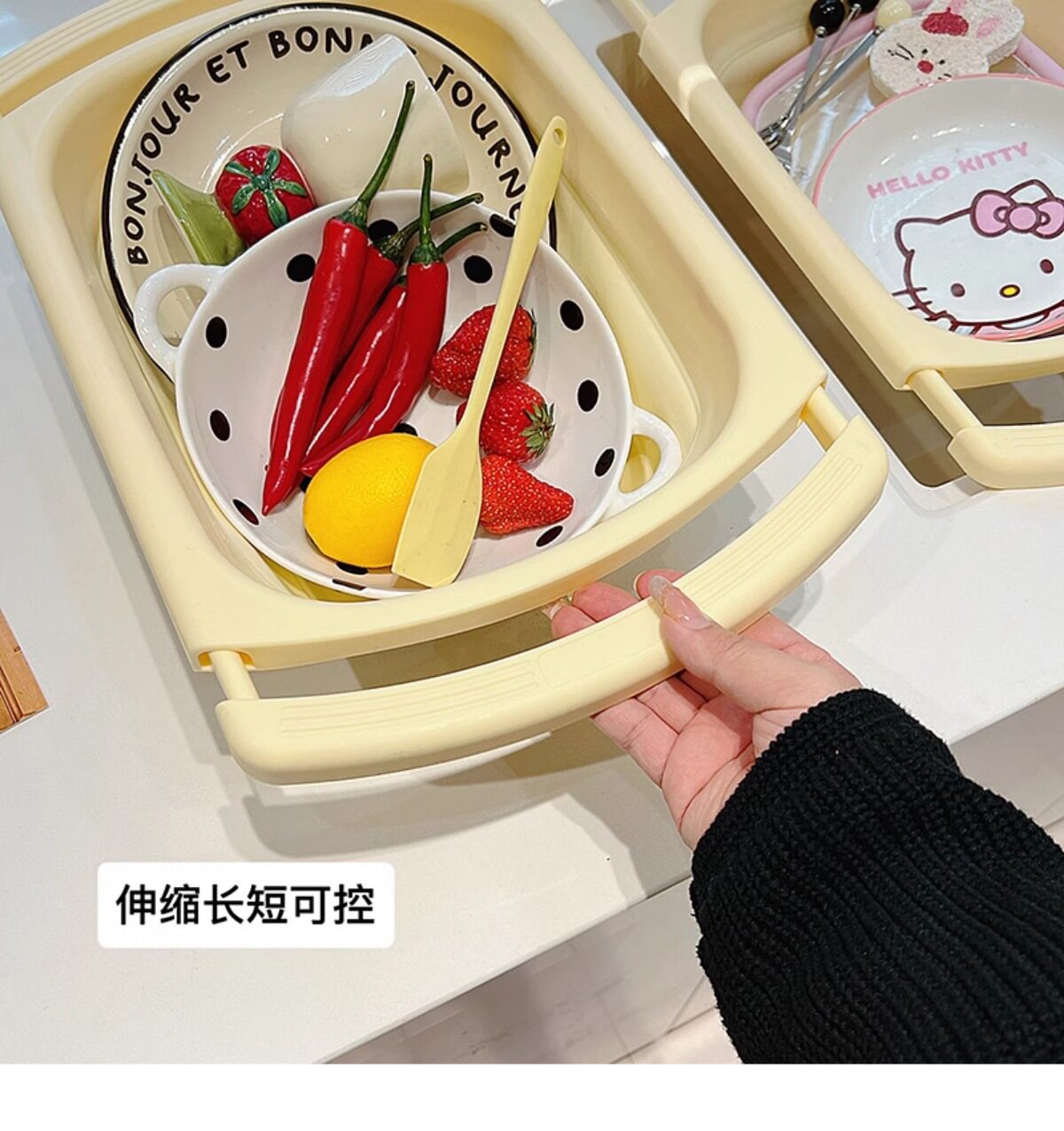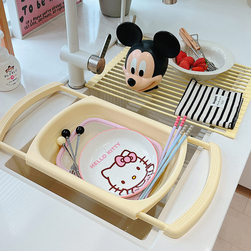 Ins Cream Drain Rack Kitchen Household Retractable Foldableing Dish Basket Dish Drain Rack Fruit Washing Basket