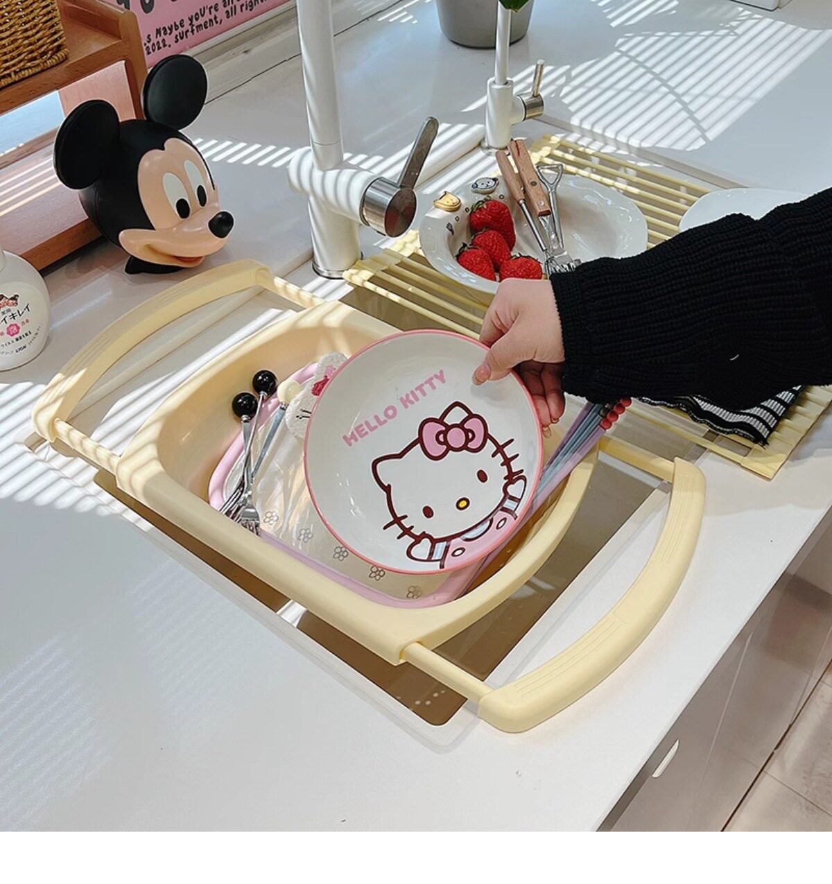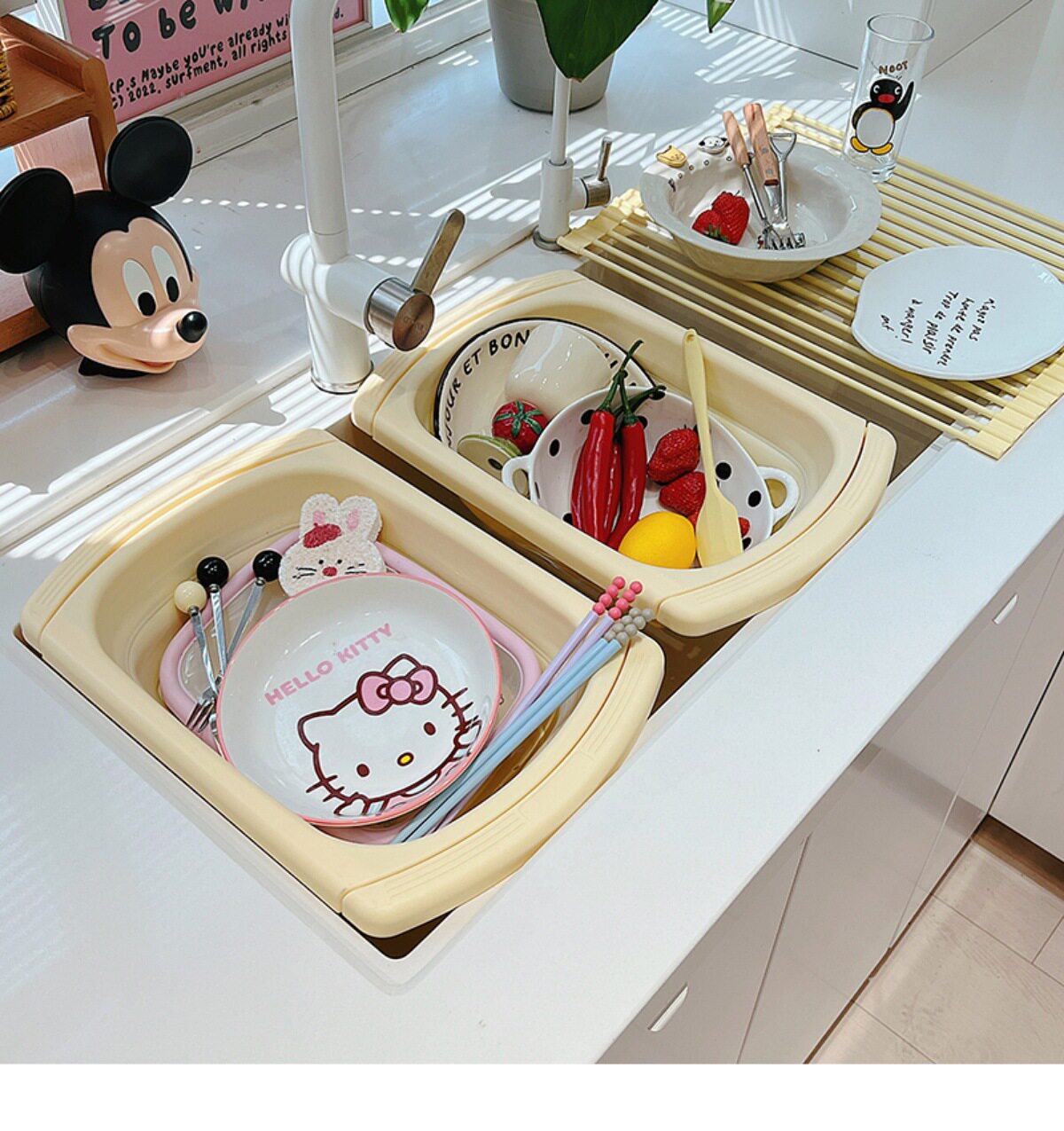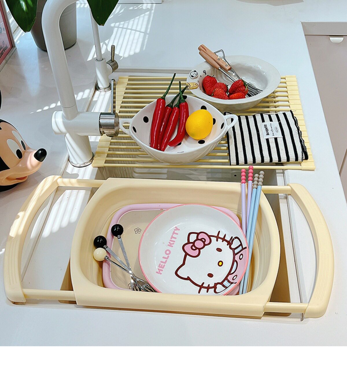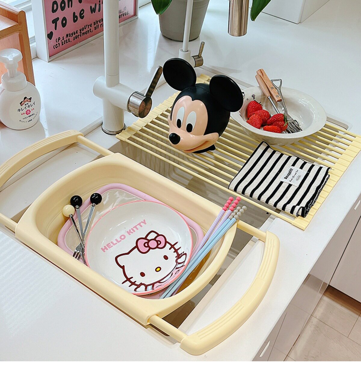 Ins Cream Drain Rack Kitchen Household Retractable Foldableing Dish Basket Dish Drain Rack Fruit Washing Basket