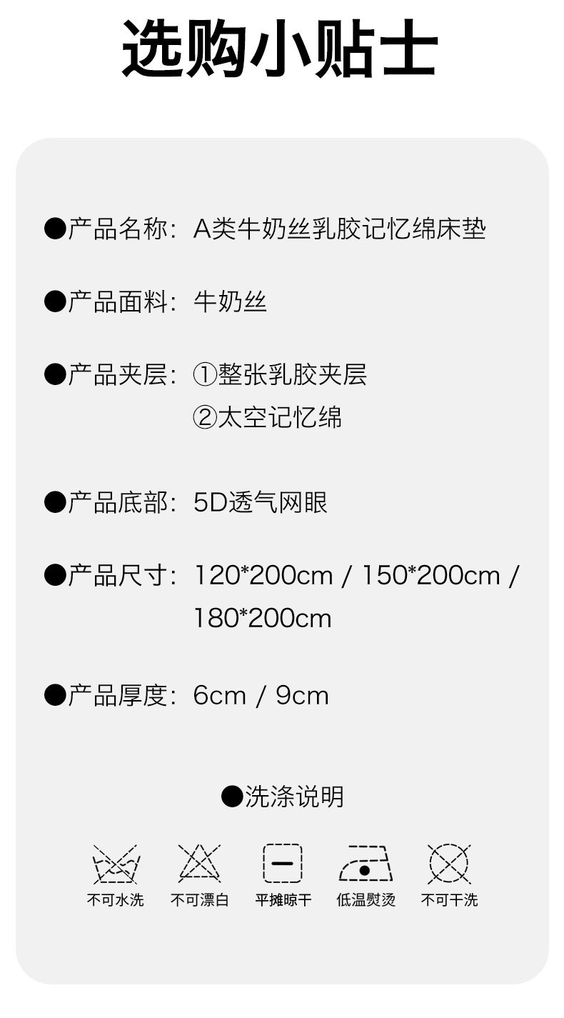 | Dimensions | 90x190cm thickness 6cm,90x200cm thickness 6cm,120x190cm thickness 6cm,120x200cm thickness 6cm,150x190cm thickness 6cm,150x200cm thickness 6cm,180x200cm thickness 6cm,90x190cm thickness 9cm,90x200cm thickness 9cm,120x190cm thickness 9cm,120x200cm thickness 9cm,150x190cm thickness 9cm,150x200cm thickness 9cm,180x200cm thickness 9cm |