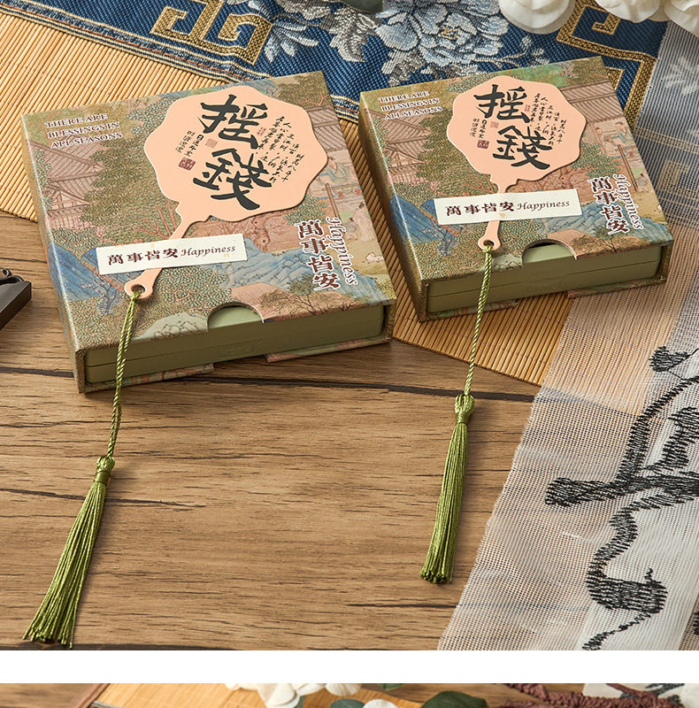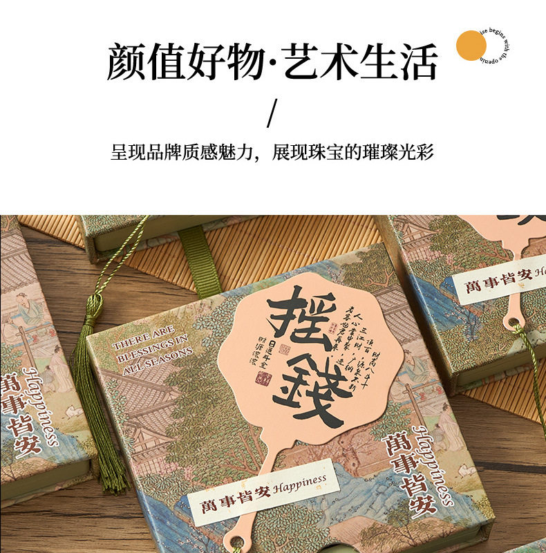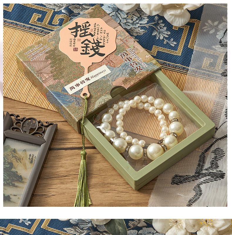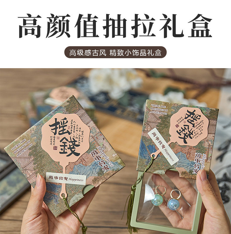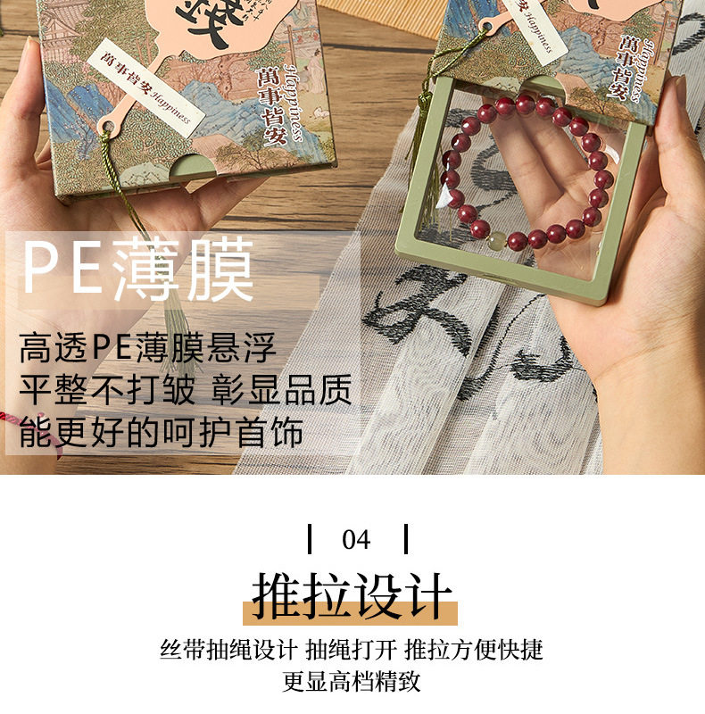 New Chinese style PE film storage box printed money fan crystal packaging box tassel pendant gift box bracelet box