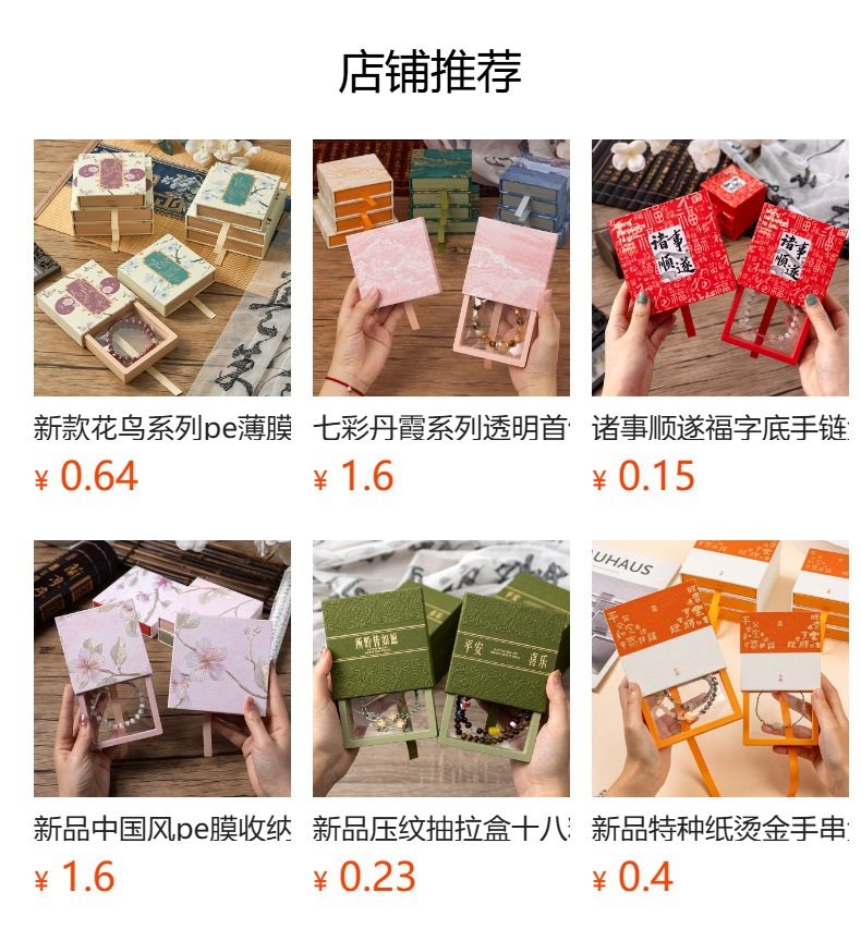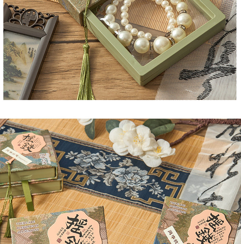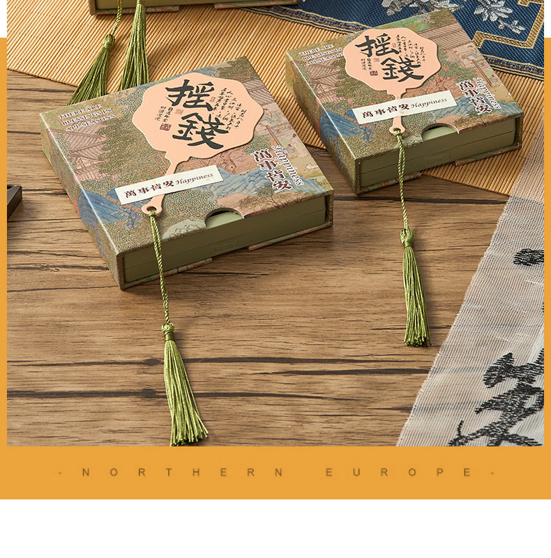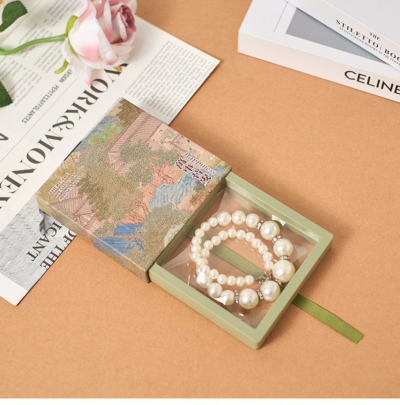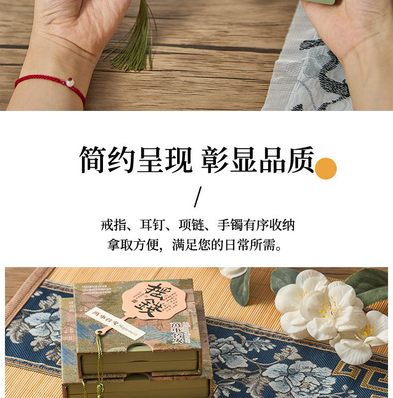 New Chinese style PE film storage box printed money fan crystal packaging box tassel pendant gift box bracelet box