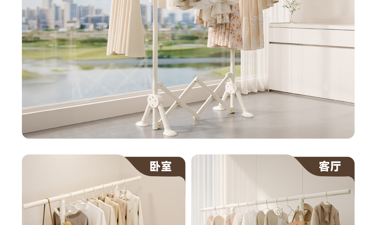 Indoor Foldable Clothes Drying Rack, Bedroom Floor-Standing Clothes Drying Rod, One Retractable Clothes Drying Rod, Small Apartment Bay Window