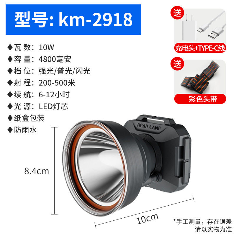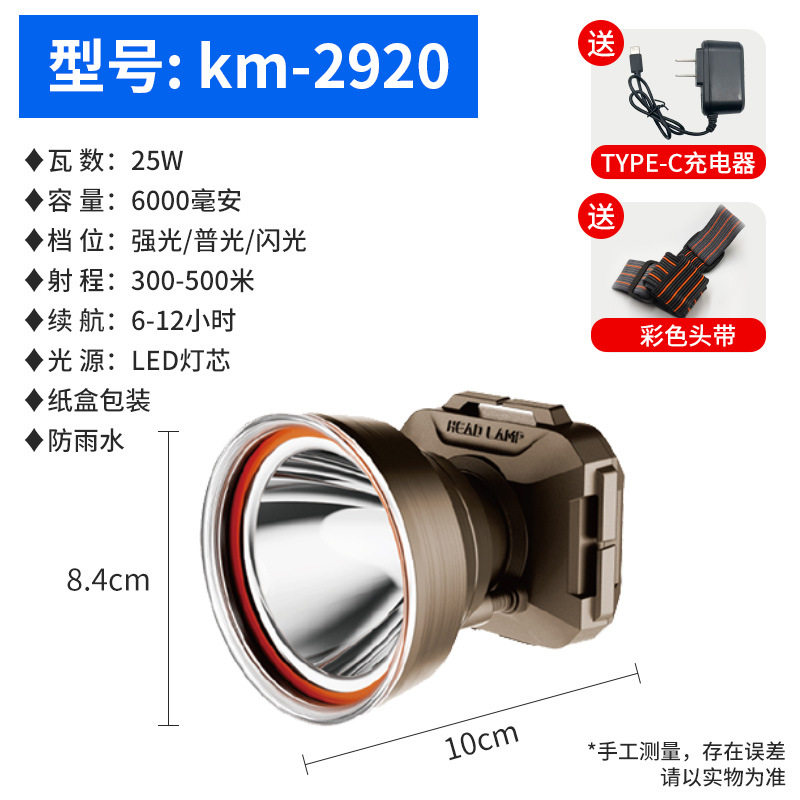 High-Power Outdoor Headlight, Strong Light, High Lumen, Long Battery Life, Long-Range Charging Led Head-Mounted Ultra-Bright Miner's Lamp for Night Fishing