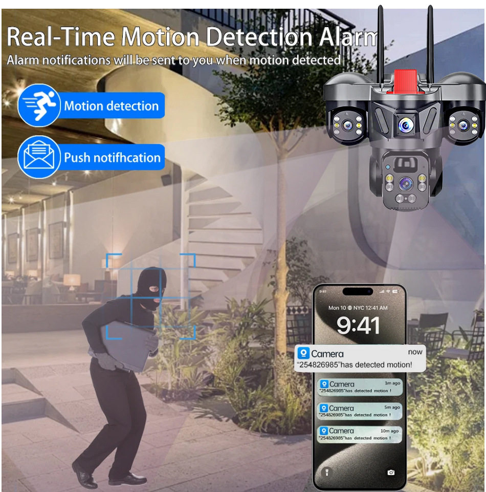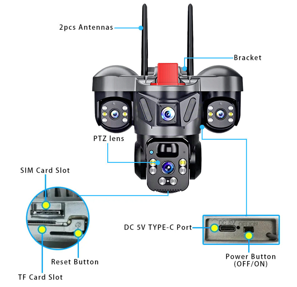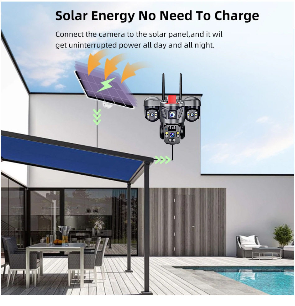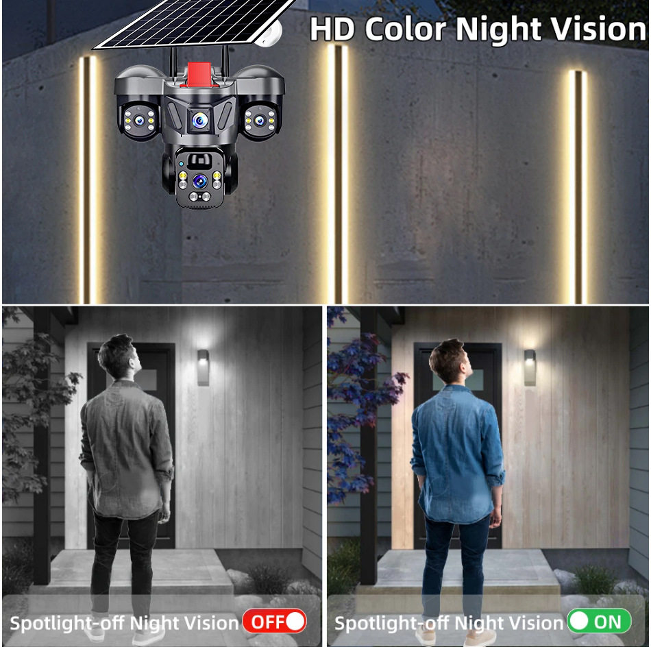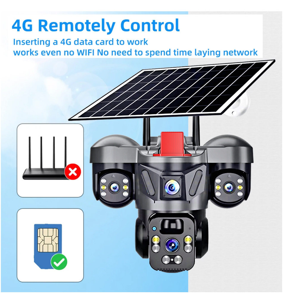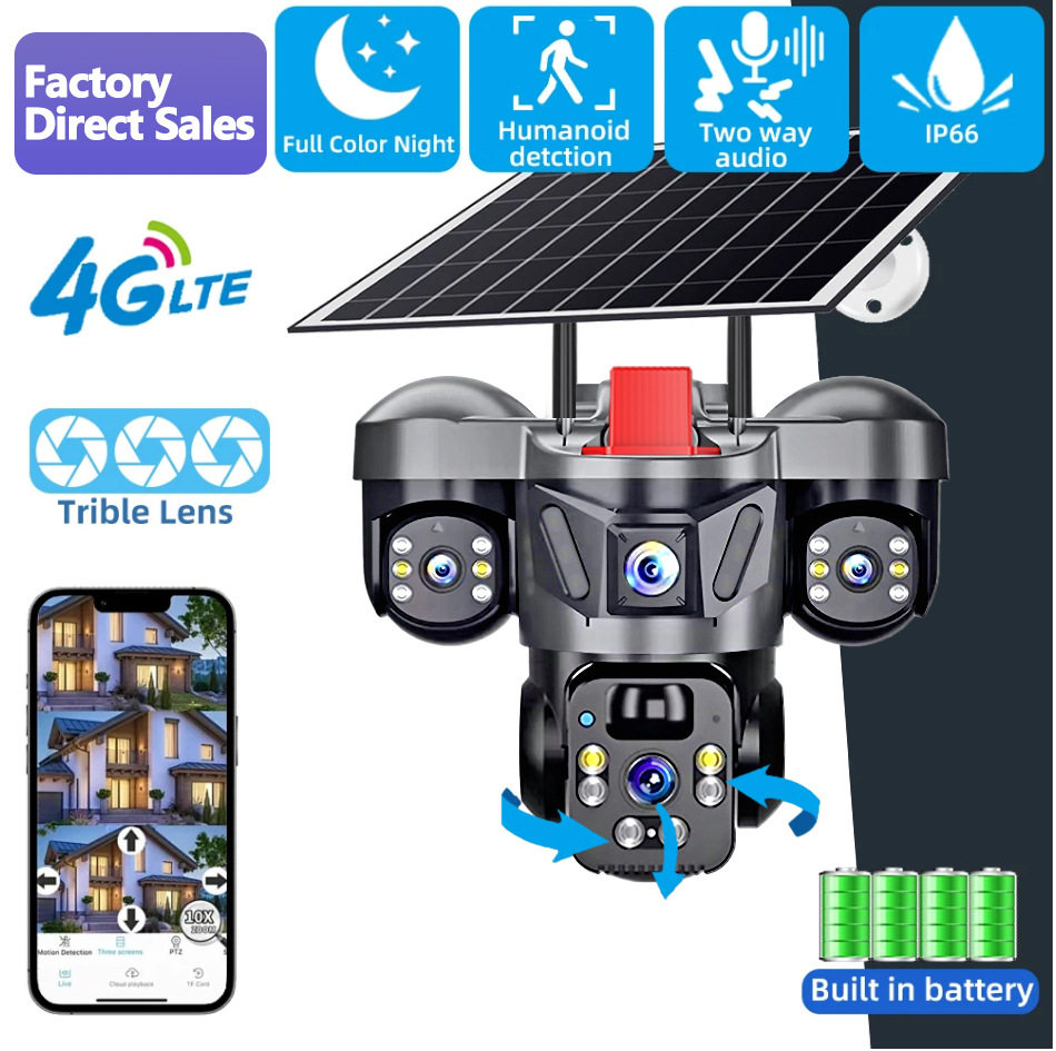 V360Pro Solar-Powered Surveillance Camera 4G/Wifi Waterproof Night Vision Southeast Asia Export Three-Lens Outdoor