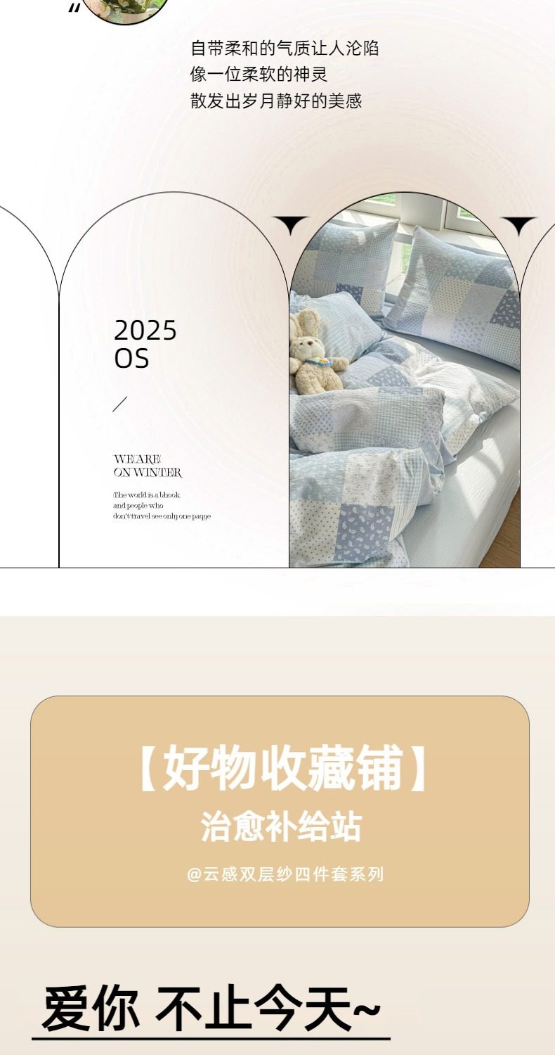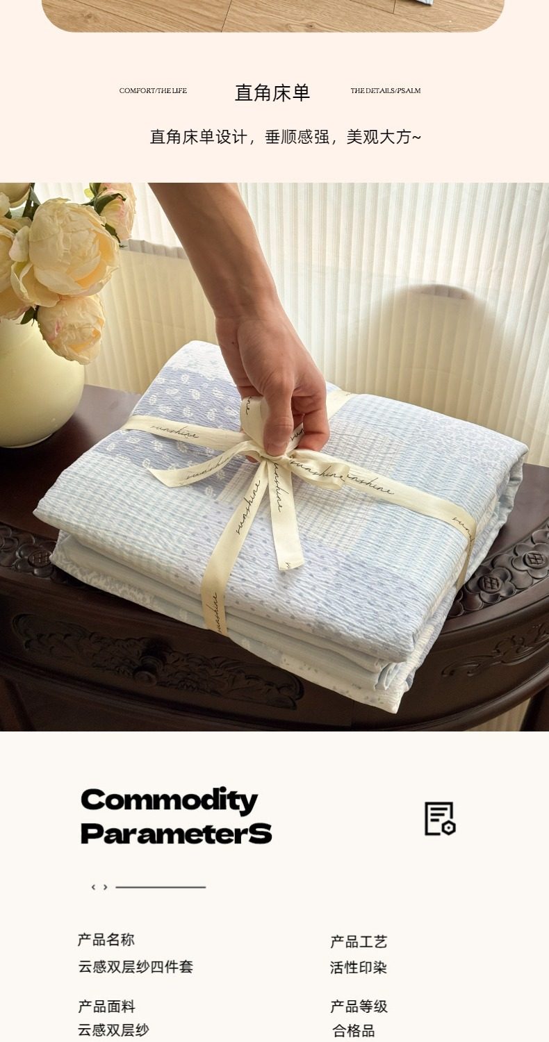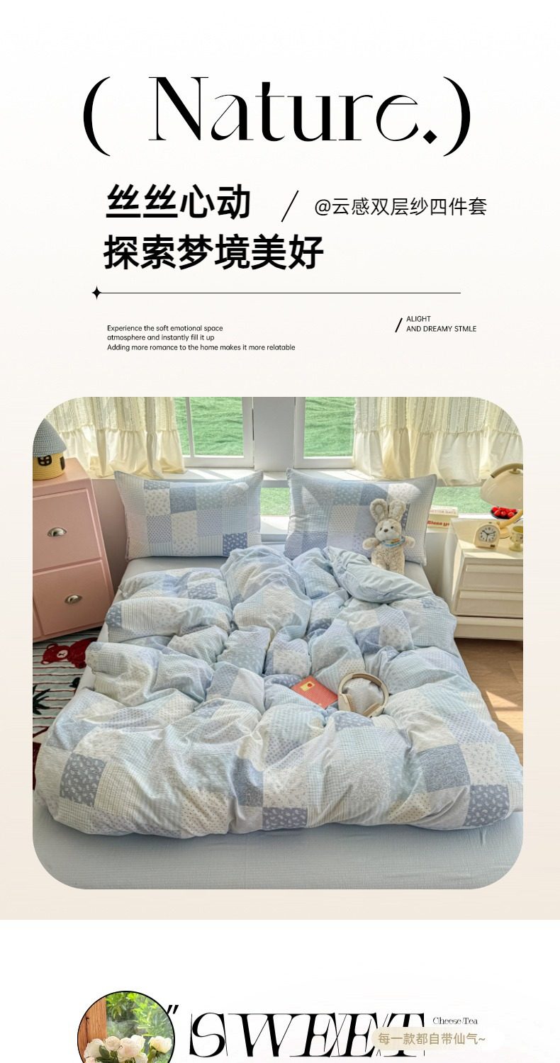 Good Product Class a Maternal and Infant Four-Piece Knitted Double-Layer Yarn Bed Quilt Cover Three-Piece Student Dormitory Skin-Friendly and Comfortable Kapok