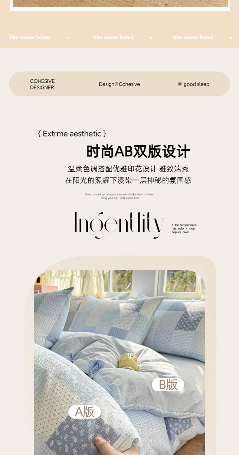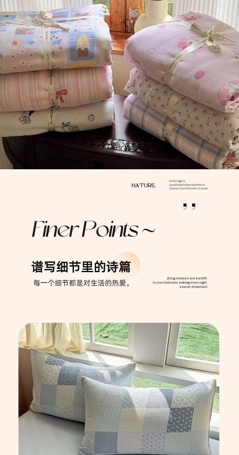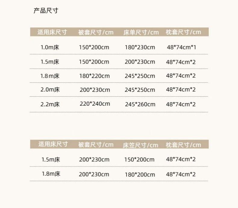 | Size Specifications | 0.9-1.2m bed sheet three-piece set-quilt cover 1.5x2m,1.5m bed sheet four-piece set-quilt cover 1.5x2m,1.8m bed sheet four-piece set-quilt cover 1.8x2.2m,2.0m bed sheet four-piece set-quilt cover 2x2.3m,2.2m bed sheet four-piece set-quilt cover 2.2x2.4m,1.5m fitted sheet set of four-quilt cover 1.5x2m,1.5m fitted sheet set of four-quilt cover 1.8x2.2m,1.8m fitted sheet set of four - quilt cover 1.8x2.2m,1.5m fitted sheet set of four-quilt cover 2x2.3m,1.8m fitted sheet set of four-quilt cover 2x2.3m,Quilt cover enlarged 1.8m fitted sheet set of four - quilt cover 2.2x2.4m |