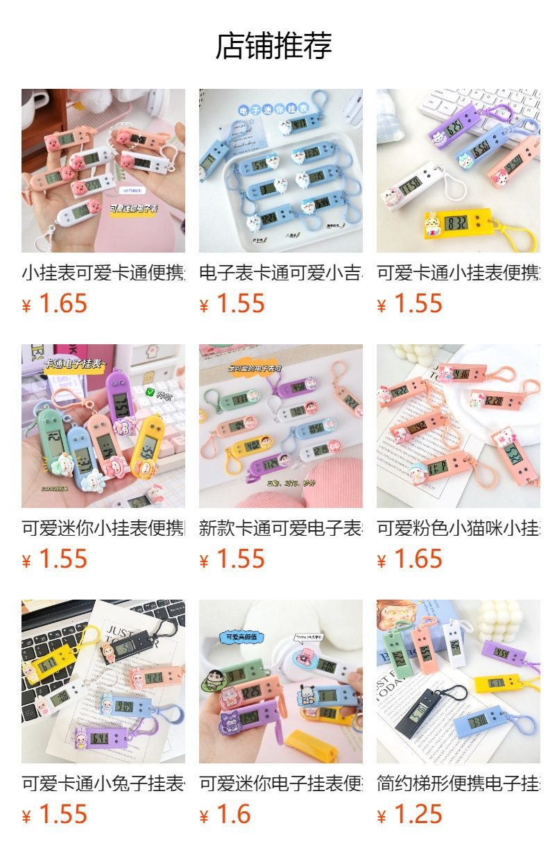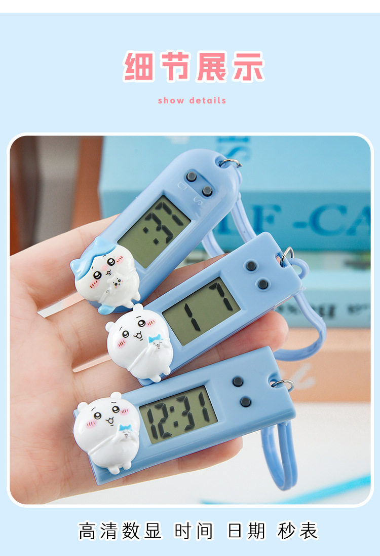 Cartoon Cute Electronic Watch Xiaoji Xiaoba Mini Portable Small Hanging Watch Student High-Definition Digital Display Time Date Stopwatch