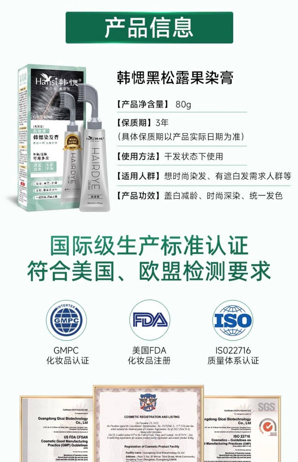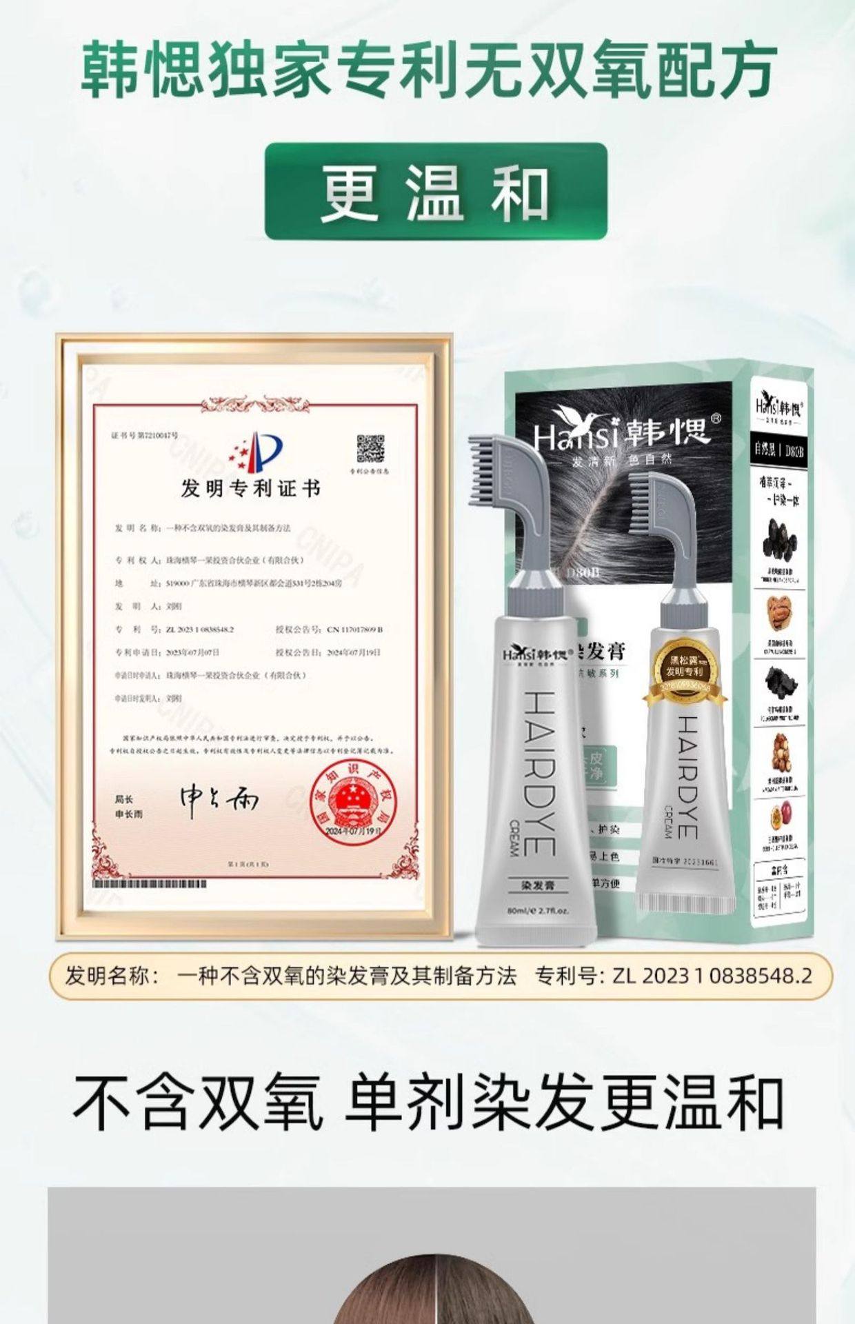 | Special makeup product name | Aishangcai hair coloring cream (natural black) |