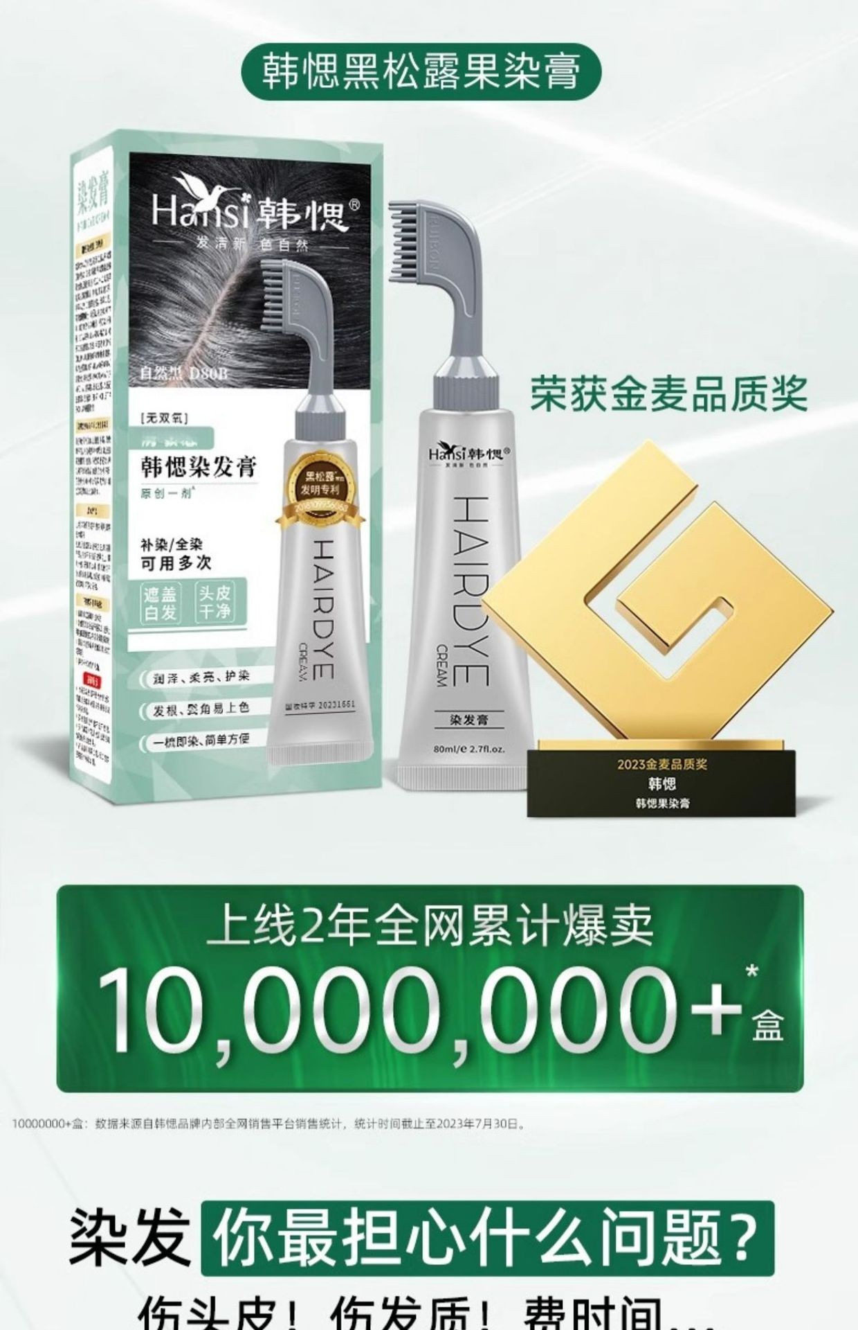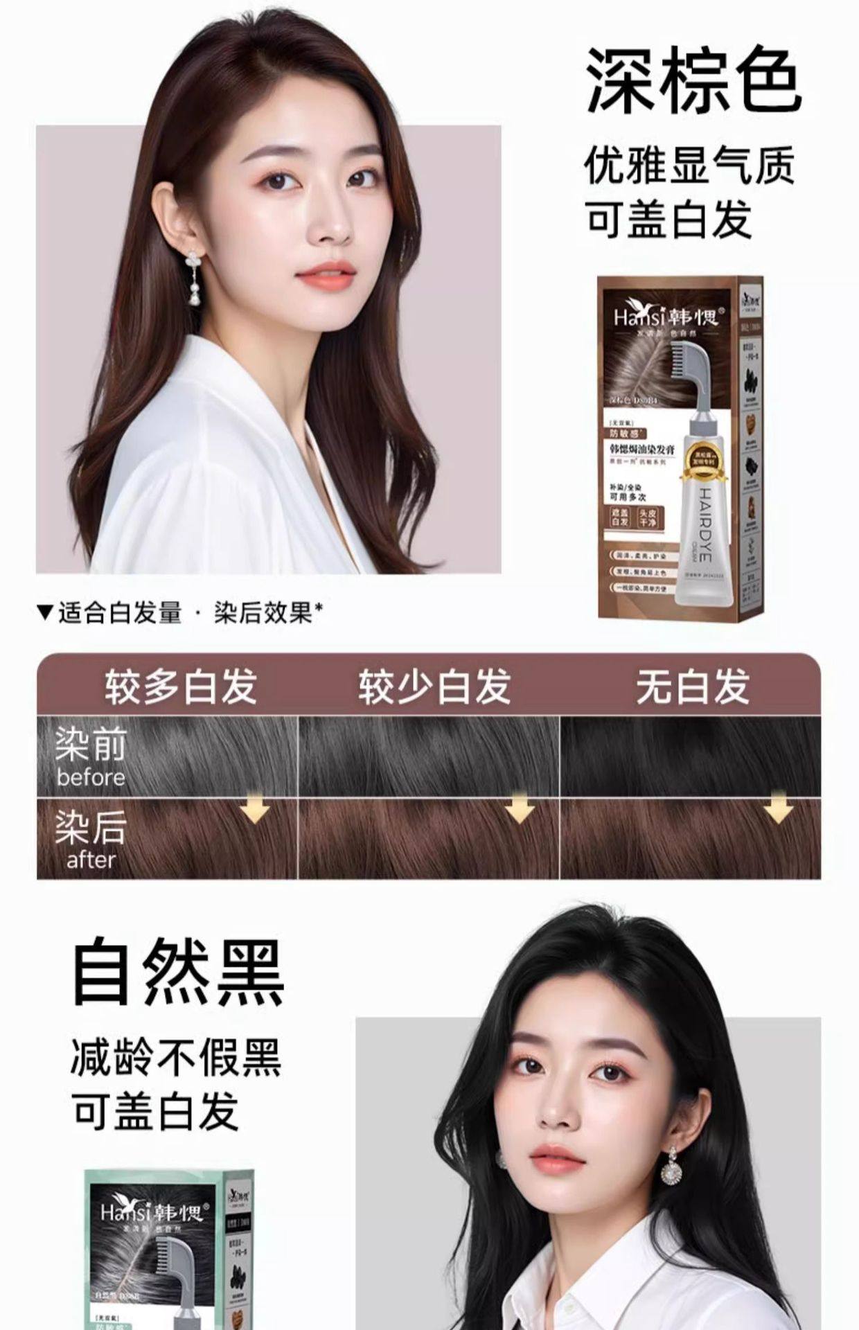 Wang Ji Endorses Han Yan Plant Black Truffle Fruit Dye Cream Hair Dye Cream One Comb Black Pure White Covering Han Si Natural Hair Dye