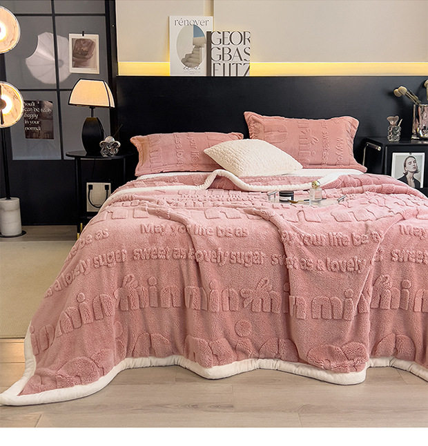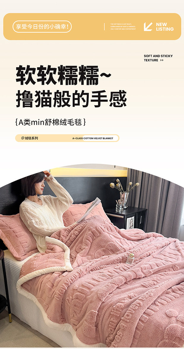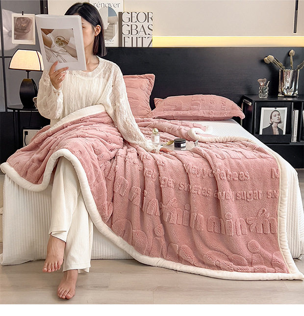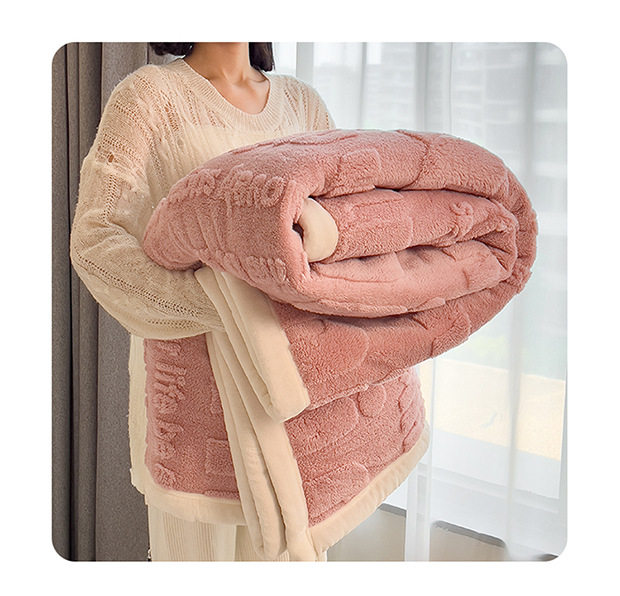 Cross-Border New Type a Comfortable Cotton Velvet Blanket Carved Flannel Cut Flower Thickeneded Warm Multi-Functional Flannel Blanket