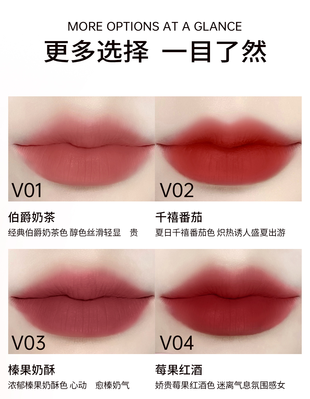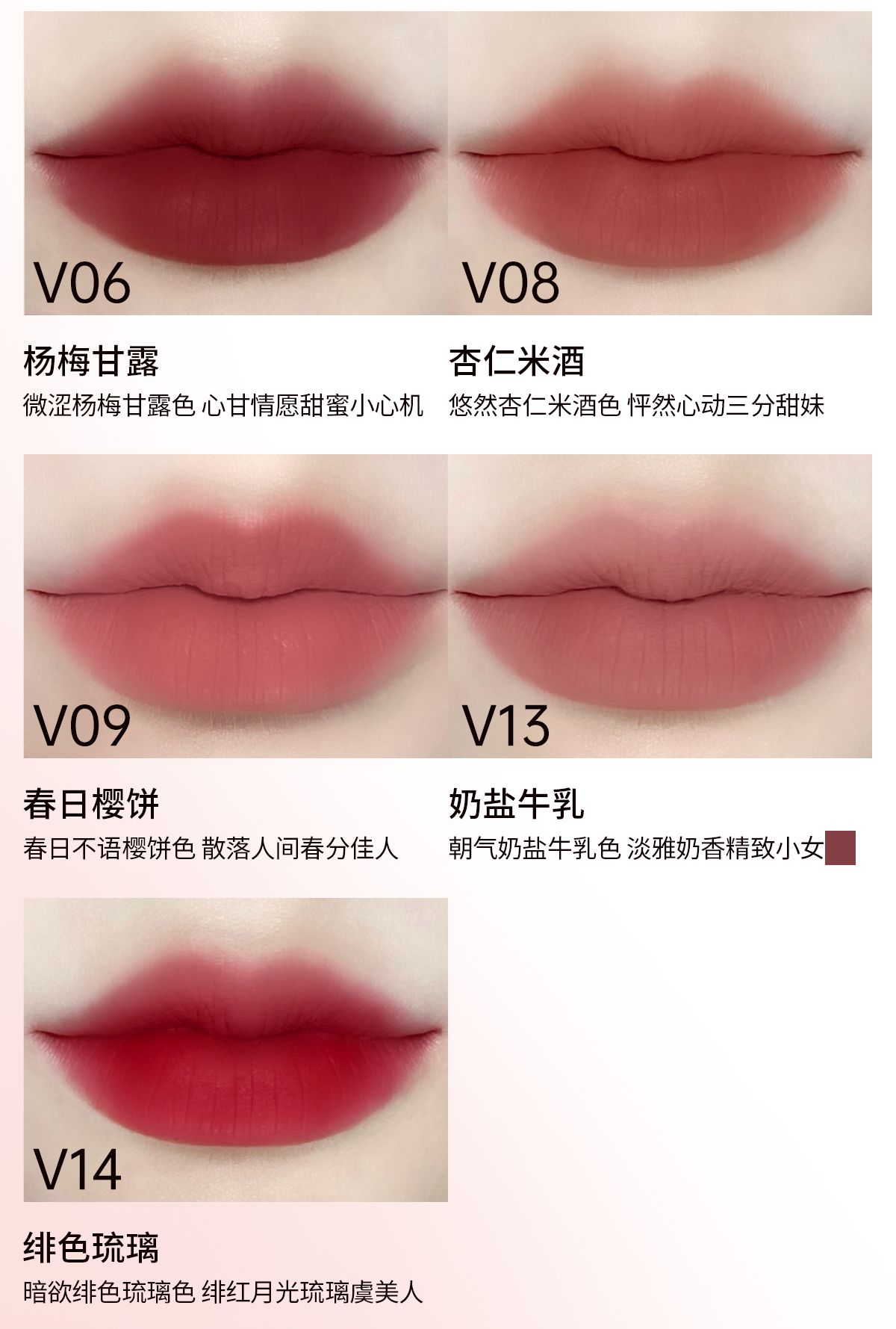 | Color | V01 earl gray milk tea hot sale,V02 millennium tomato,V03 hazelnut soufflé,V04 plum red wine,V05 lava makes perfect,# V06 bayberry nectar,V07 white peach sake,V08 almond rice wine,V09 spring sakura cake,V10 red pear milk coffee,V11 light tea apricot,V12 french bree hot sale,V13 milk salt milk,V14 crimson glass,V15 smoke powder plum,V25 night banquet crimson,V26 danfeng drunk cherry,V27 orange sea shimmer,V29 mocha crushed ice,V31 out of focus peach wood,V32 cold tea slow heat,V34 maple sugar mandarin,V36 rose muse,01 naked apricot cold tea [lip cream],02 red bean [lip cream],03 spring mountain pink peach [lip cream],04 confession rose [lip cream],05 autumn begonia [lip cream],06 dewy rose [lip cream],07 cocoa tea brown [lip cream] hot sale,08 american cocoa [lip cream],[new leopard print lip mud] v40 explosive golden apple |