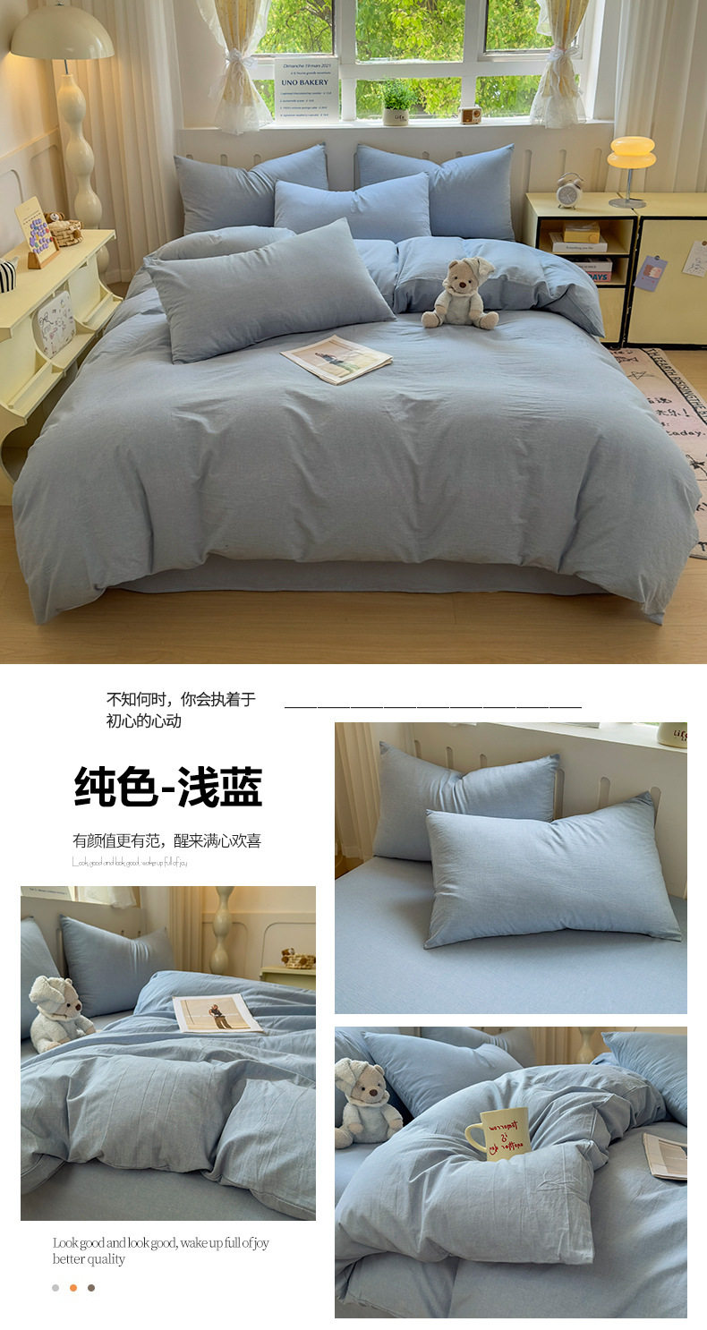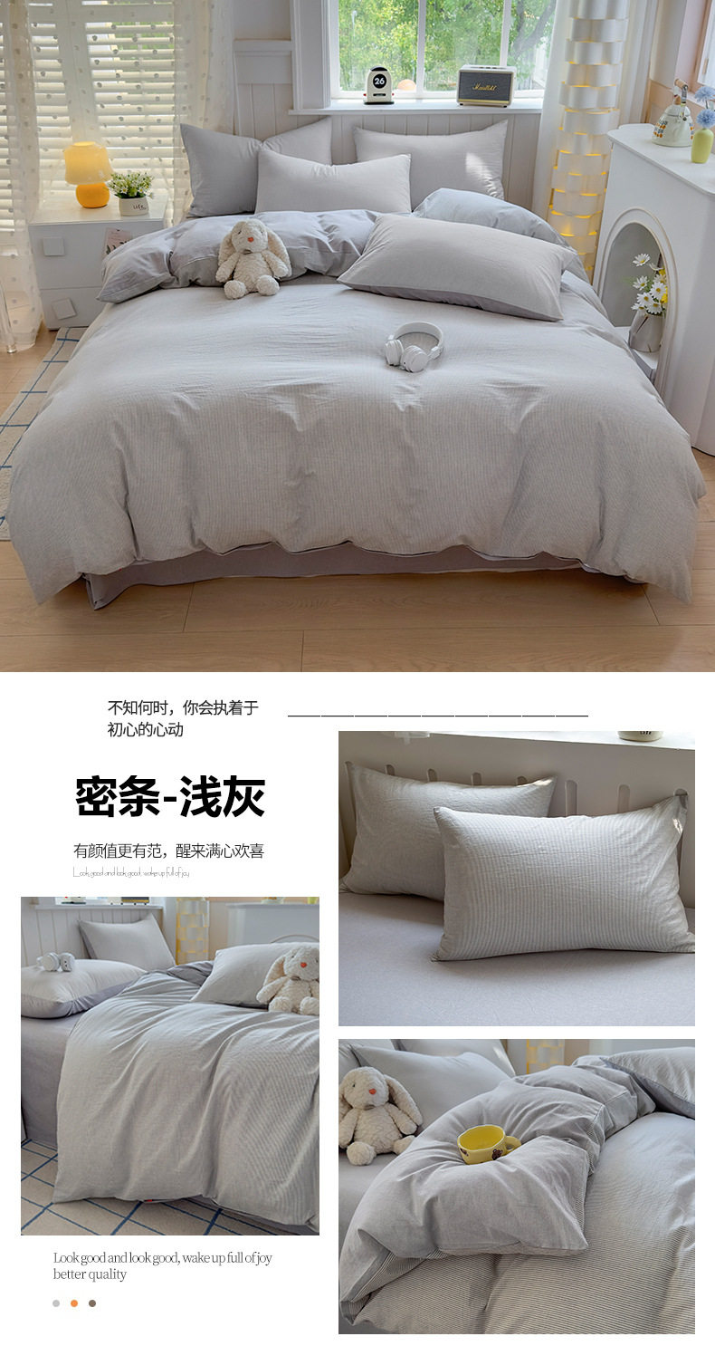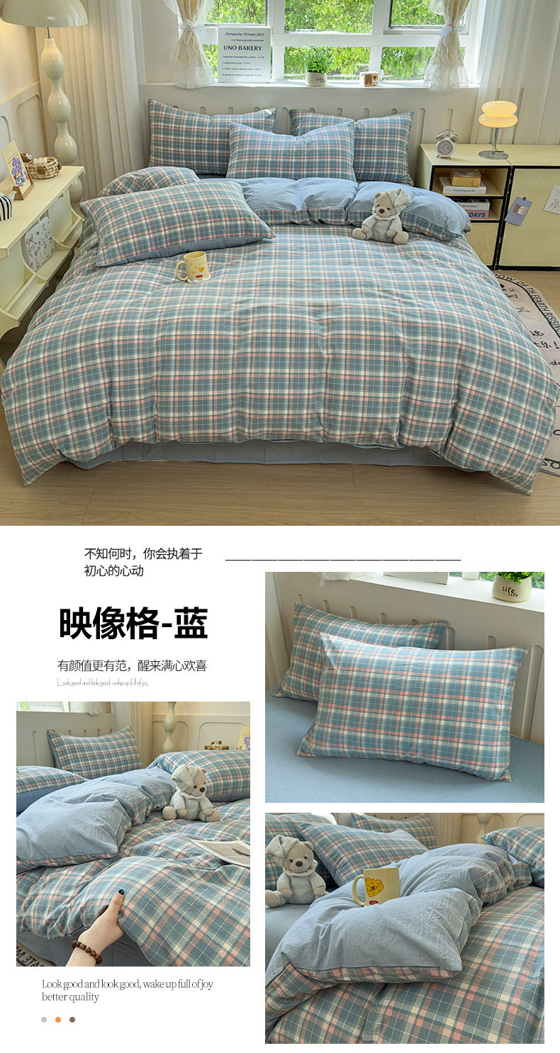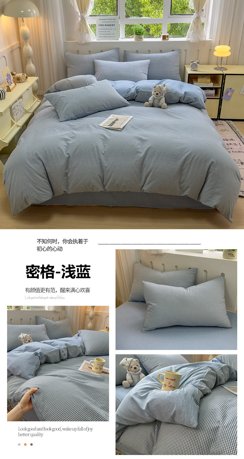 Class a 100 Cotton Yarn-Dyed Washed Cotton Combed Cotton Four-Piece Set of Bed Sheetss, Quilt Covers, Fitted Bed Sheetss, Dormitory Three-Piece Bedding Set