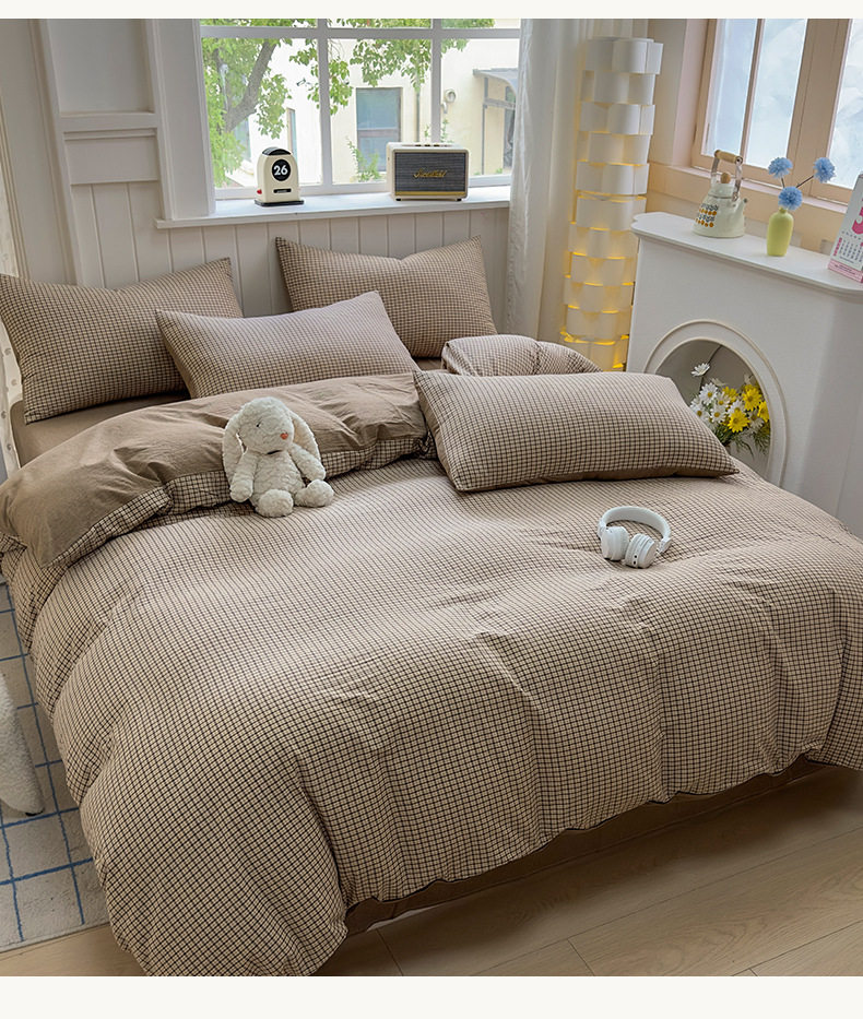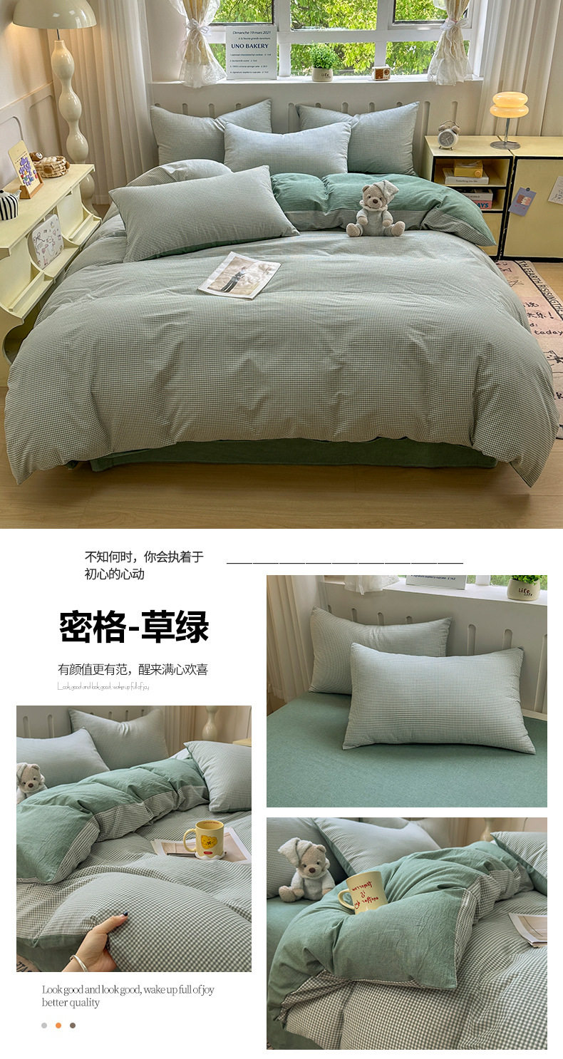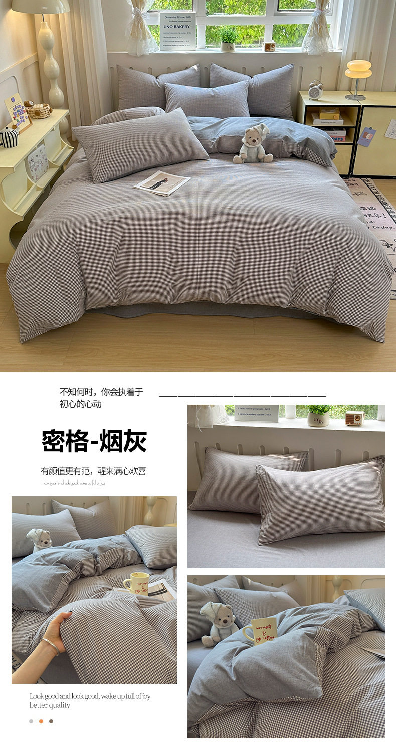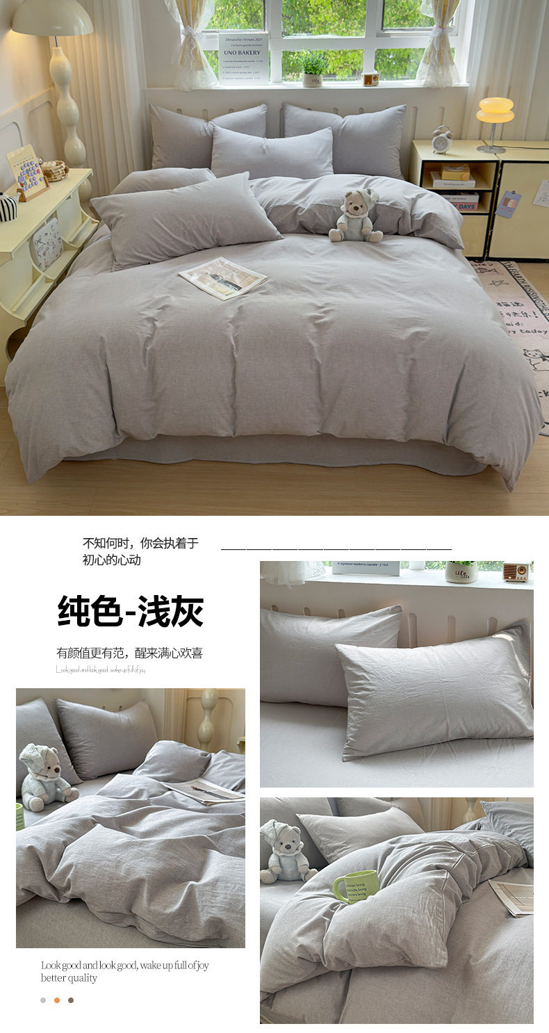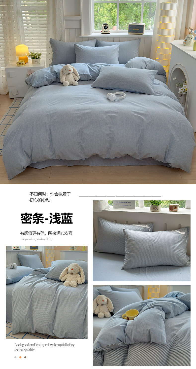 Class a 100 Cotton Yarn-Dyed Washed Cotton Combed Cotton Four-Piece Set of Bed Sheetss, Quilt Covers, Fitted Bed Sheetss, Dormitory Three-Piece Bedding Set