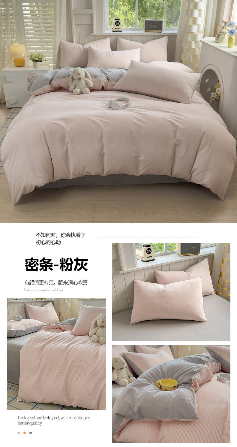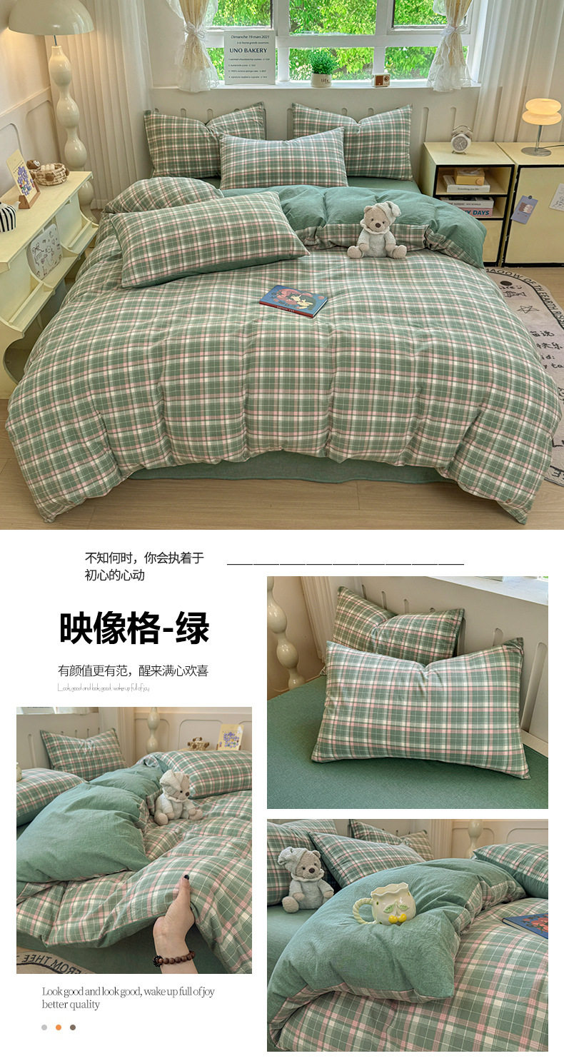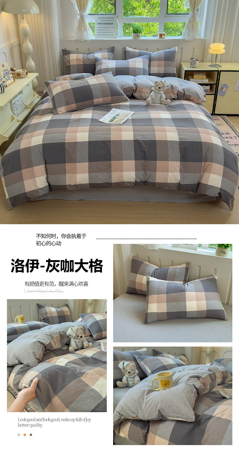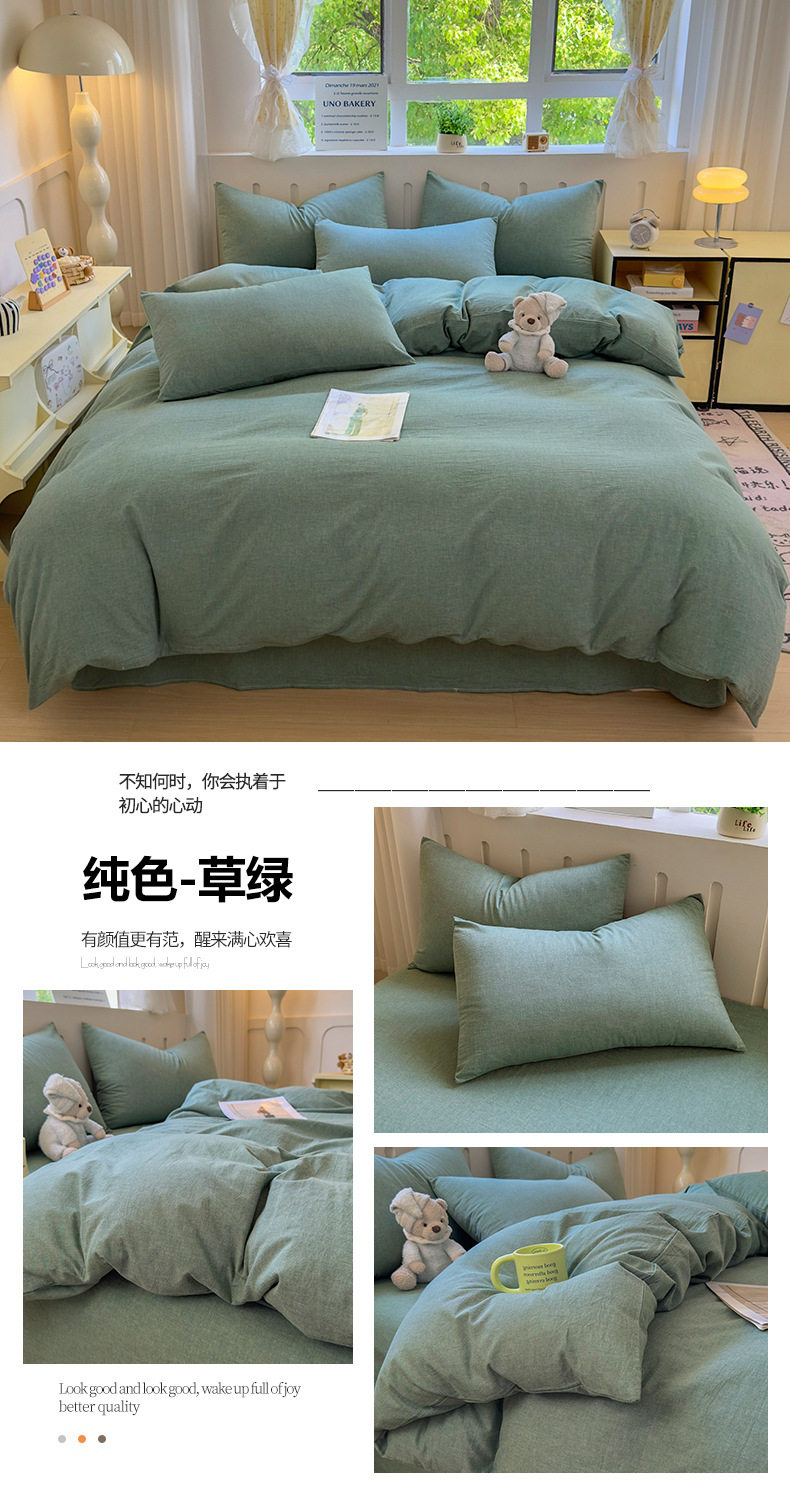 Class a 100 Cotton Yarn-Dyed Washed Cotton Combed Cotton Four-Piece Set of Bed Sheetss, Quilt Covers, Fitted Bed Sheetss, Dormitory Three-Piece Bedding Set