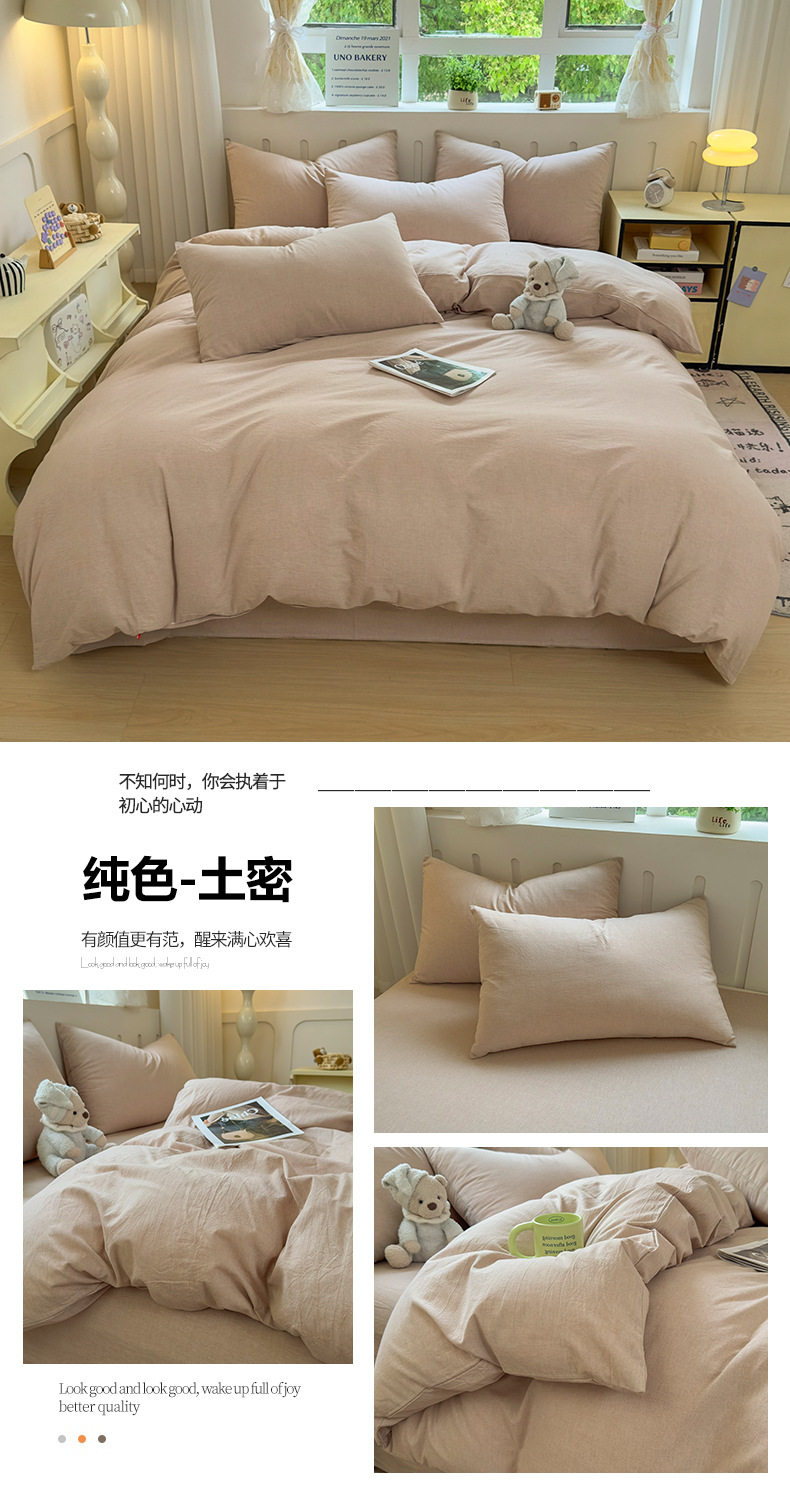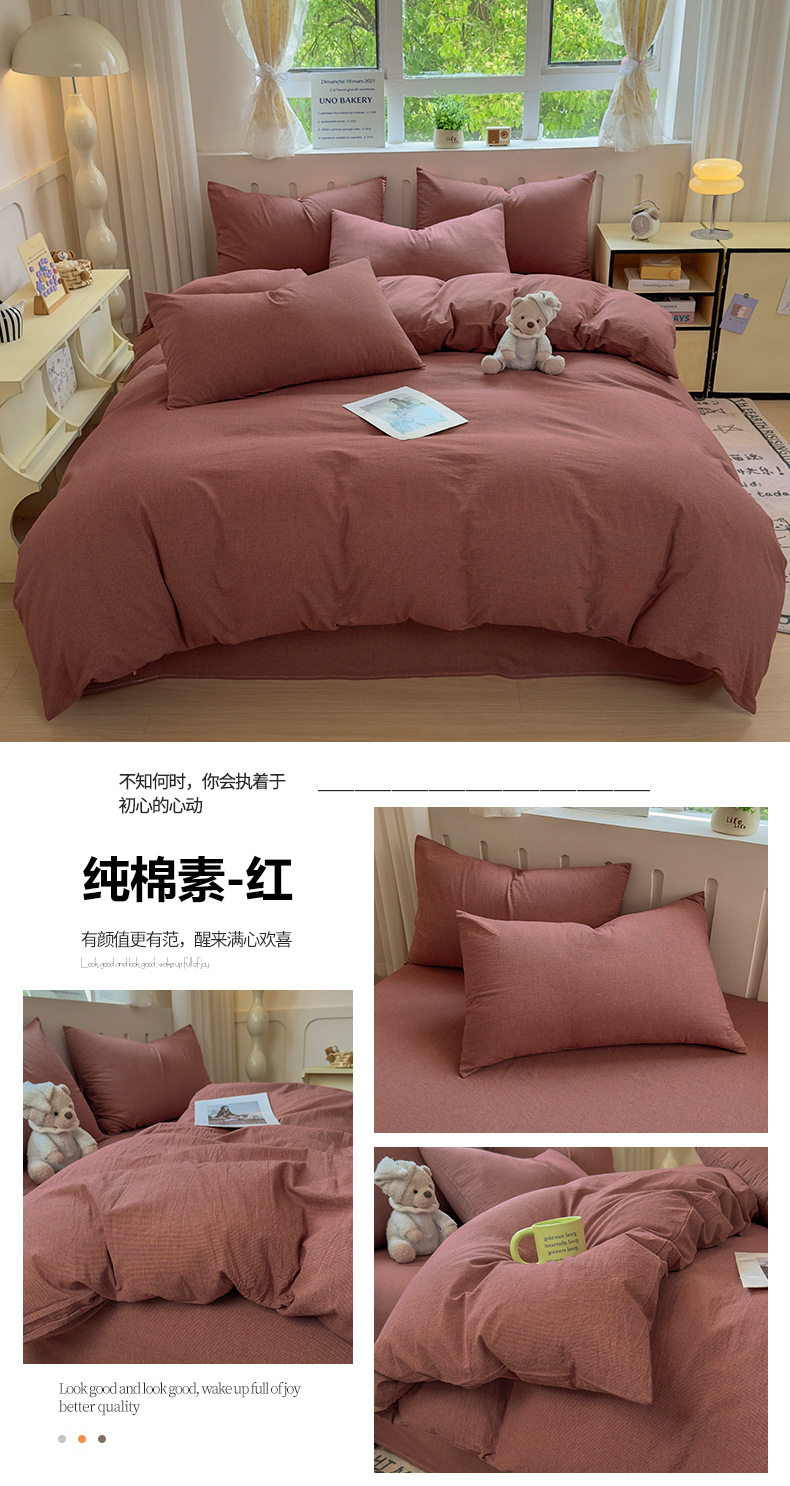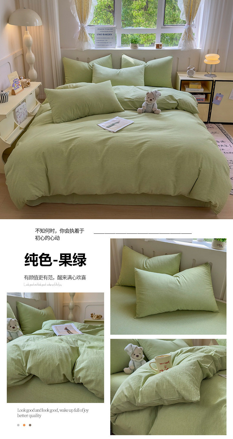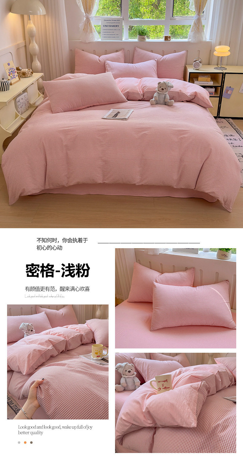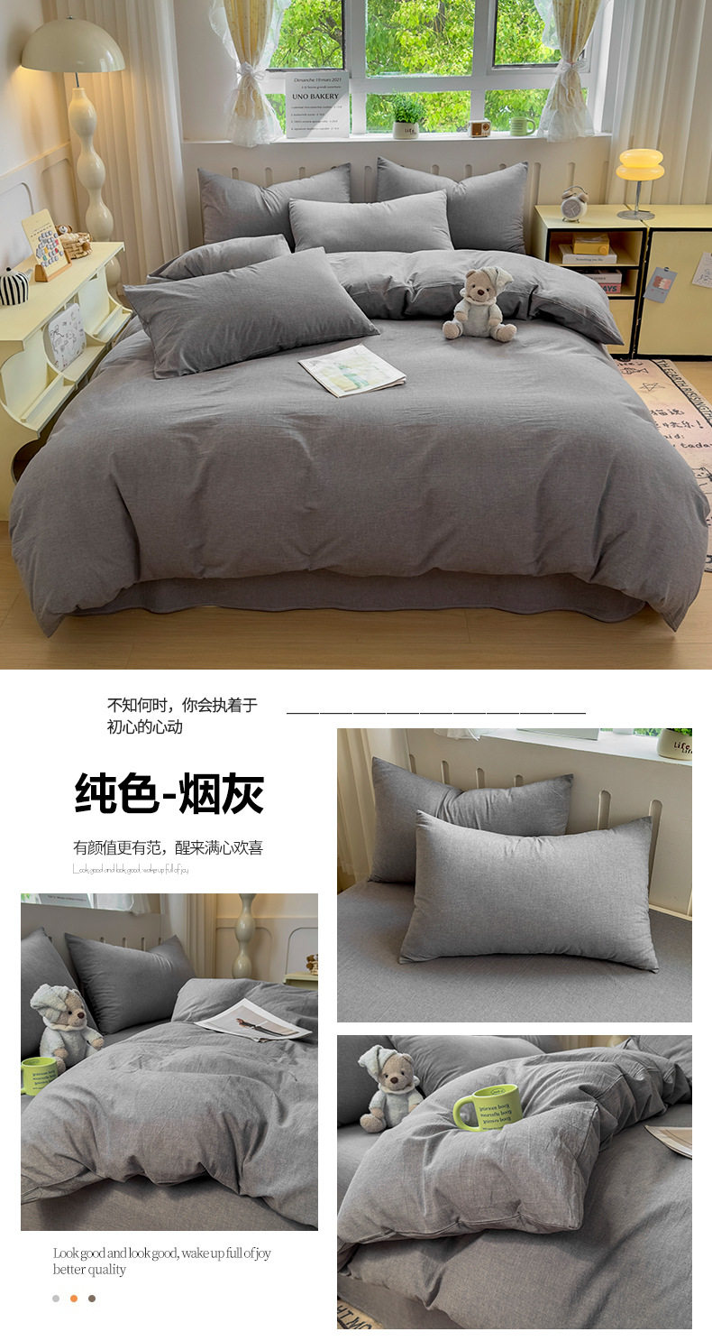 Class a 100 Cotton Yarn-Dyed Washed Cotton Combed Cotton Four-Piece Set of Bed Sheetss, Quilt Covers, Fitted Bed Sheetss, Dormitory Three-Piece Bedding Set
