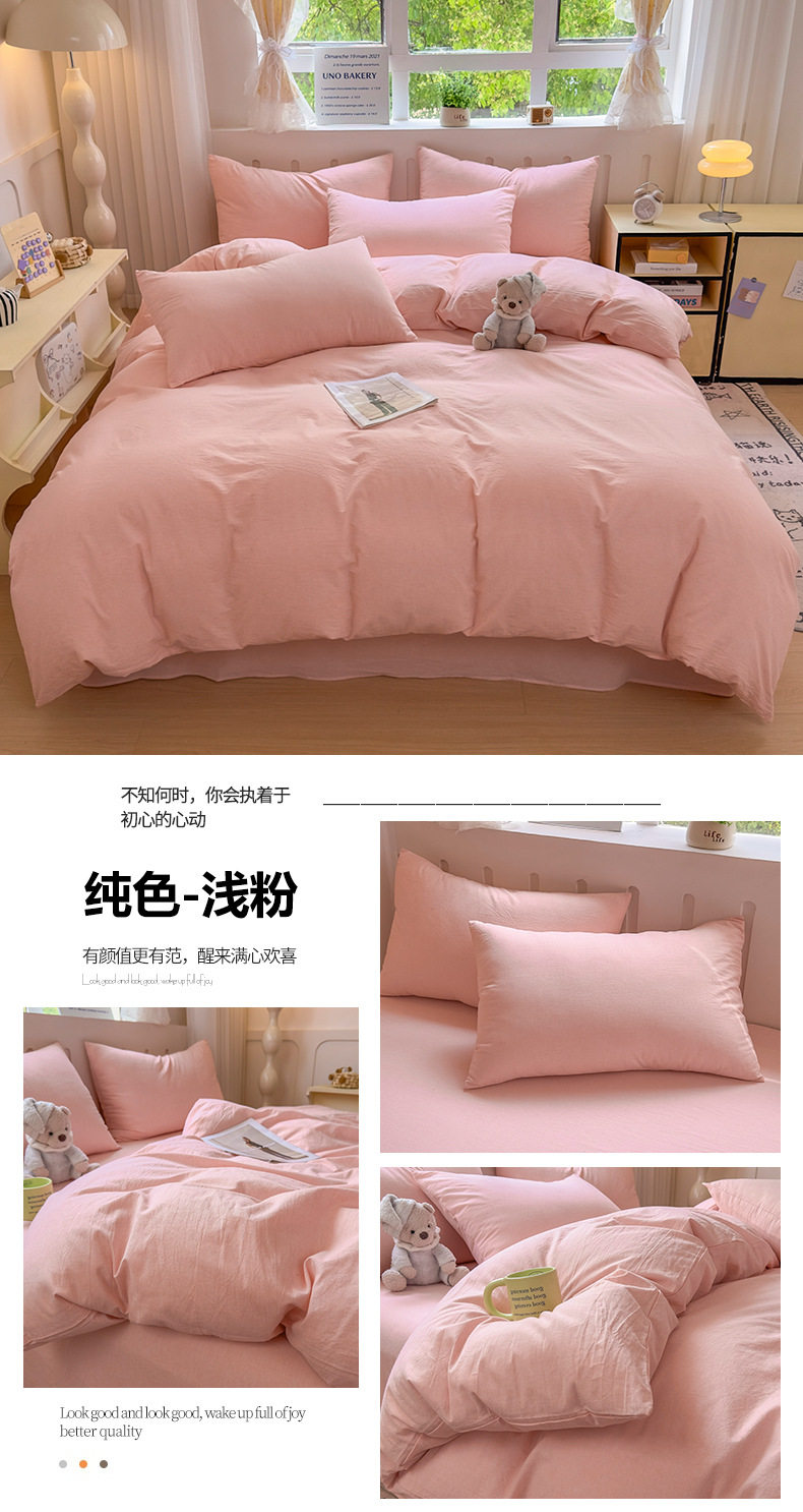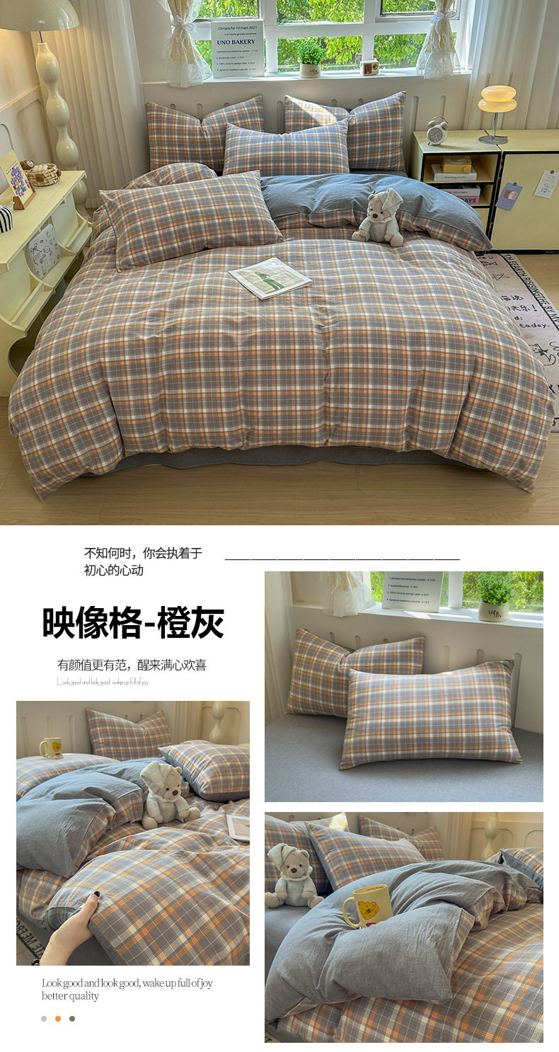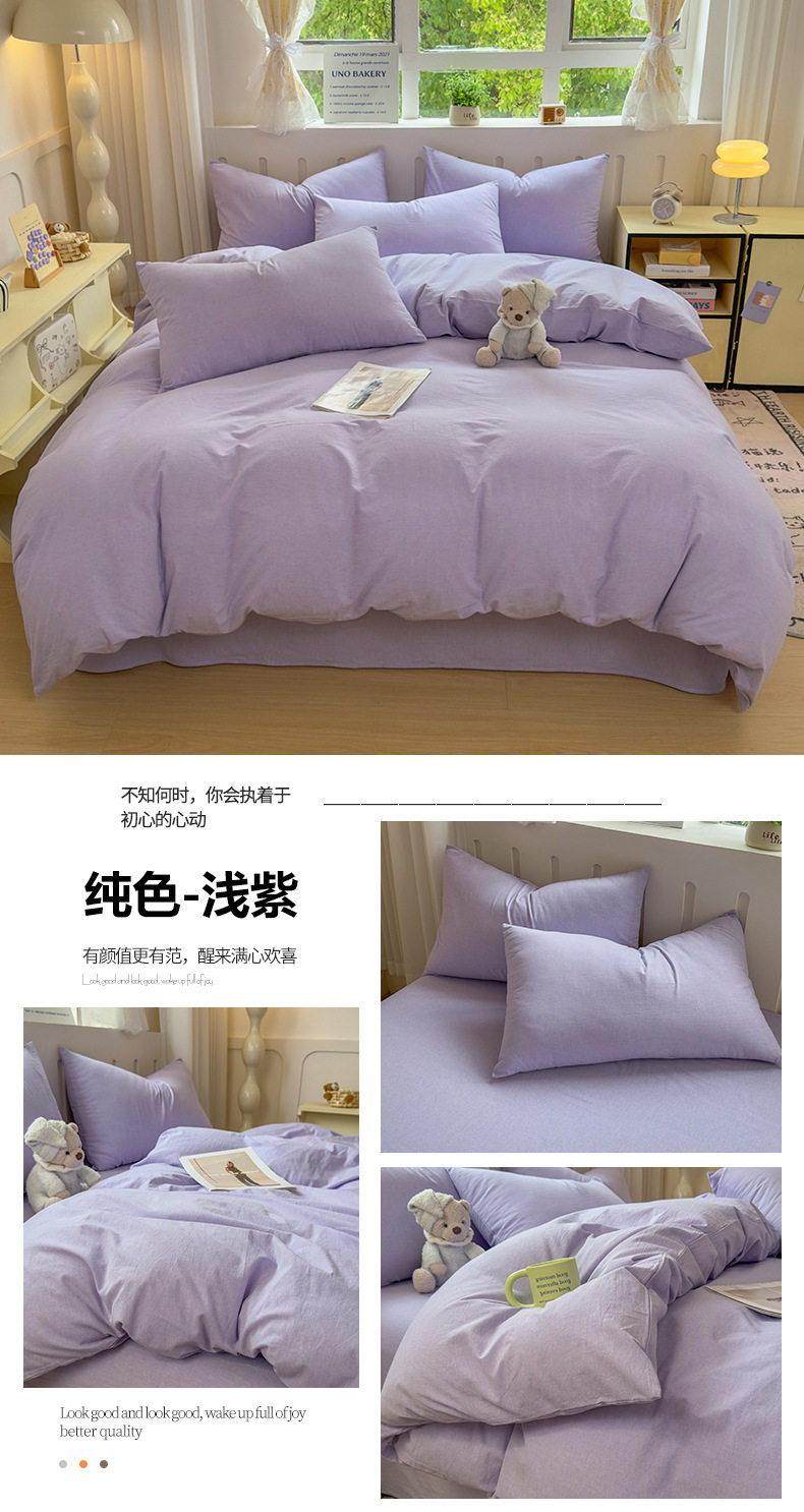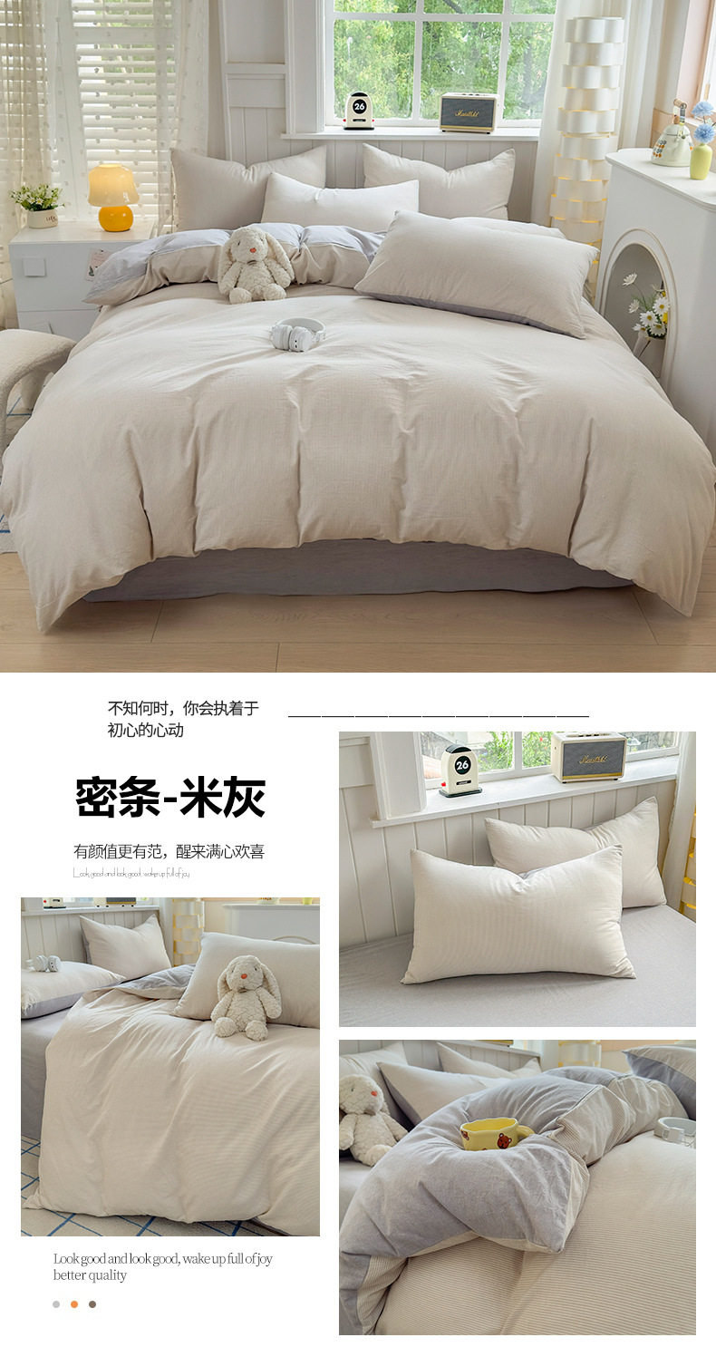 Class a 100 Cotton Yarn-Dyed Washed Cotton Combed Cotton Four-Piece Set of Bed Sheetss, Quilt Covers, Fitted Bed Sheetss, Dormitory Three-Piece Bedding Set
