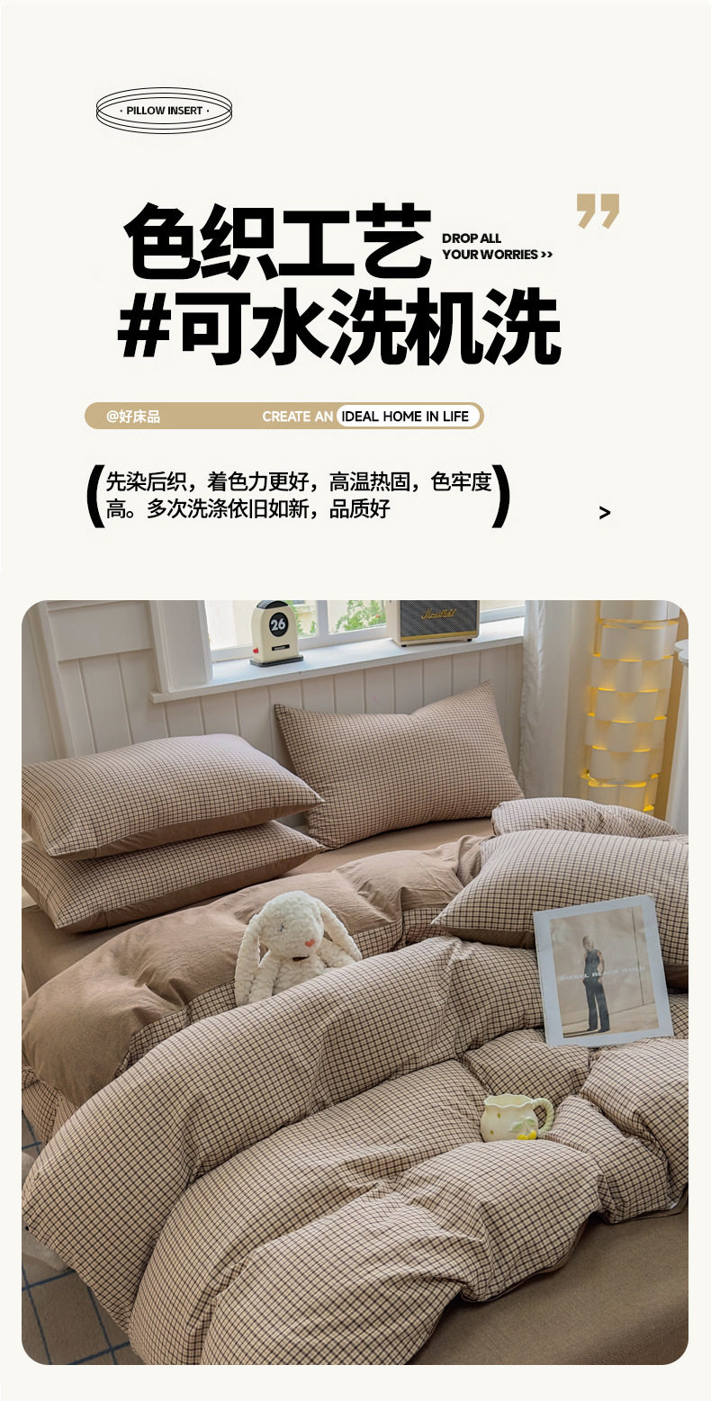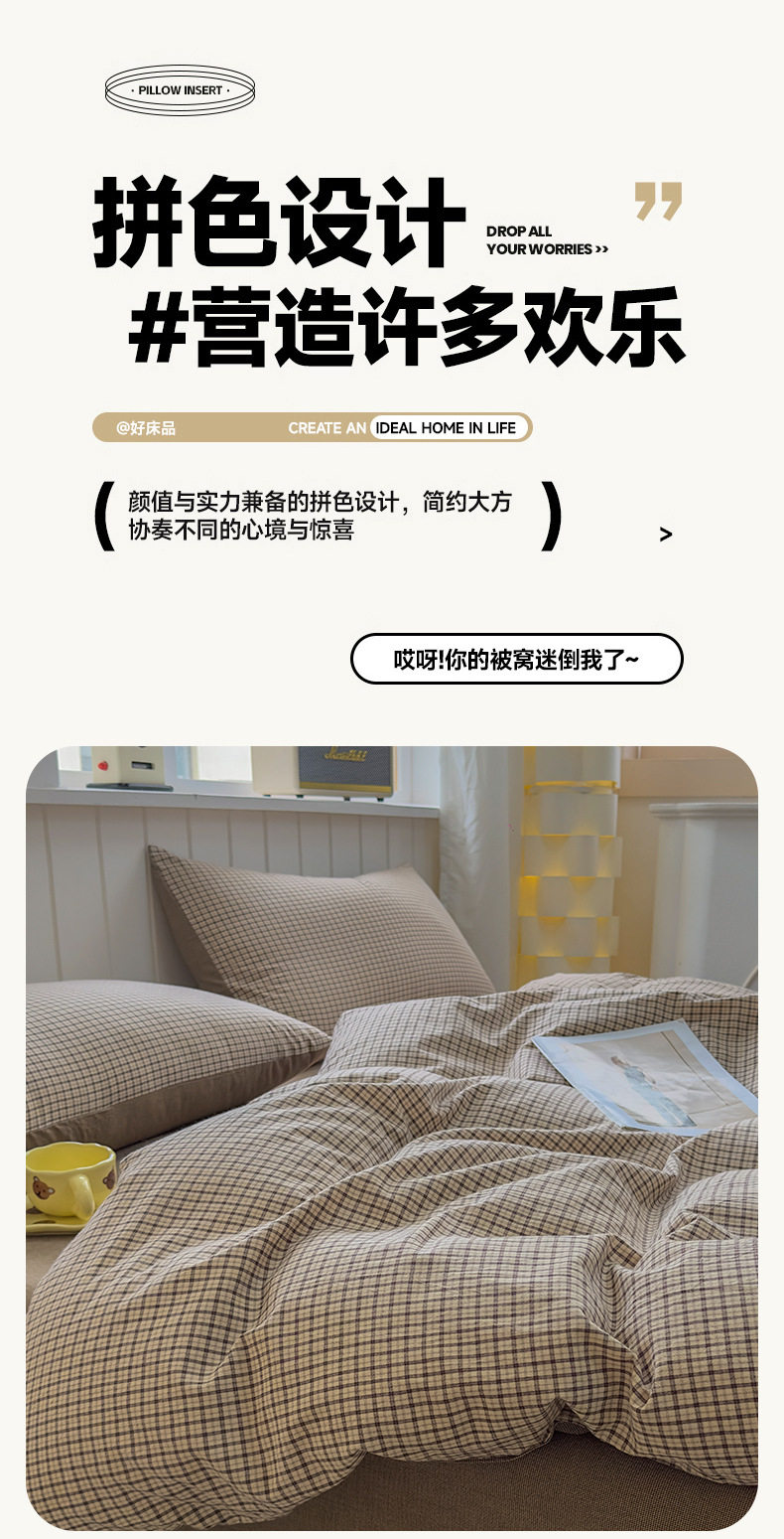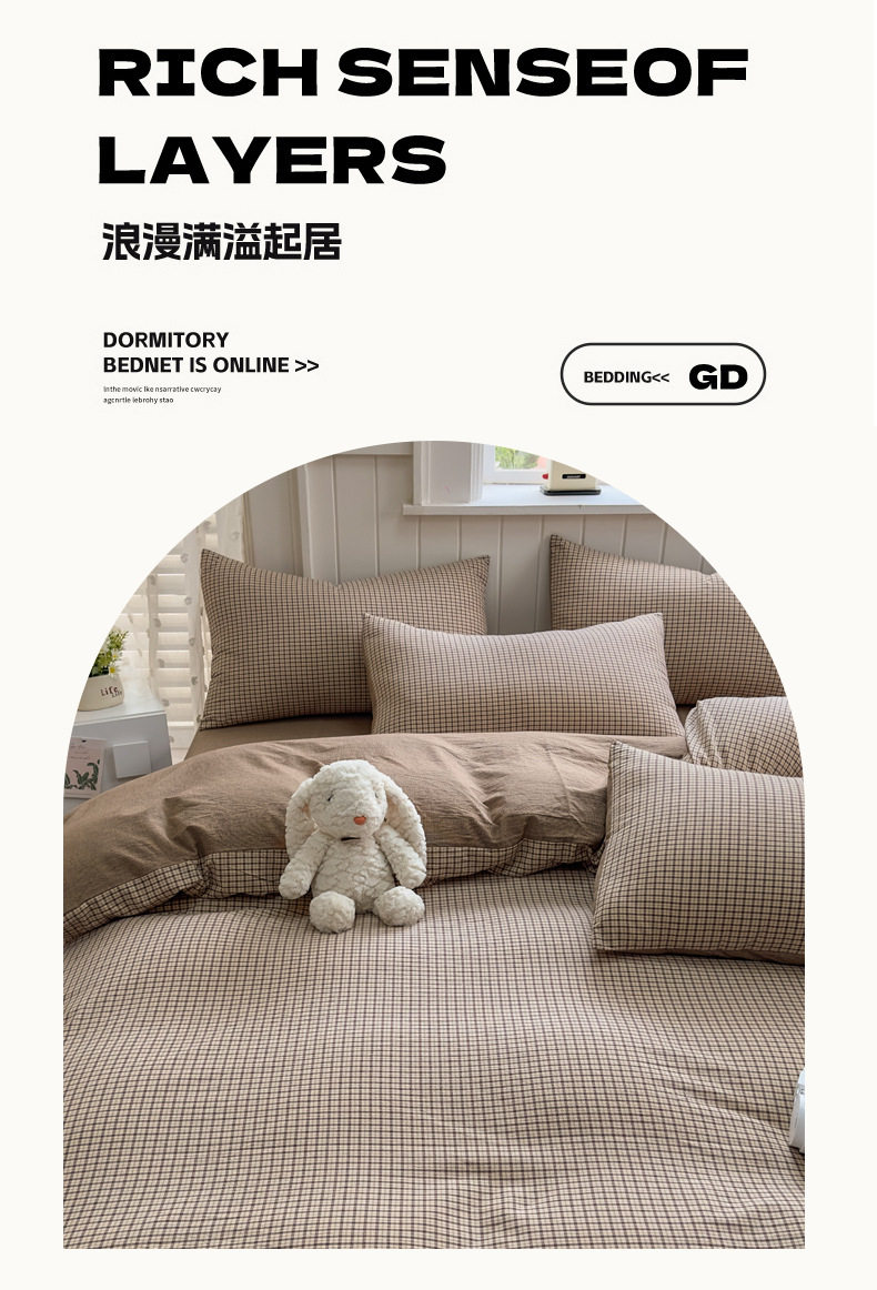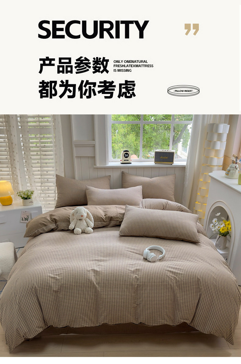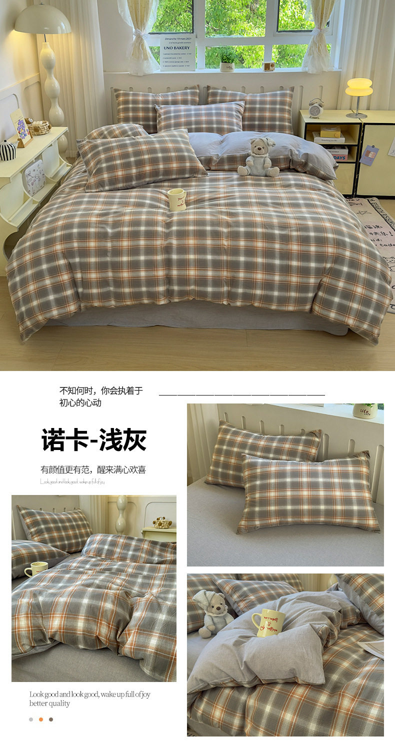 Class a 100 Cotton Yarn-Dyed Washed Cotton Combed Cotton Four-Piece Set of Bed Sheetss, Quilt Covers, Fitted Bed Sheetss, Dormitory Three-Piece Bedding Set