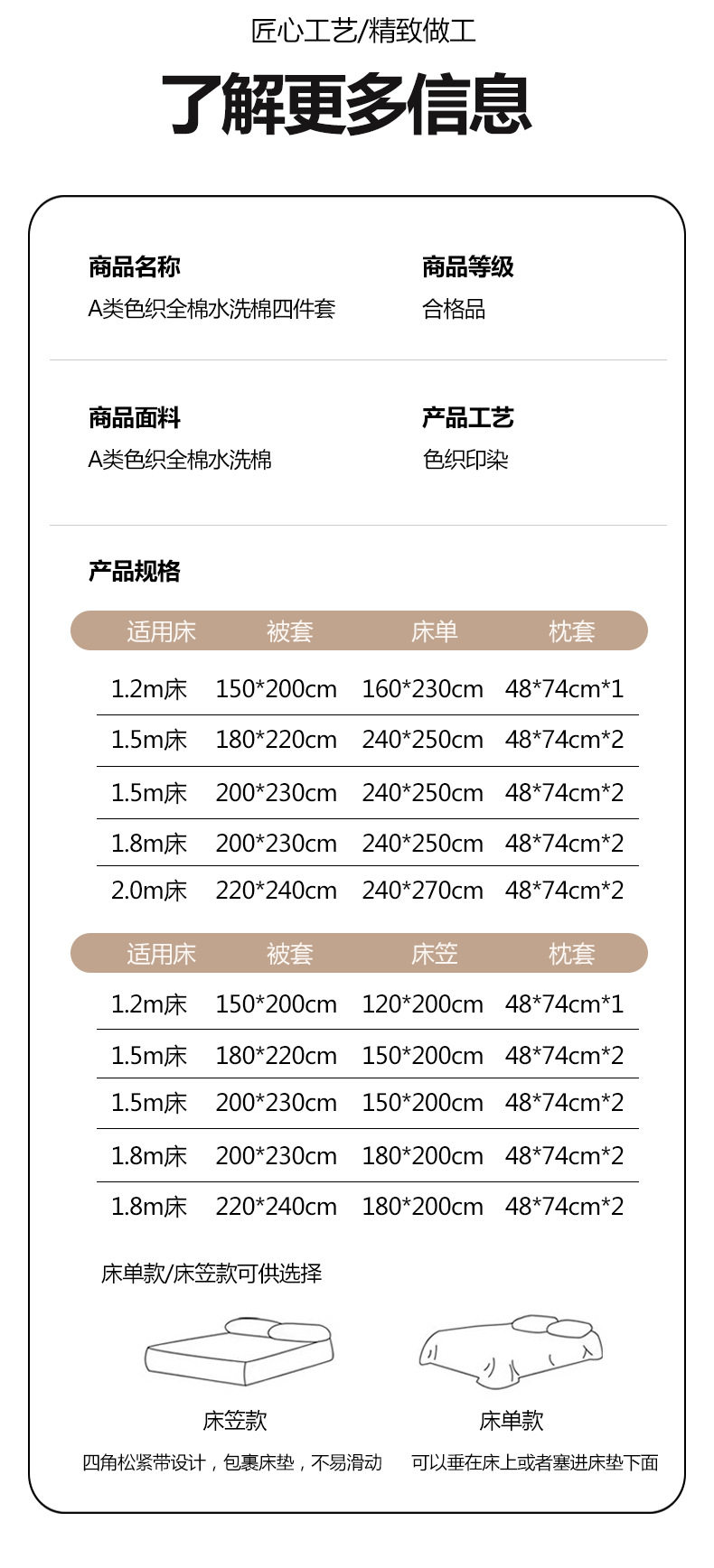 | Dimensions | 1.2m [sheet type] three-piece set (quilt cover 150*200cm, sheets 160*230cm, 48*74cm pillowcase),1.5m [sheet type] four-piece set (quilt cover 200*230cm sheets 240*250cm 48*74cm pillowcase pair),1.8m [sheet type] four-piece set (quilt cover 200*230cm sheets 240*250cm 48*74cm pillowcase pair),2.0m [sheet type] four-piece set (quilt cover 220*240cm sheets 240*270cm 48*74cm pillowcase pair,1.5m [fitted sheet] four-piece set (quilt cover 200*230cm, fitted sheet 150*200cm, 48*74cm pillowcase pair),1.8m [fitted sheet] four-piece set (quilt cover 200*230cm, fitted sheet 180*200cm, 48*74cm pillowcase pair),2.0m [fitted sheet] four-piece set (quilt cover 220*240cm, fitted sheet 180*200cm, 48*74cm pillowcase pair) |