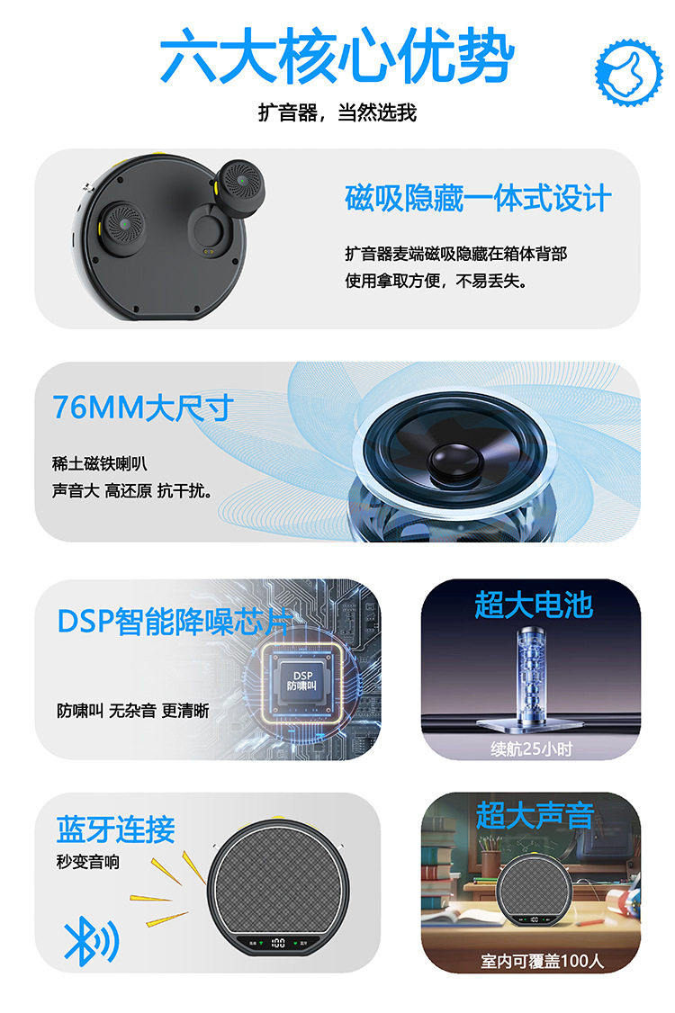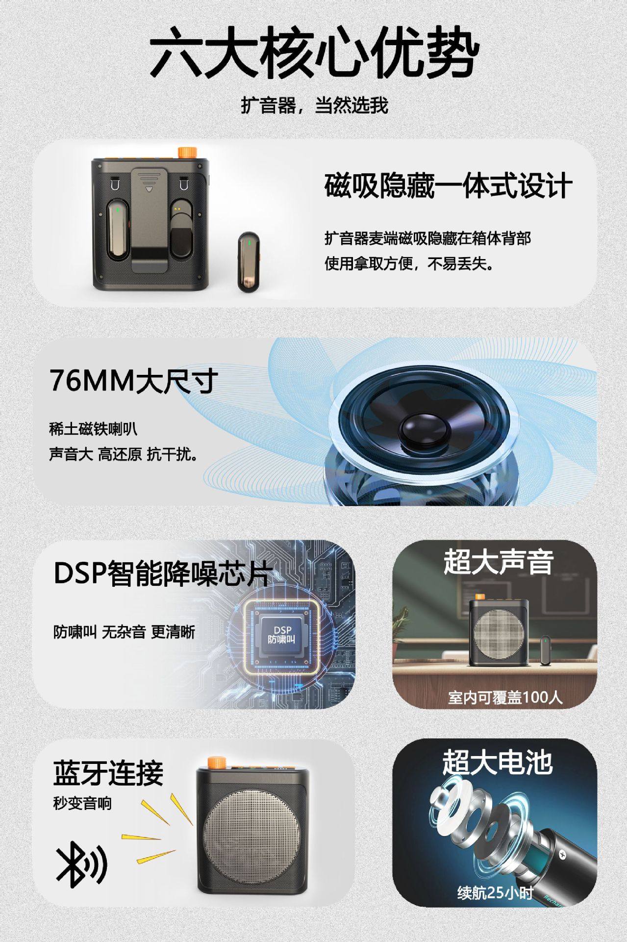 Amazon's New Product Little Bee Loudspeaker, Teacher-Specific Dual-Microphone Portable Ultra-Long Battery Life No-Howling Loudspeaker