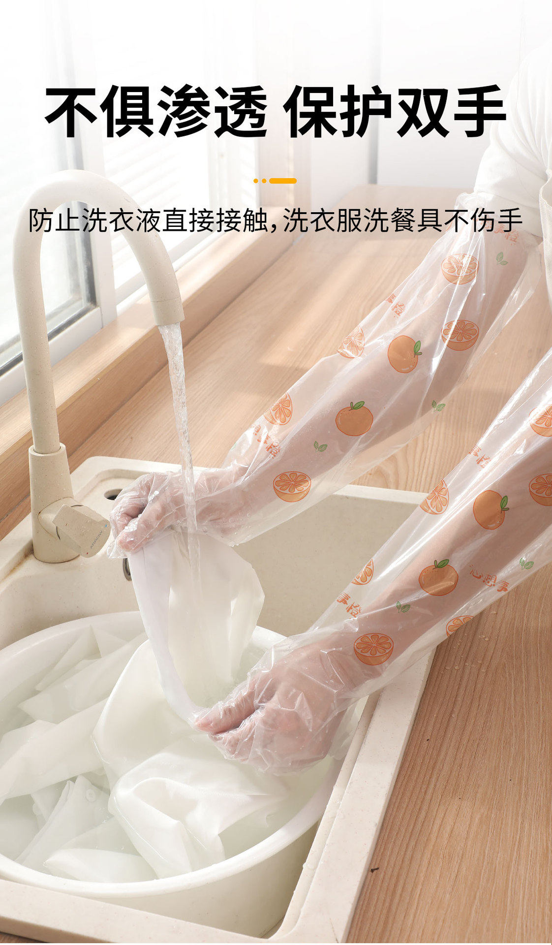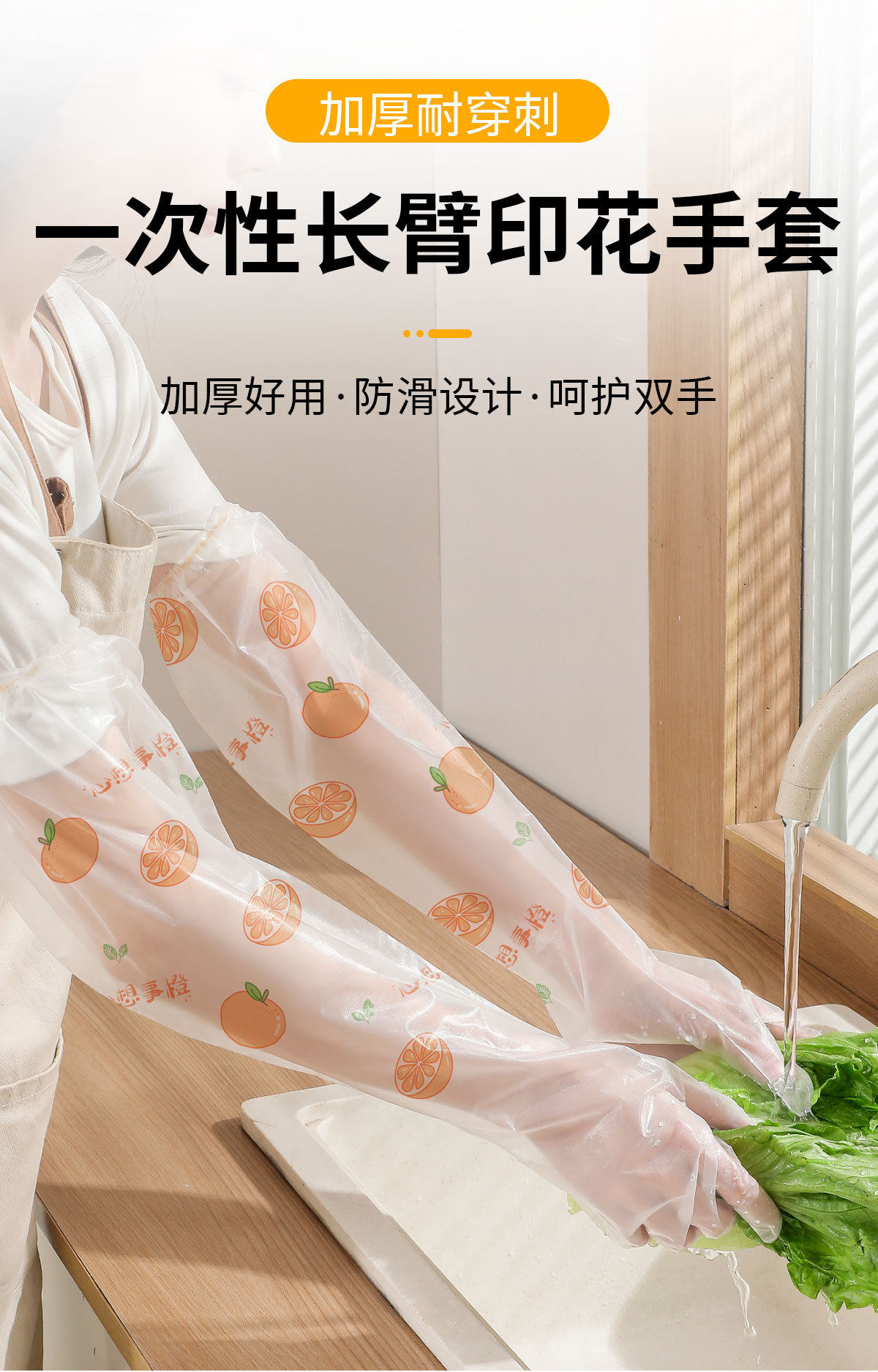 New Printed Cpe Gloves Extended and Thickeneded Disposable Arm Protection Housework Gloves Kitchen Household Dishwashing Gloves