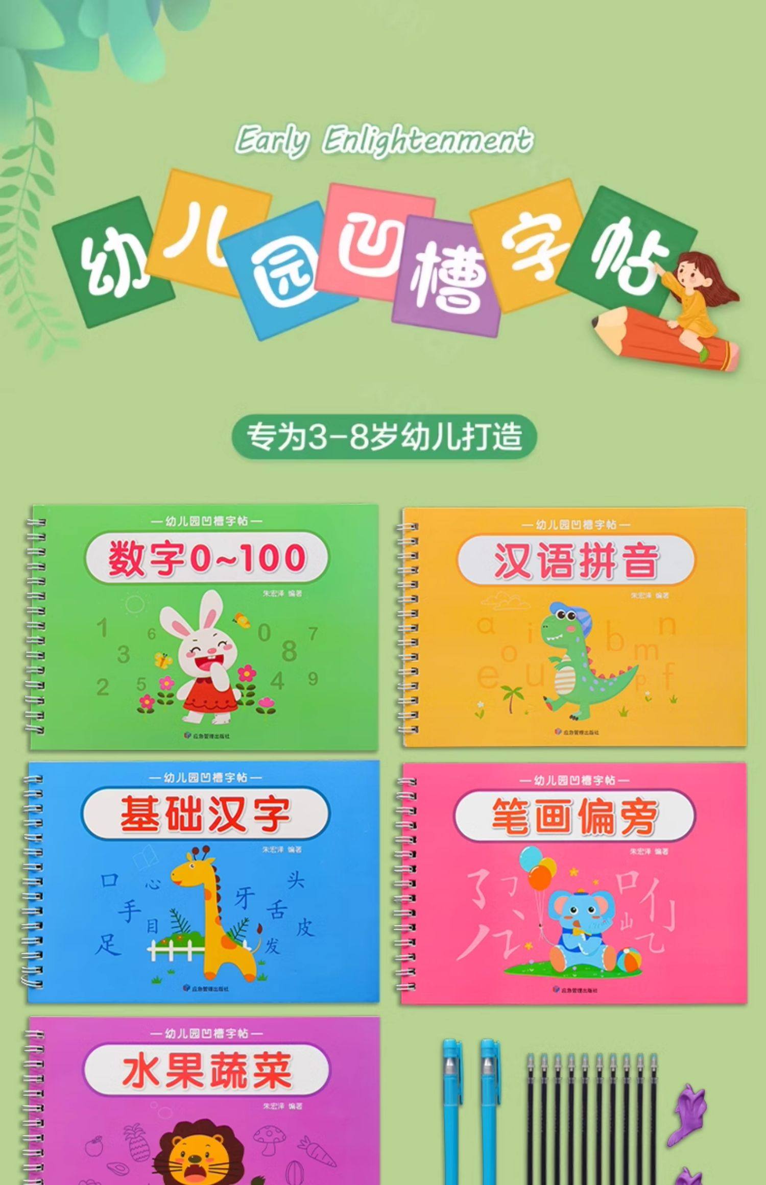 | Color | [numbers + drawing] free 10 refills + 2 pen holders + 2 pencil holders,[pinyin + chinese characters] free 10 refills + 2 pen holders + 2 pencil holders,[fruits and vegetables] free 10 refills + 2 pen holders + 2 pencil holders,[numbers + pinyin + drawing] free 10 refills + 2 pen holders + 2 pencil holders,[radical of the strokes] free 10 refills + 2 pen holders + 2 pencil holders,[full set of 5 books] free 10 refills + 2 pen holders + 2 pencil holders,[chinese pinyin] free 10 refills + 2 pen holders + 2 pencil holders,[numbers + chinese characters] free 10 refills + 2 pen holders + 2 pencil holders,[numbers + chinese characters + drawing] free 10 refills + 2 pen holders + 2 pencil holders,[numbers 0-100] free 10 refills + 2 pen holders + 2 pencil holders,[numbers + pinyin + chinese characters] free 10 refills + 2 pen holders + 2 pencil holders,[numbers + pinyin] free 10 refills + 2 pen holders + 2 pencil holders,[basic chinese characters] 10 refills + 2 pen holders + 2 pencil holders |