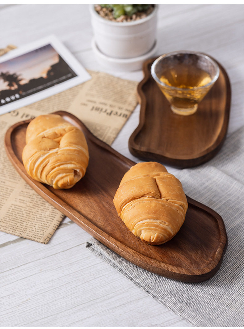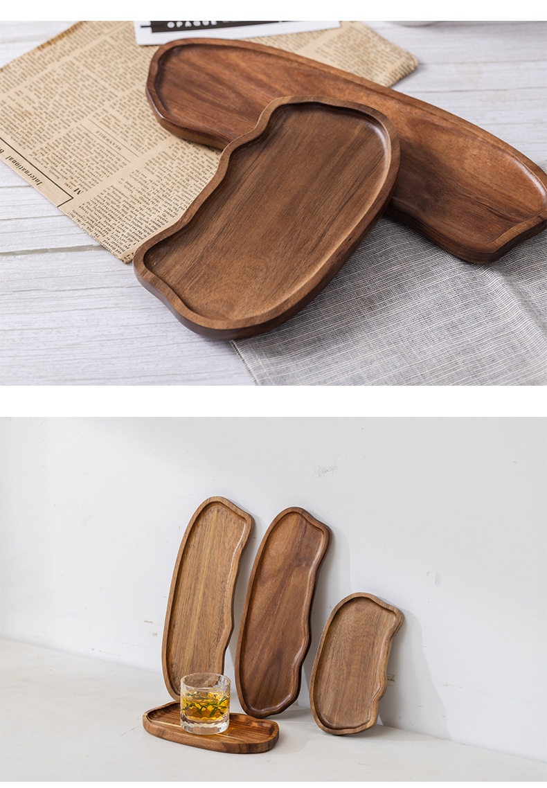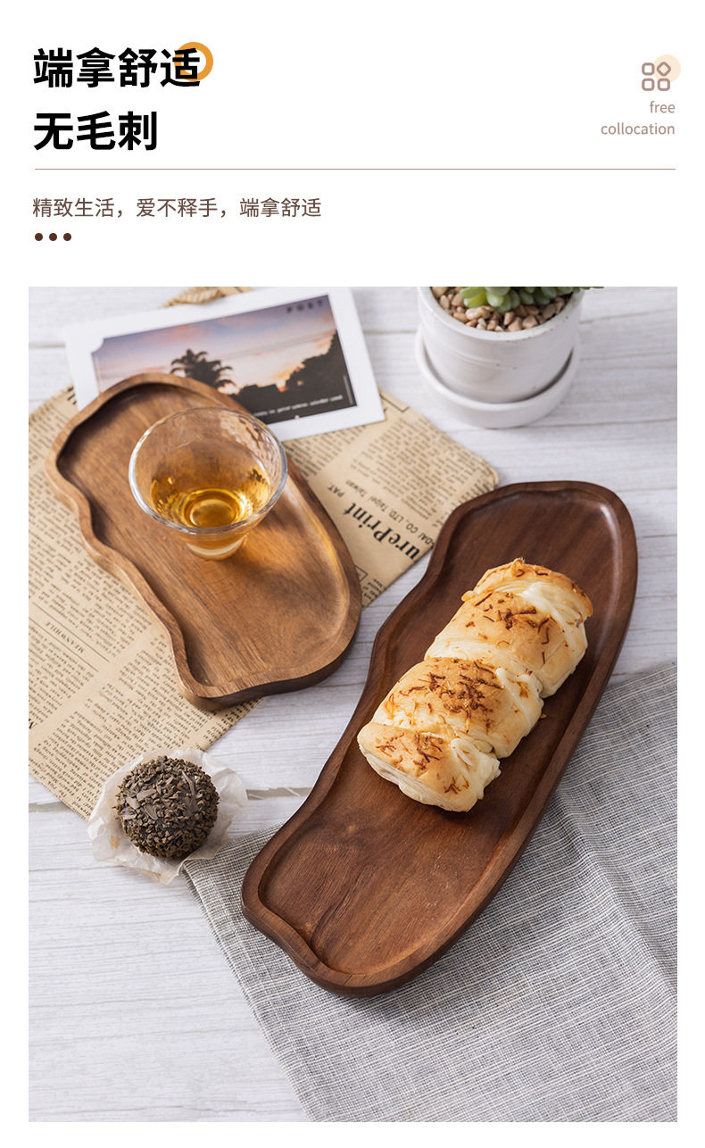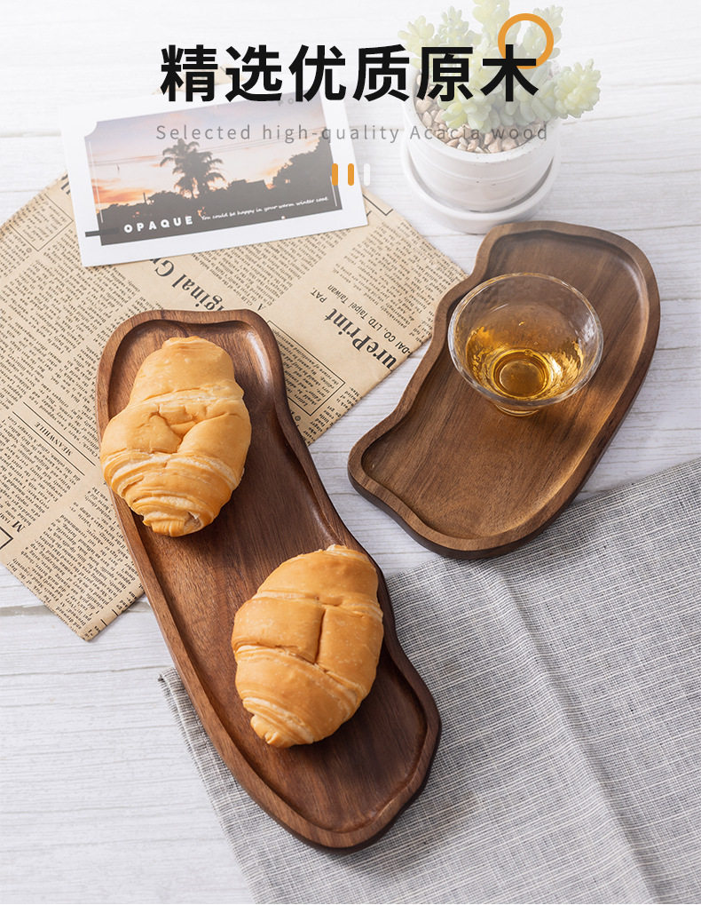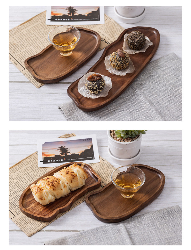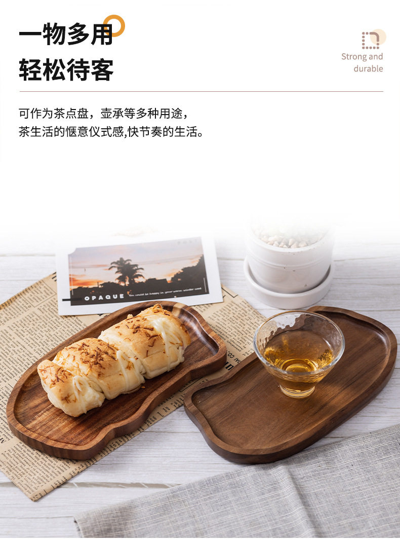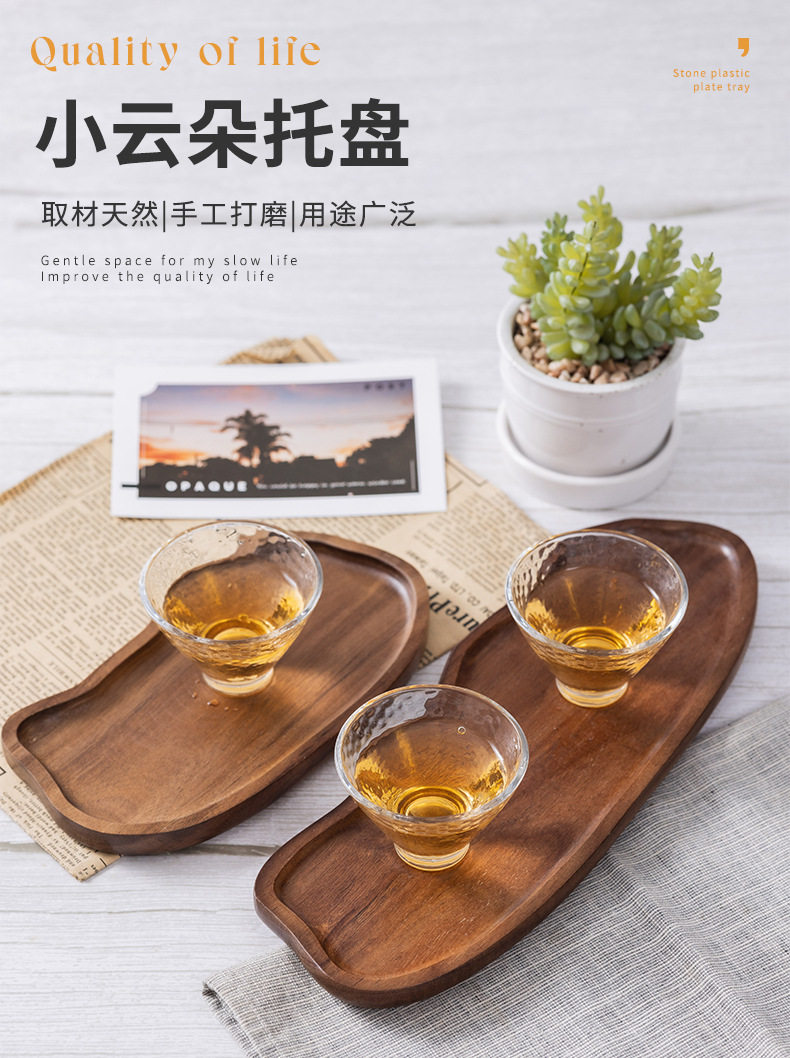 Japanese Acacia Wood Tray Cloud-Shaped Tea Tray Tea Water Anti-Scalding Wooden Dining Tray Cake Snack Wooden Small Plate
