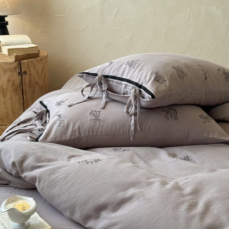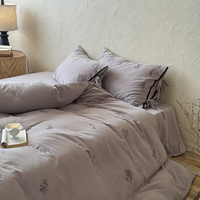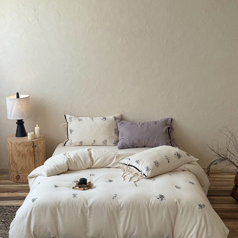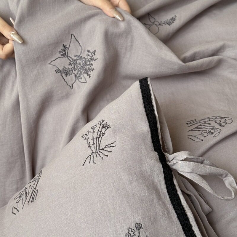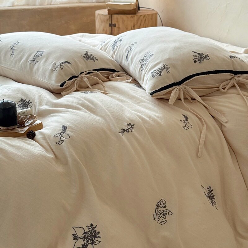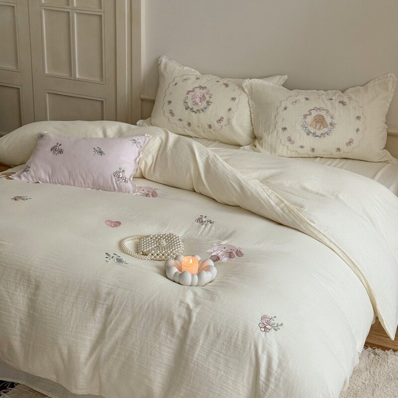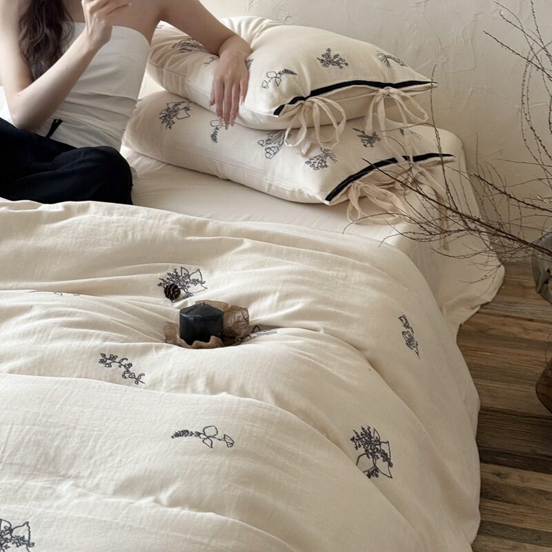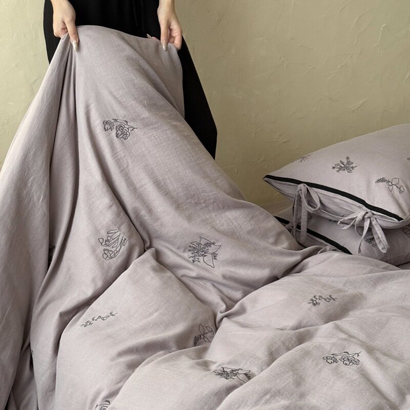 100-Count Pure Cotton Wrinkled Yarn Four-Piece Set with Precision Embroider, Super Soft Quilt Cover, Bed Bed Sheets and Fitted Bed Sheets Three-Piece Set
