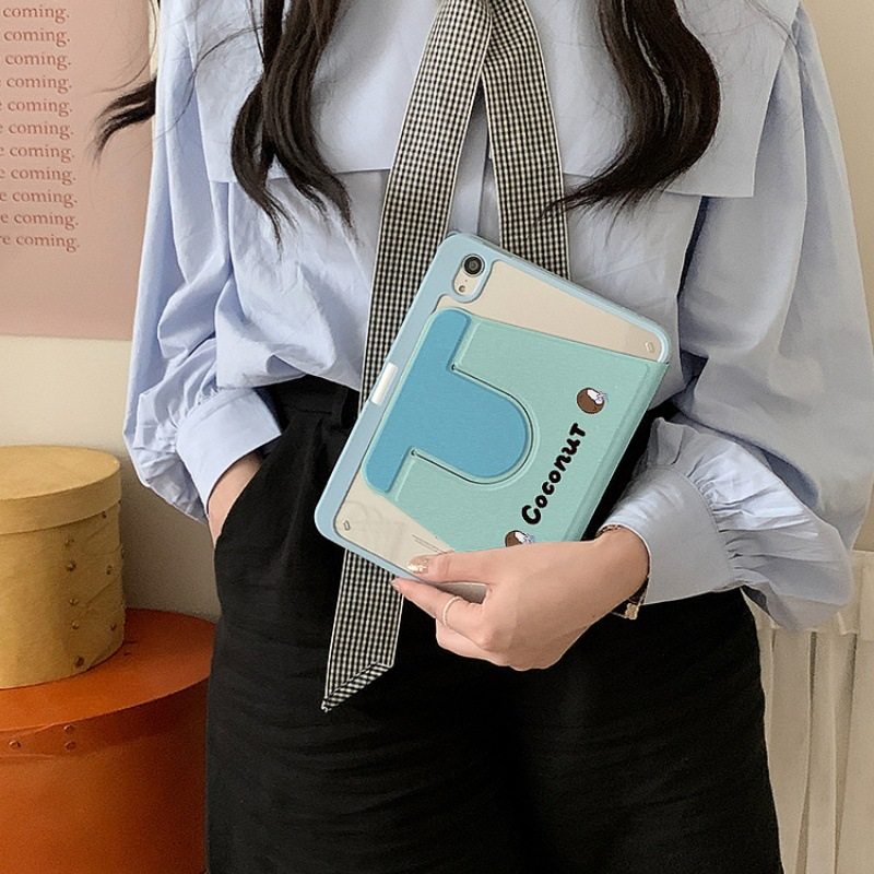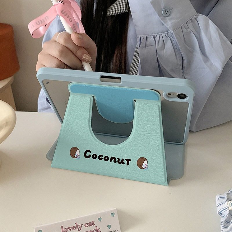 Summer Cool Coconut Suitable for iPad Pro Tablet Protective Cover Air with Pen Slot 10Th Generation Rotating Stand Mini Hard