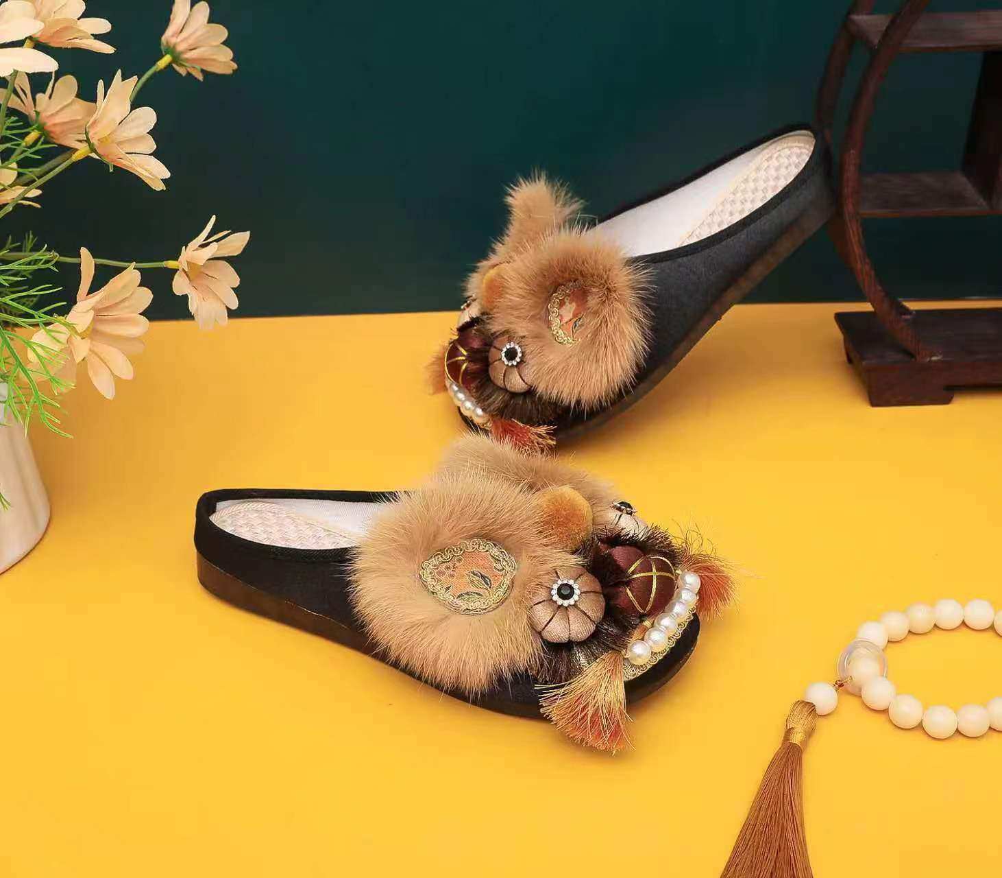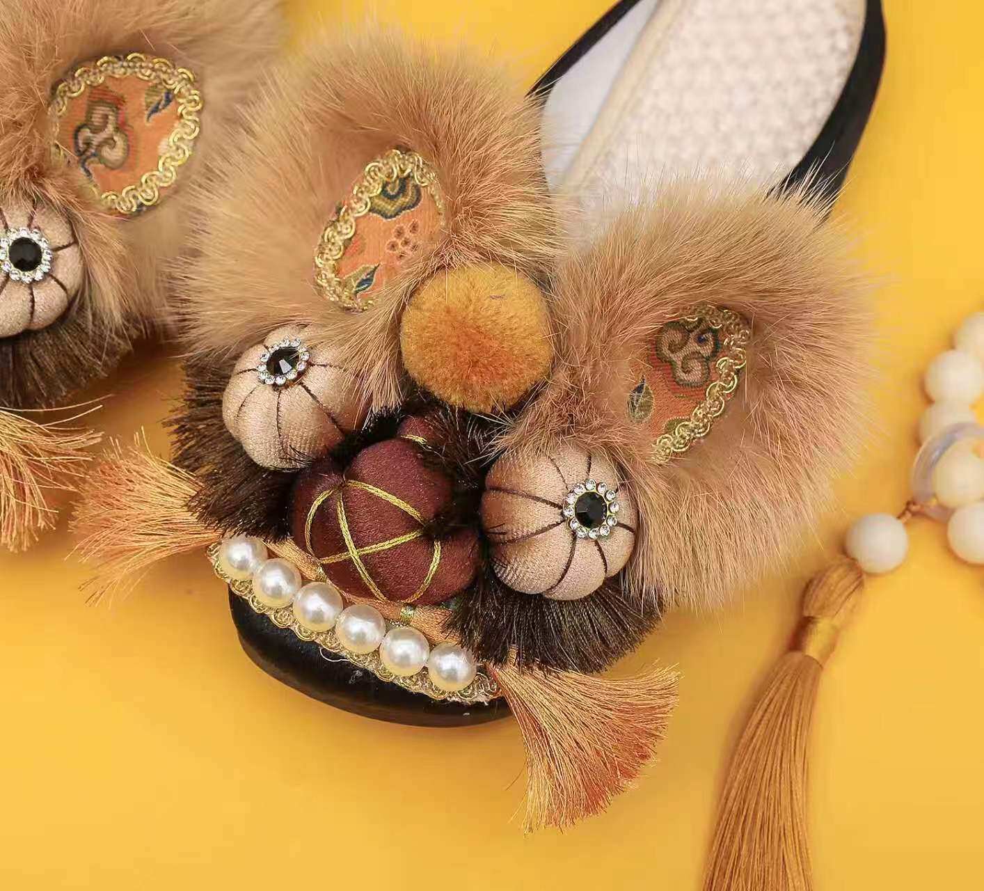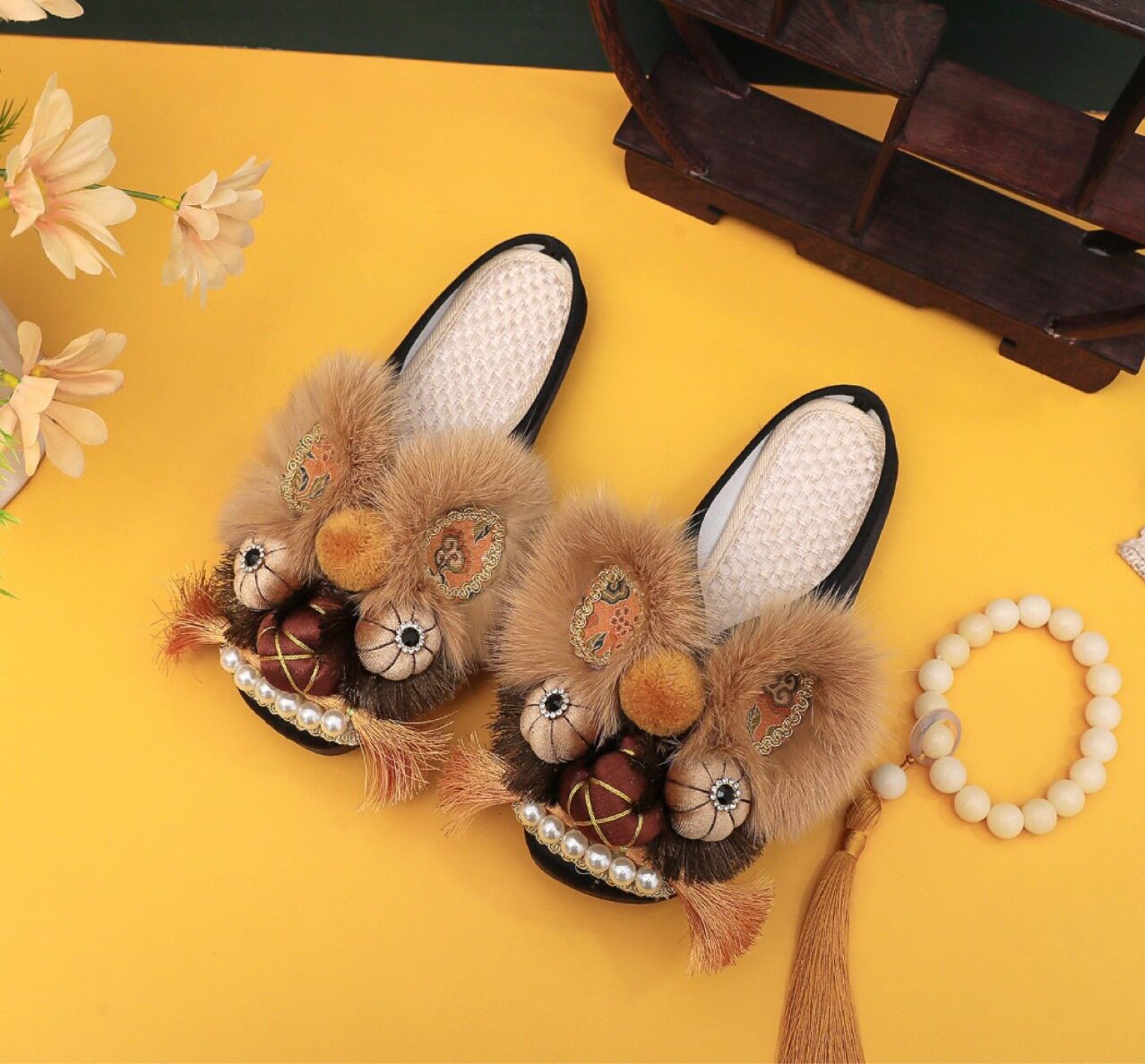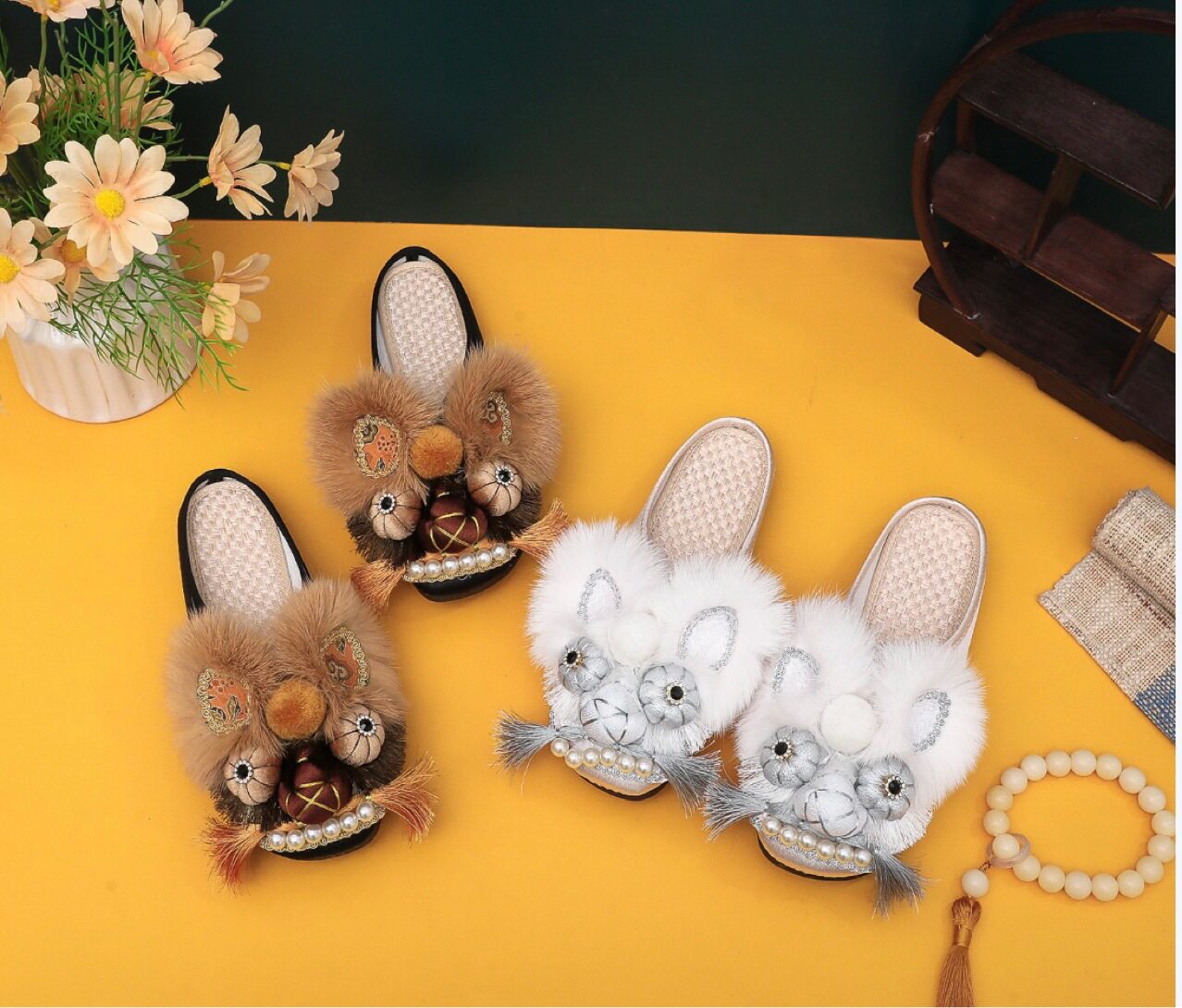 New Original Ethnic Style Adult Tiger Head Slippers Shoes Hand-Embroidered Shoes National Trend Retro Flats Folk Cloth Shoes for Women